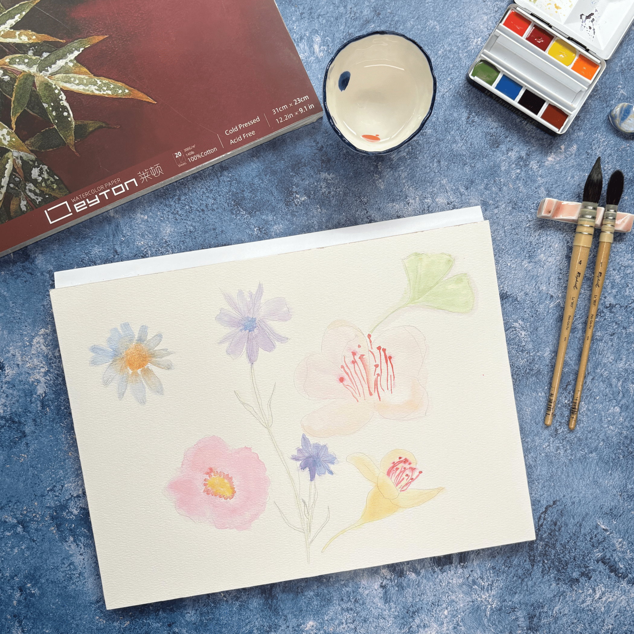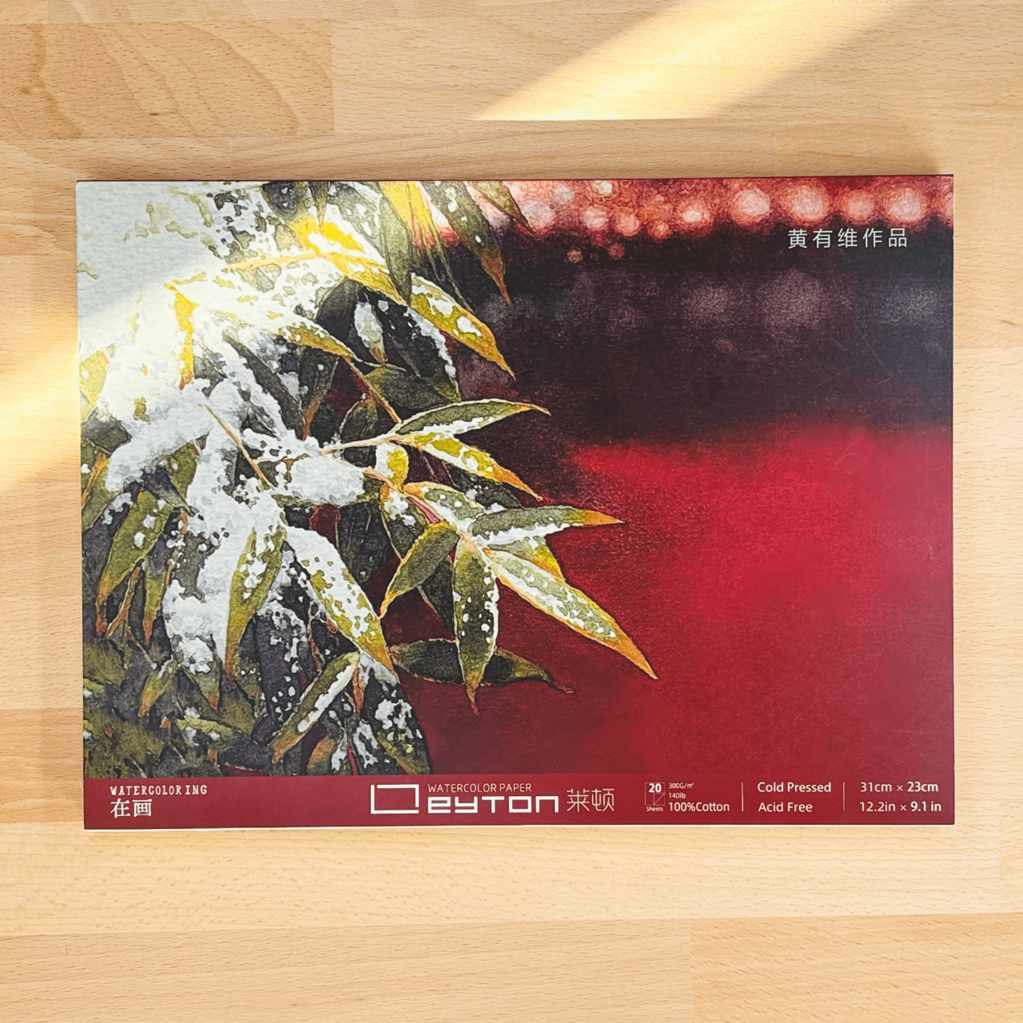 Bloc de papier d’aquarelle Leyton Grand Format 100 % coton , 300g/m² (140lb) , grain fin, pressé à froid, 20 feuilles par bloc, non blanchi et sans acide, qualité artiste.