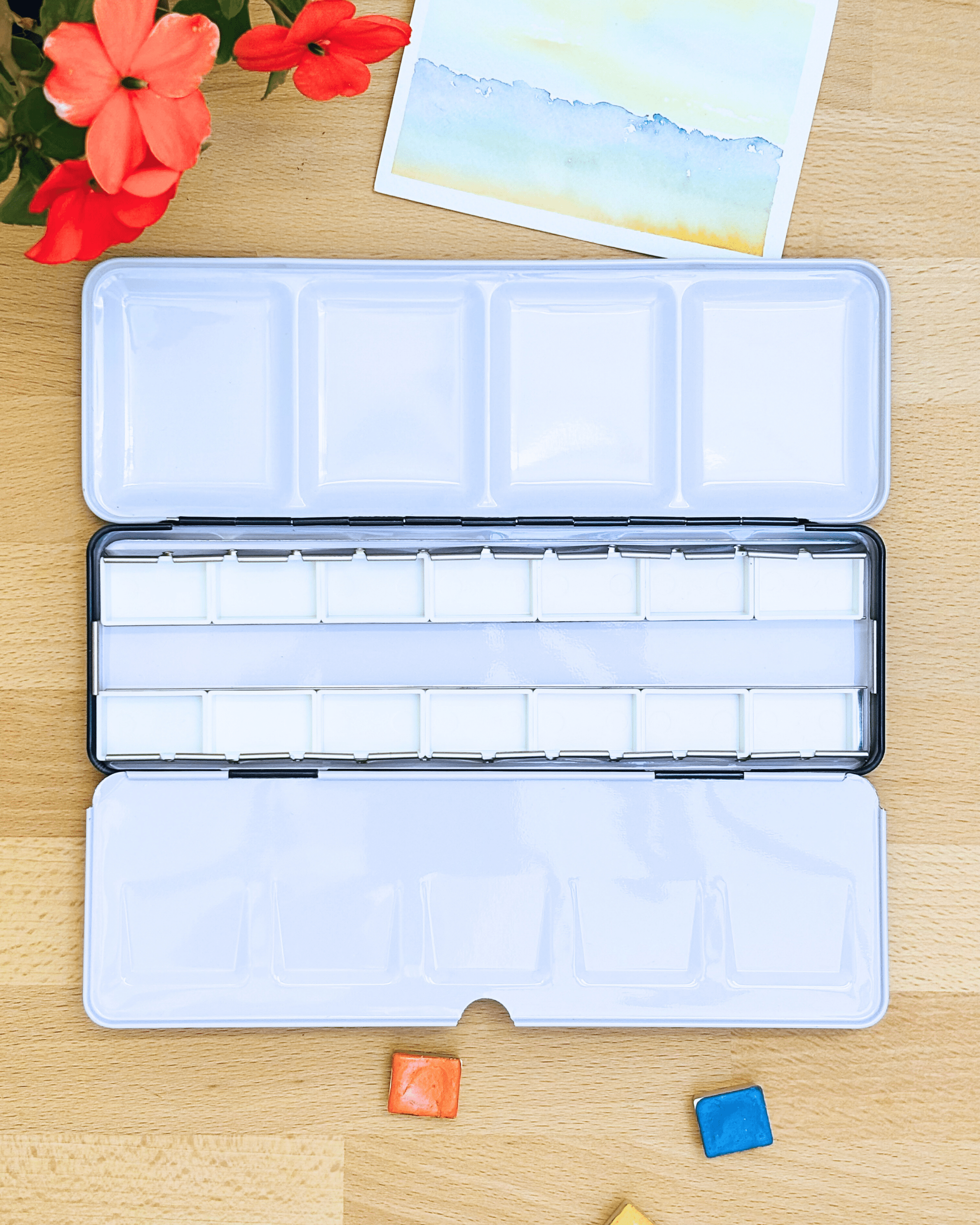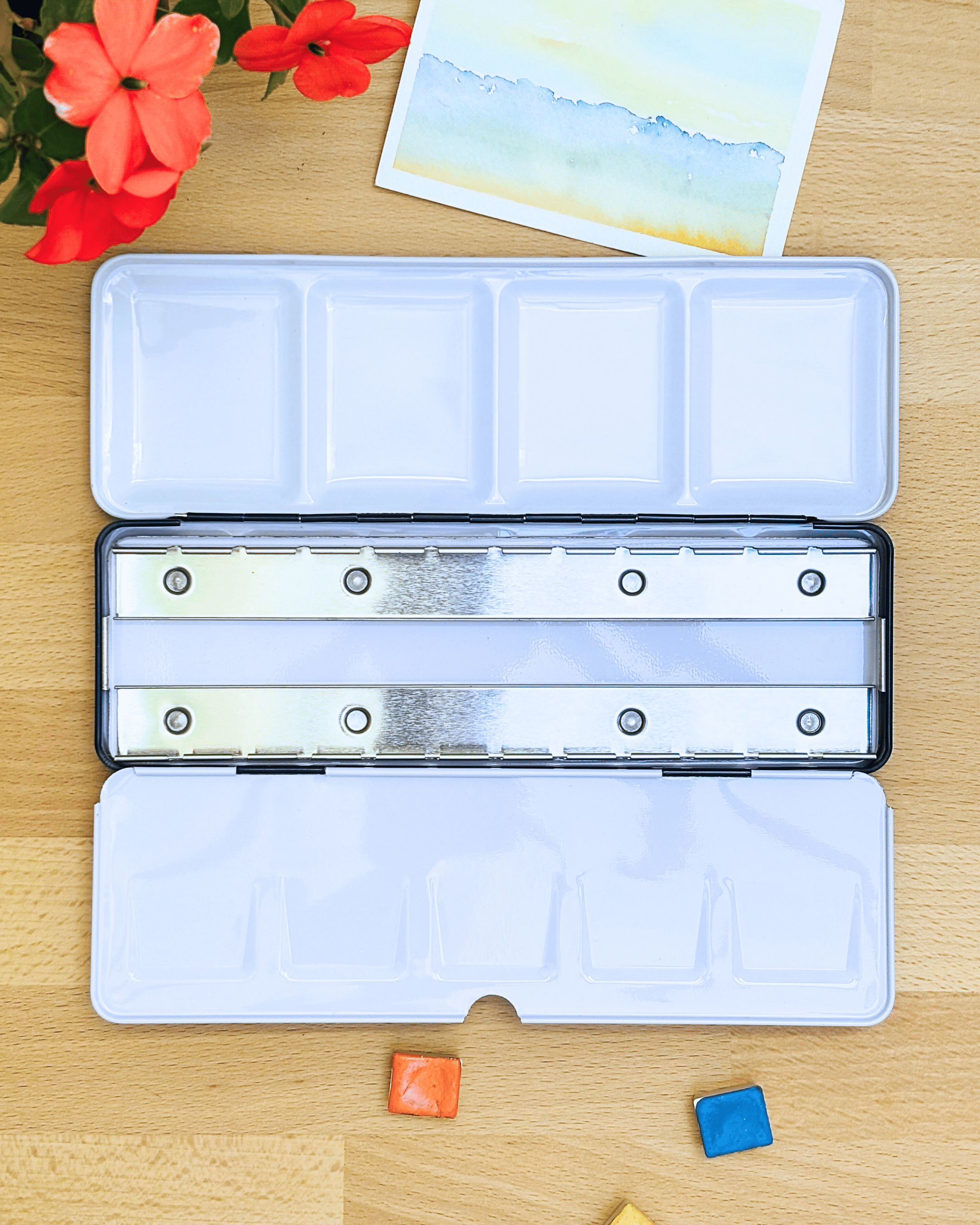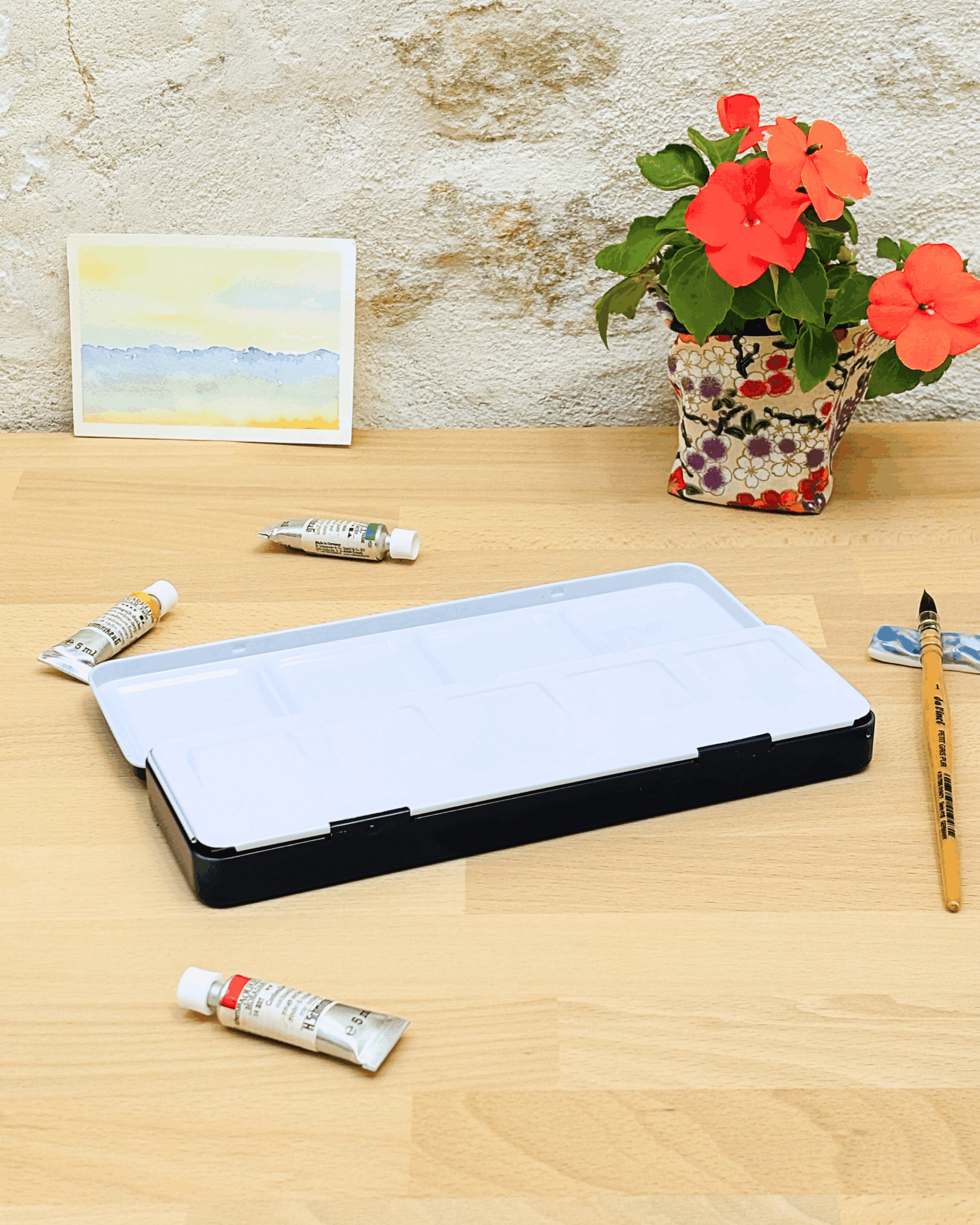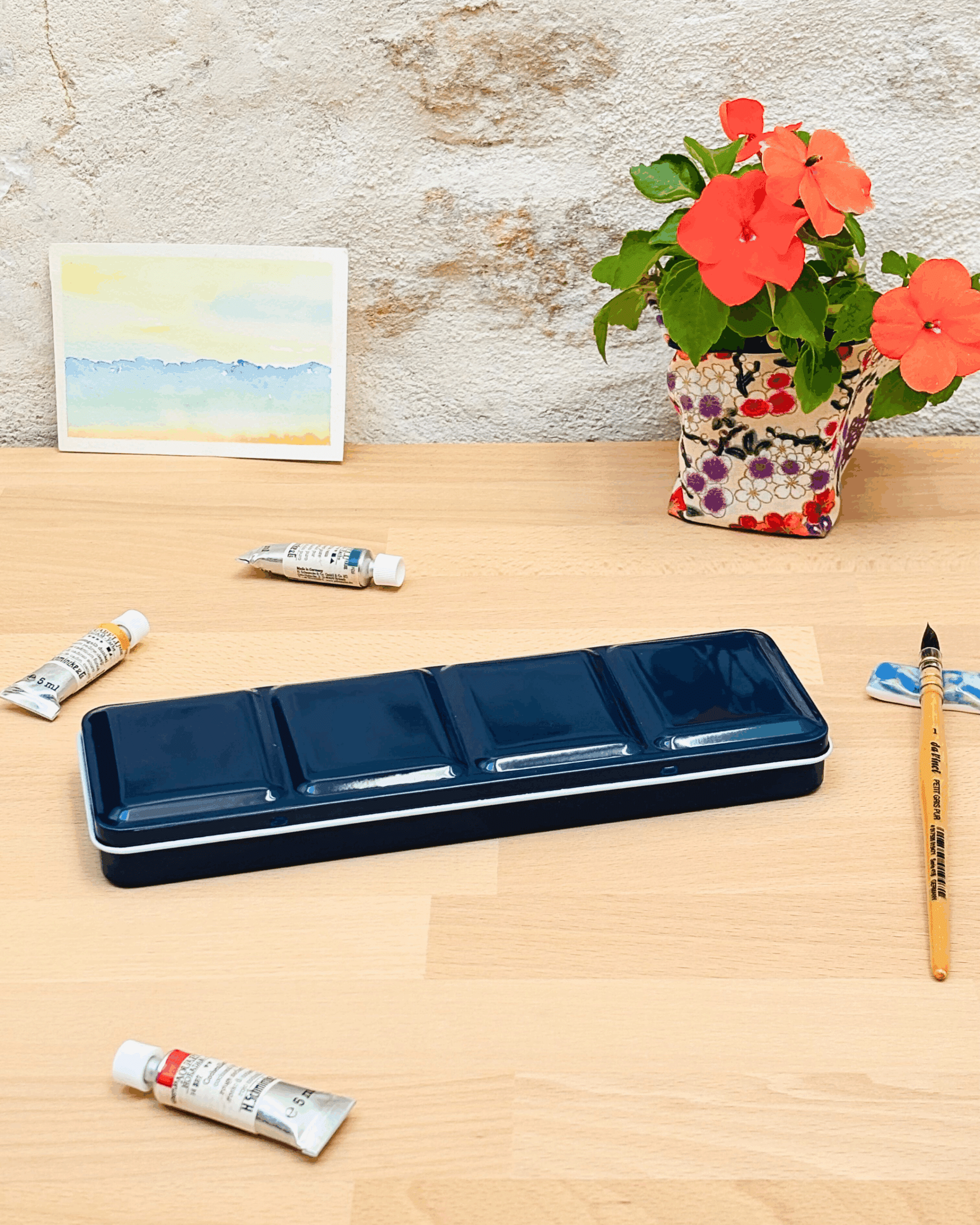 Personnalisez votre palette et rangez vos couleurs avec cette boîte d’aquarelle en métal émaillé.