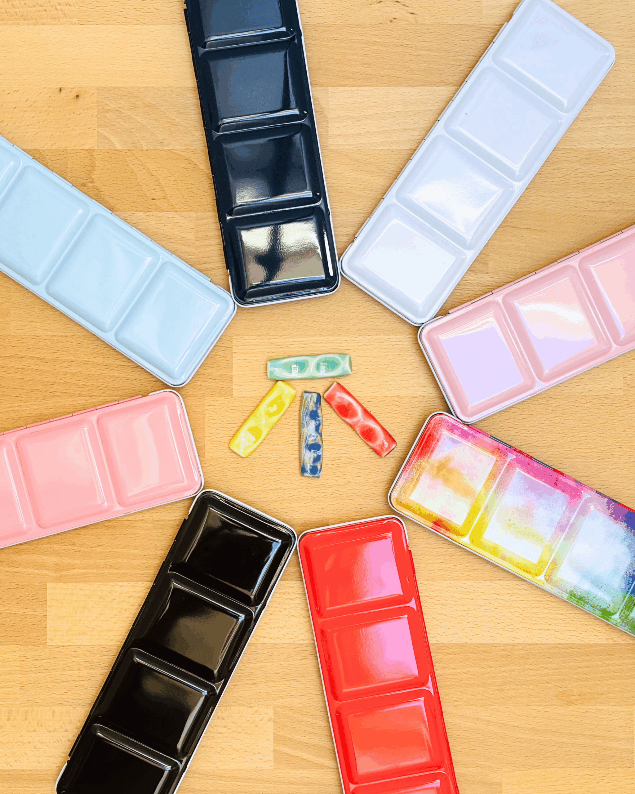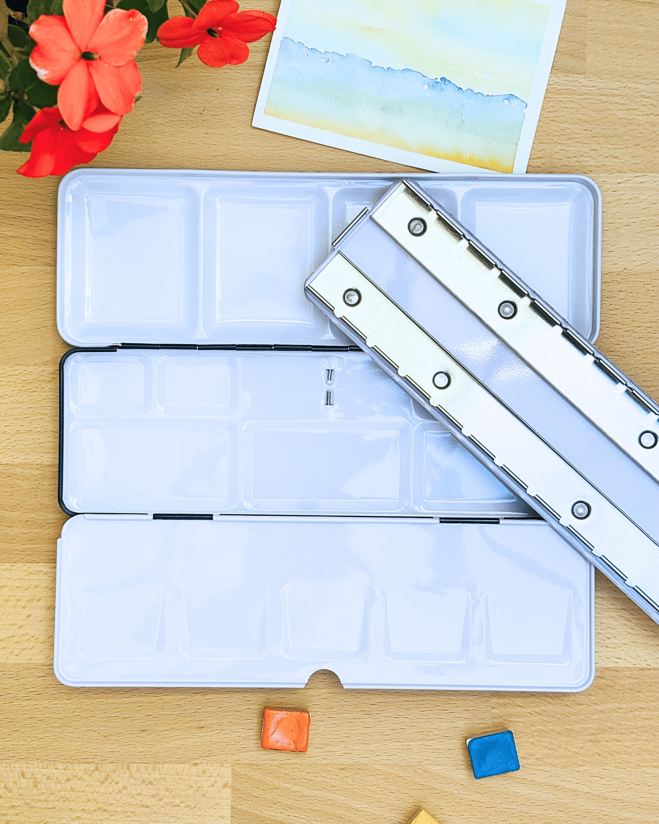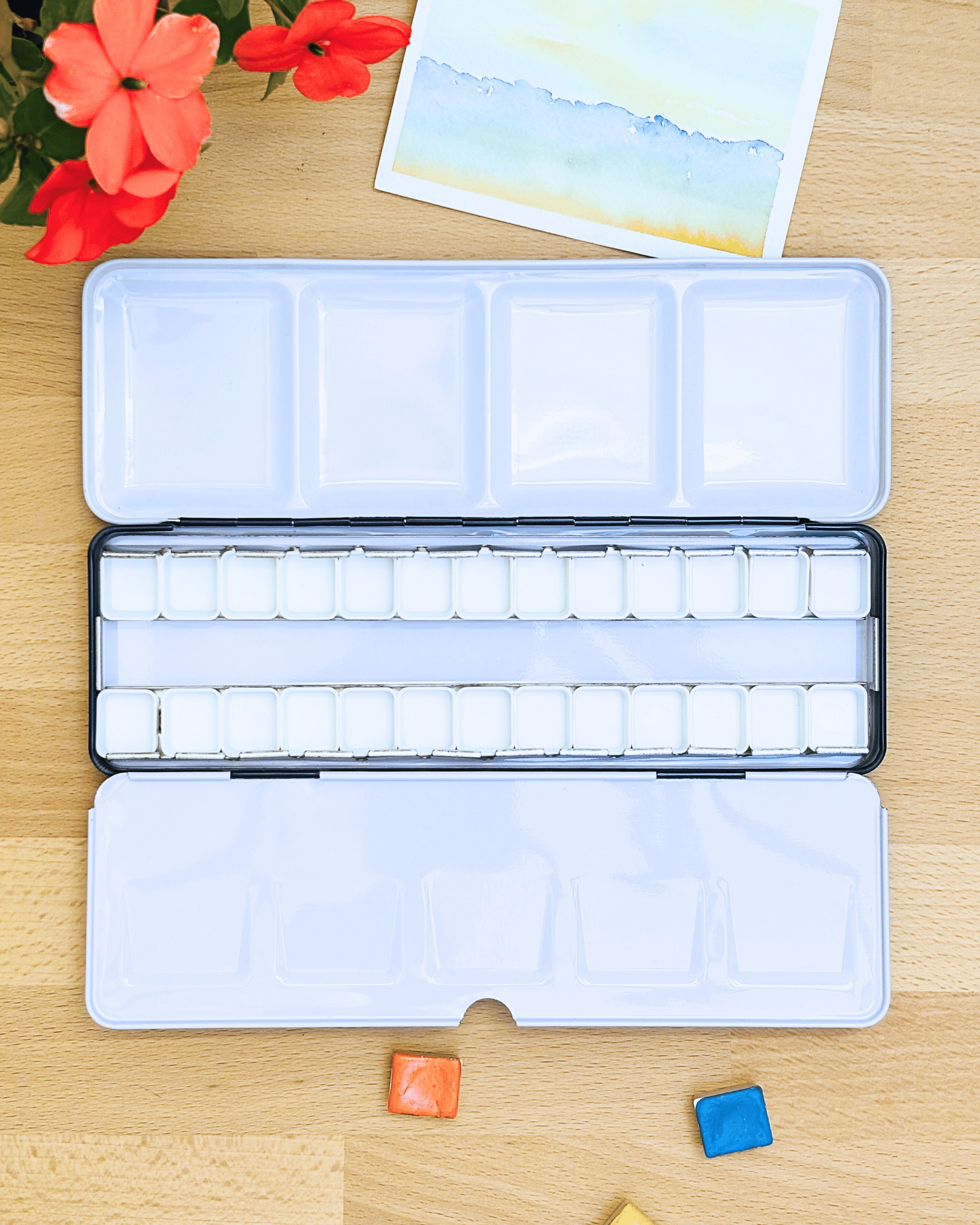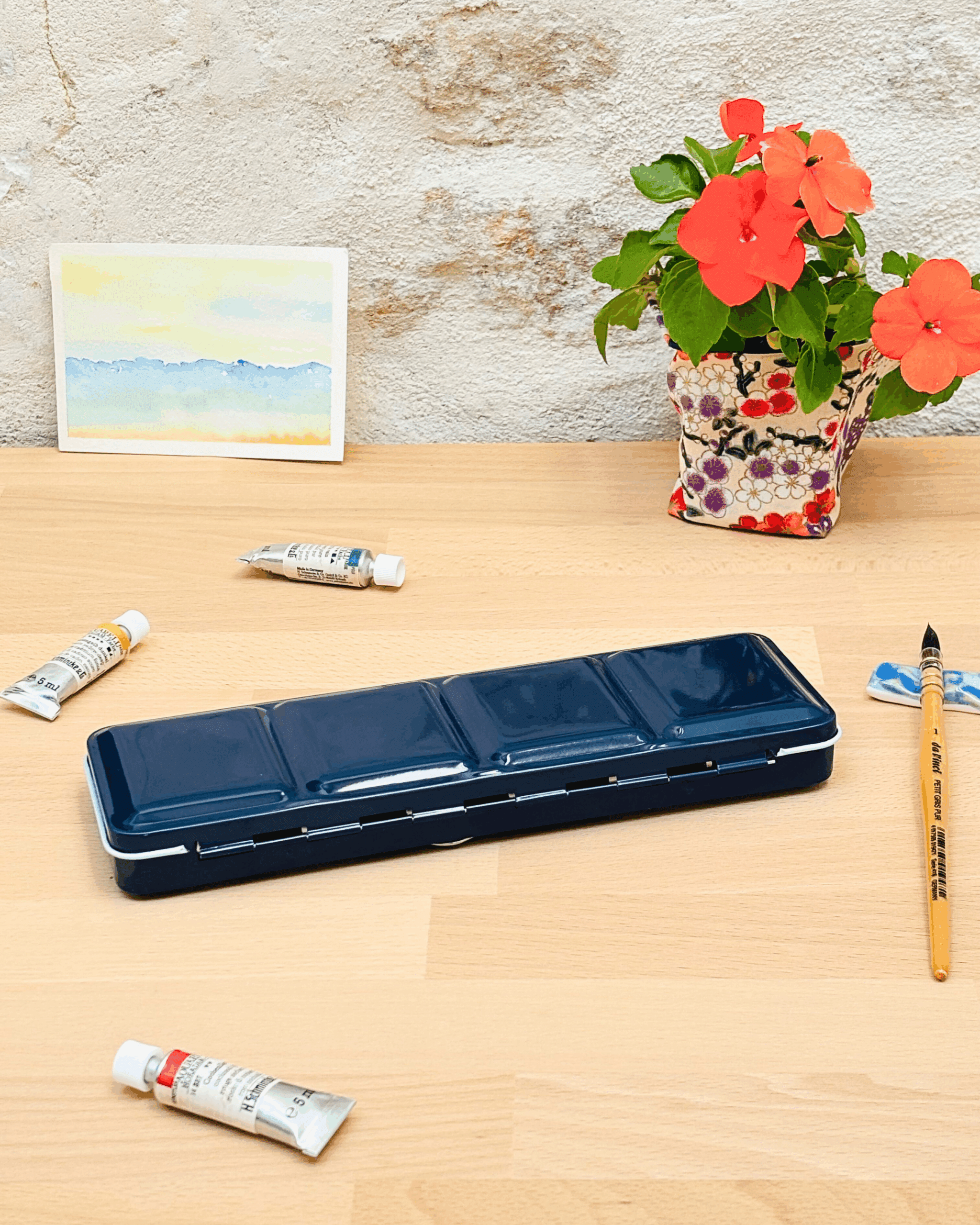 Personnalisez votre palette et rangez vos couleurs avec cette boîte d’aquarelle en métal émaillé.