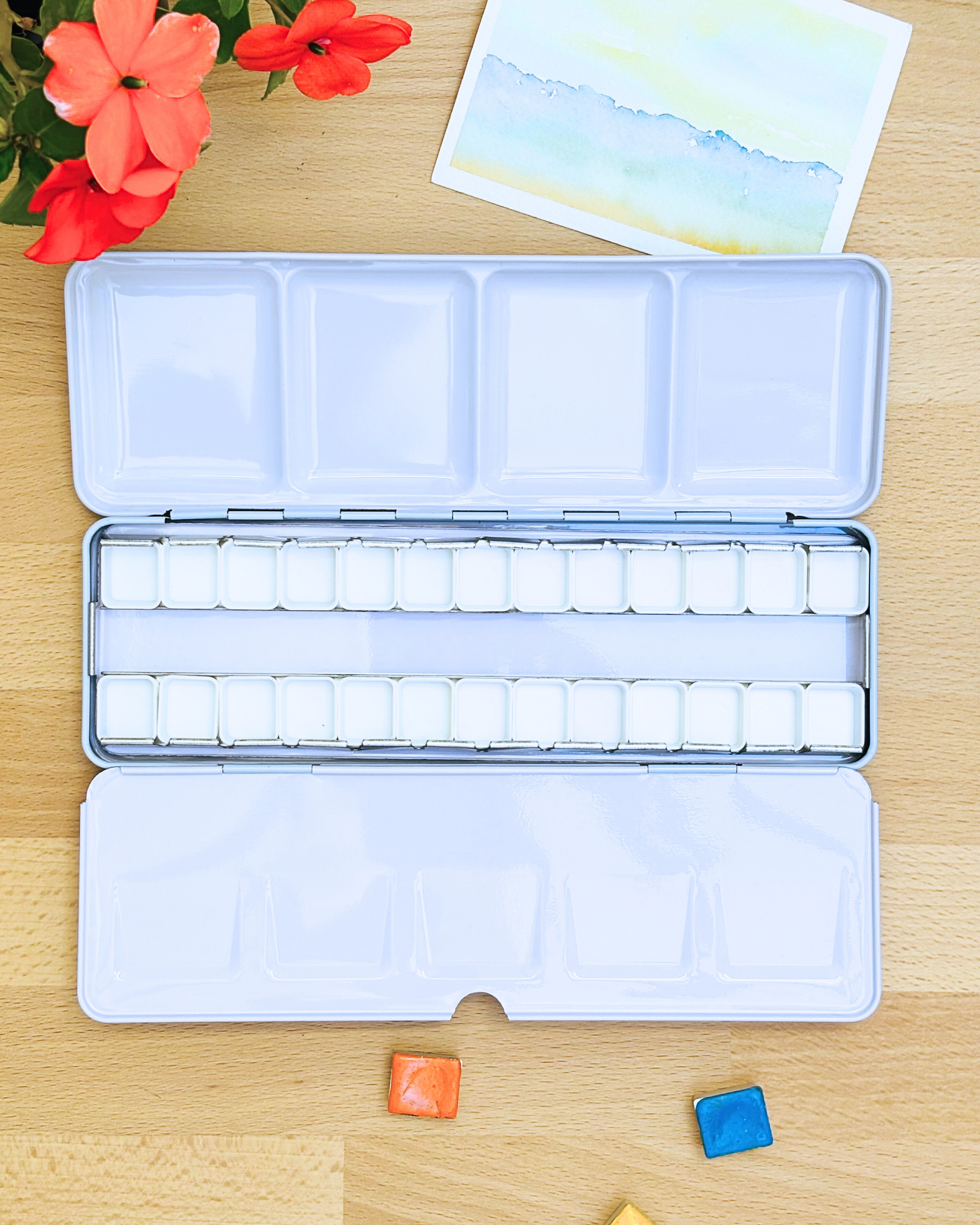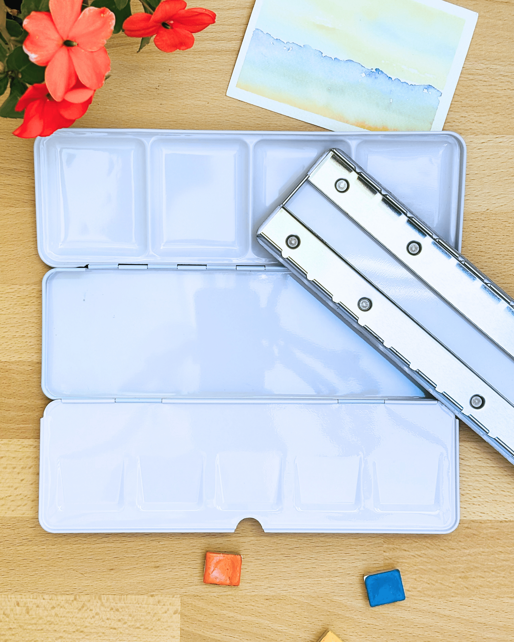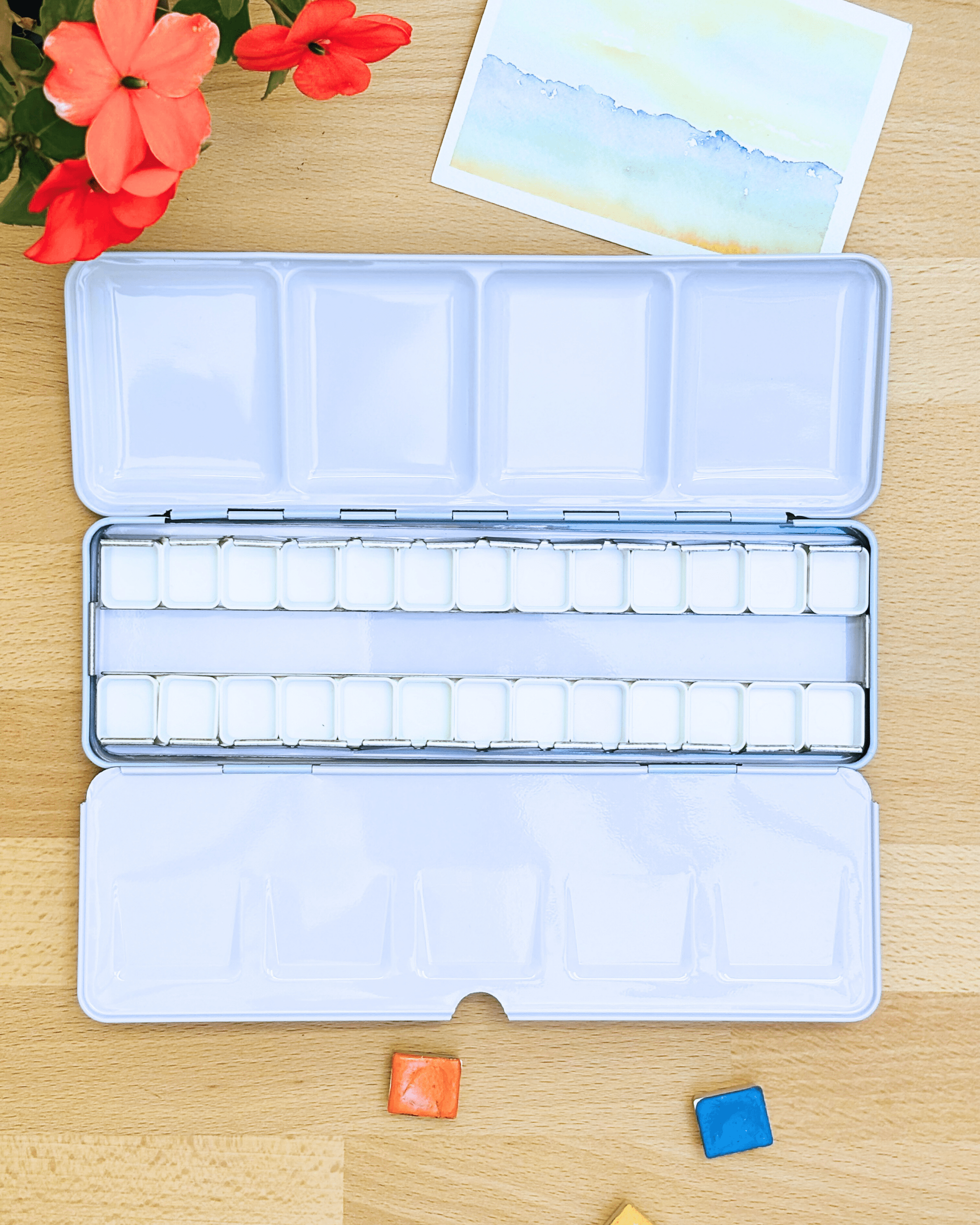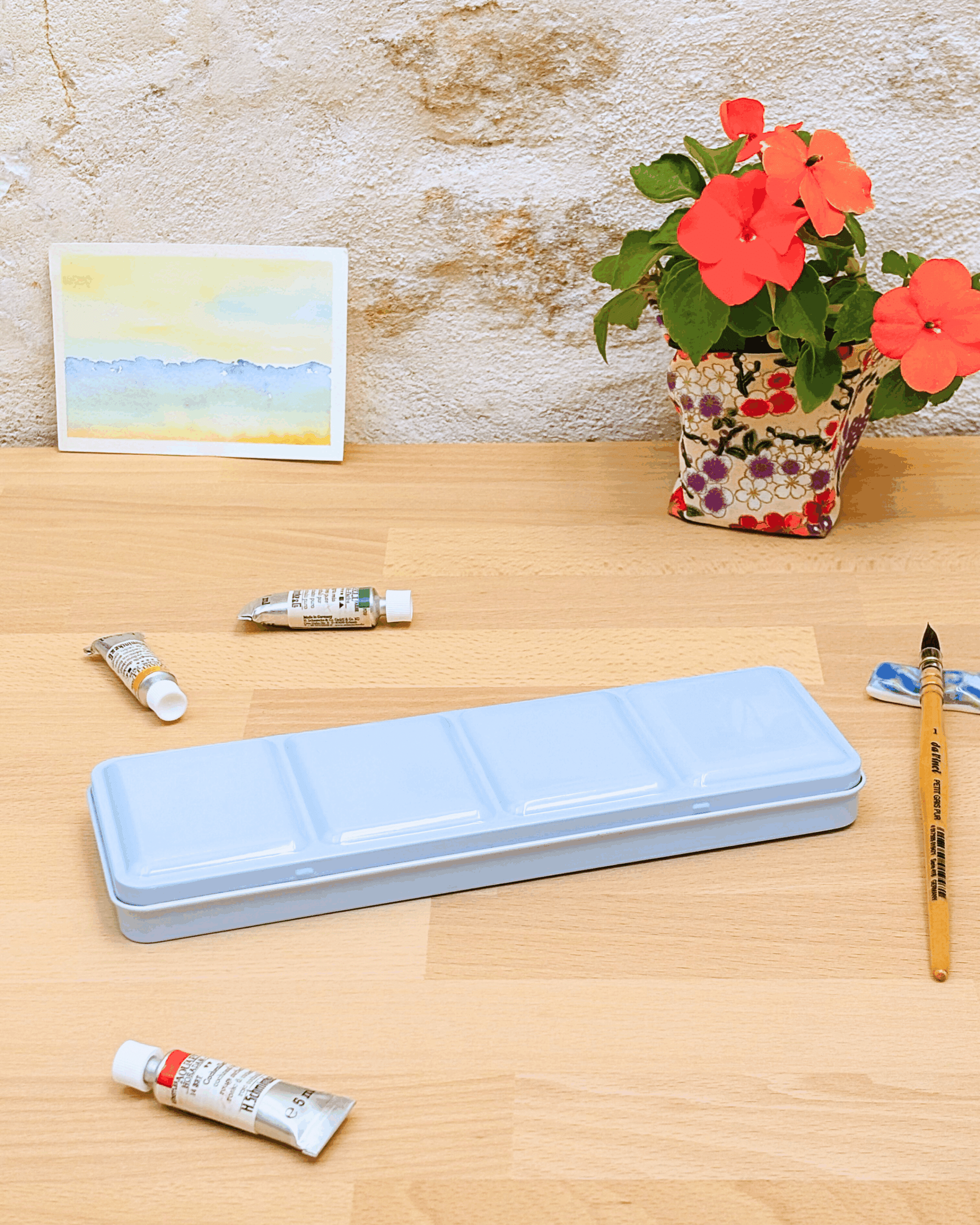 Personnalisez votre palette et rangez vos couleurs avec cette boîte d’aquarelle en métal émaillé.