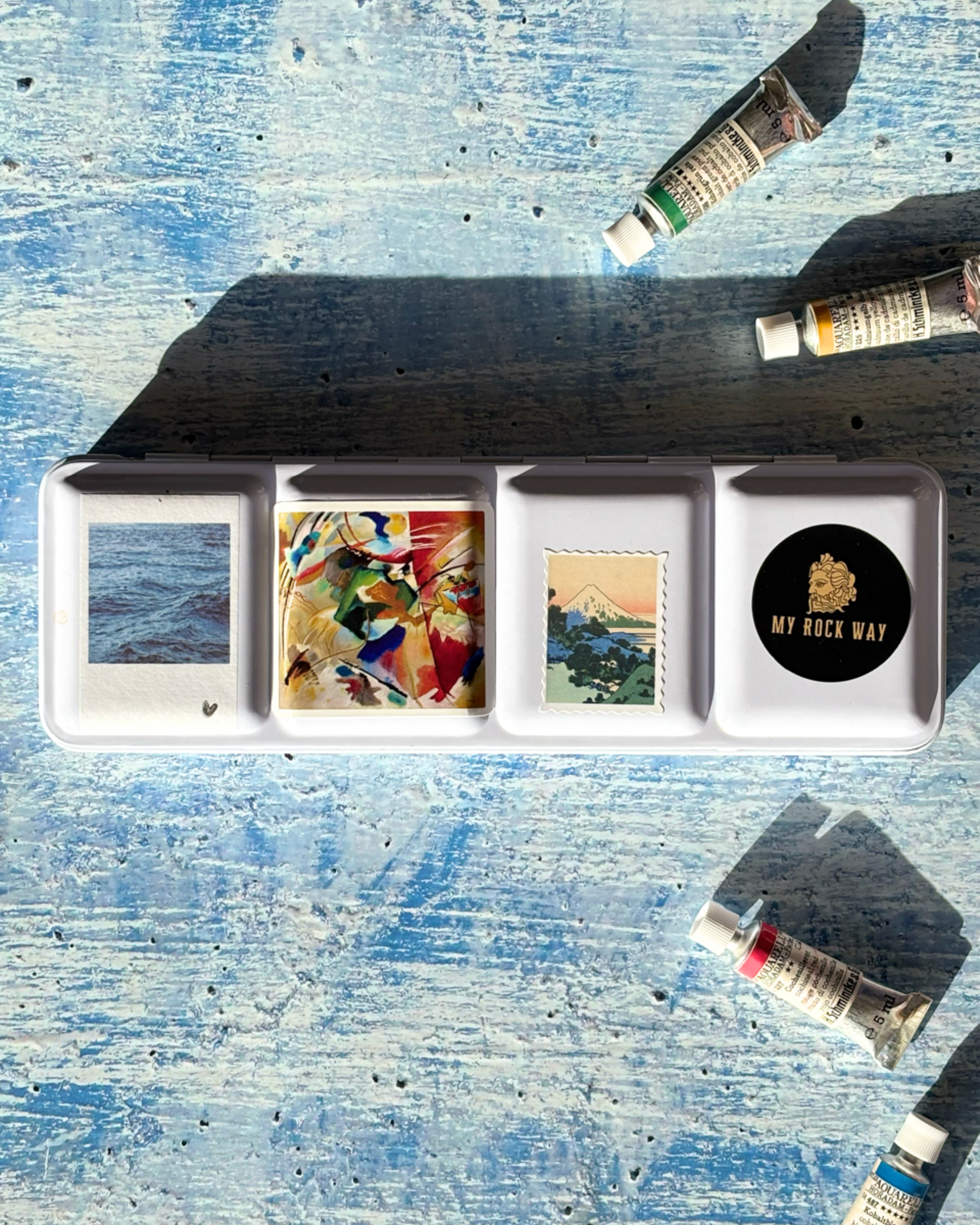 Boîte d’aquarelle DIY en métal à fond plat pour 24 couleurs – « La Mer »