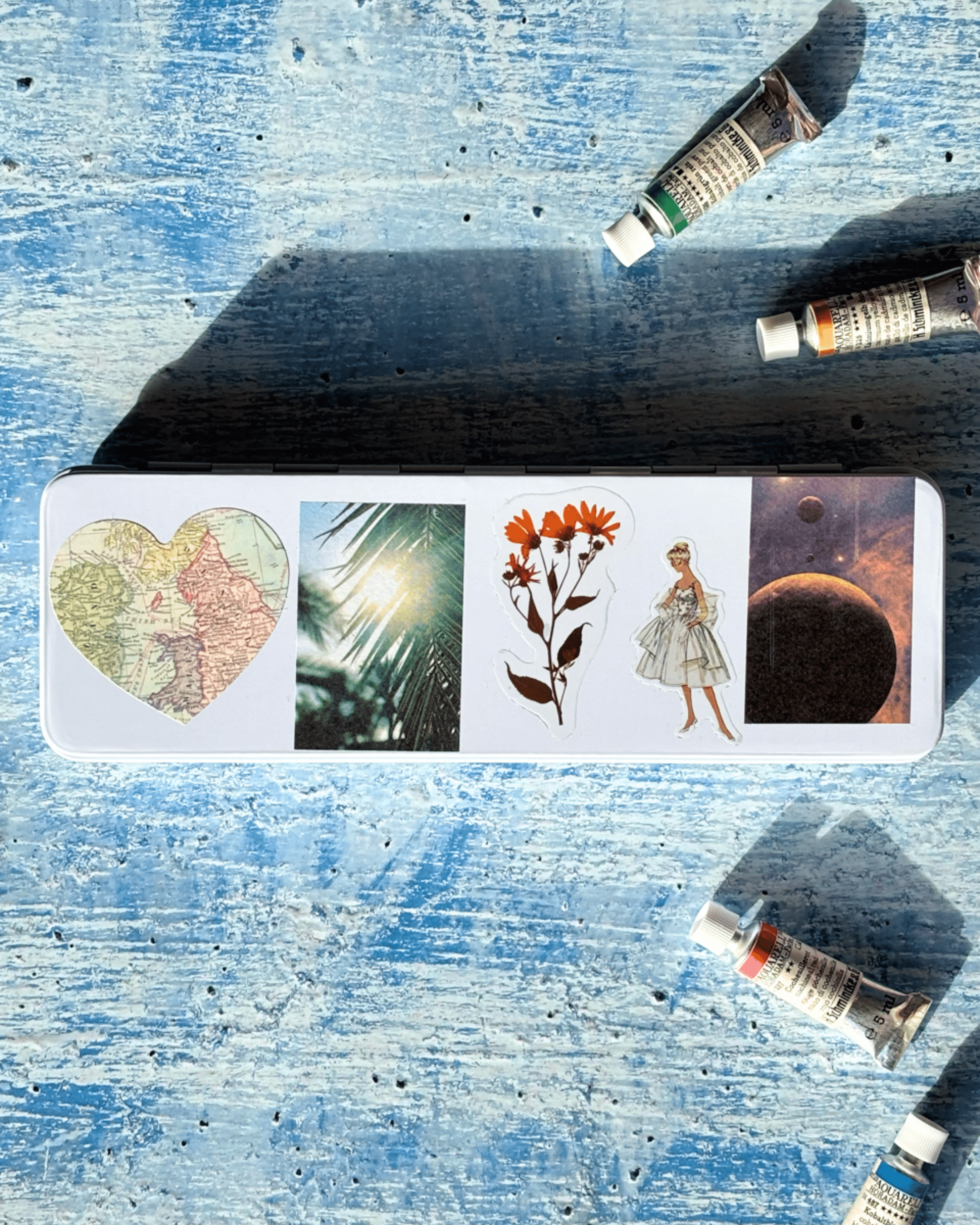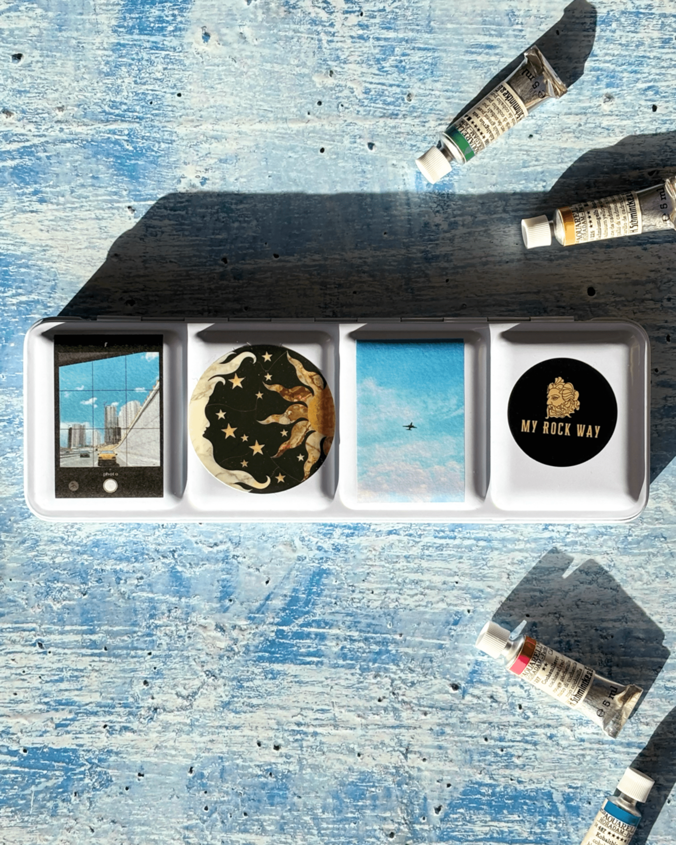 ✮Boîte d’aquarelle DIY en métal à fond plat pour 24 couleurs – « Le Ciel » ✮