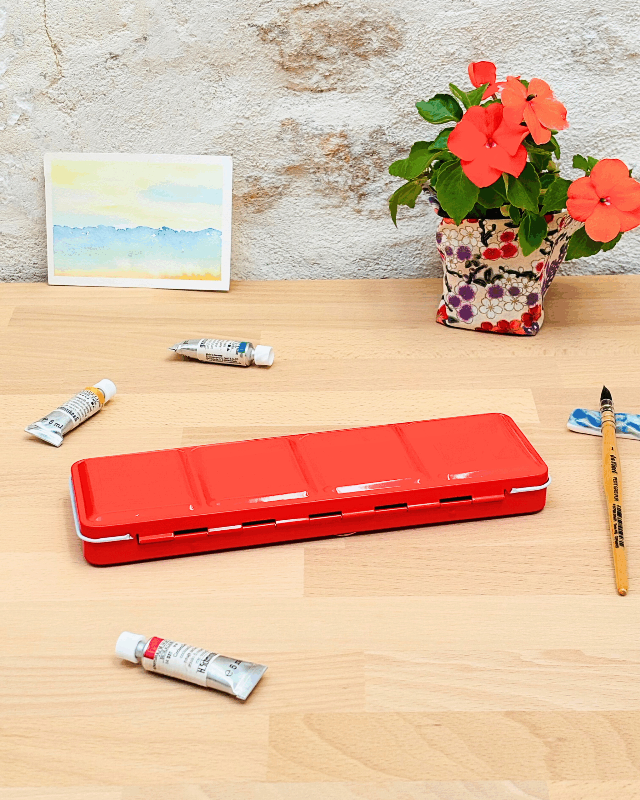 Boîte d’aquarelle en métal 24 couleurs couleur rouge – « Passion Scarlett »