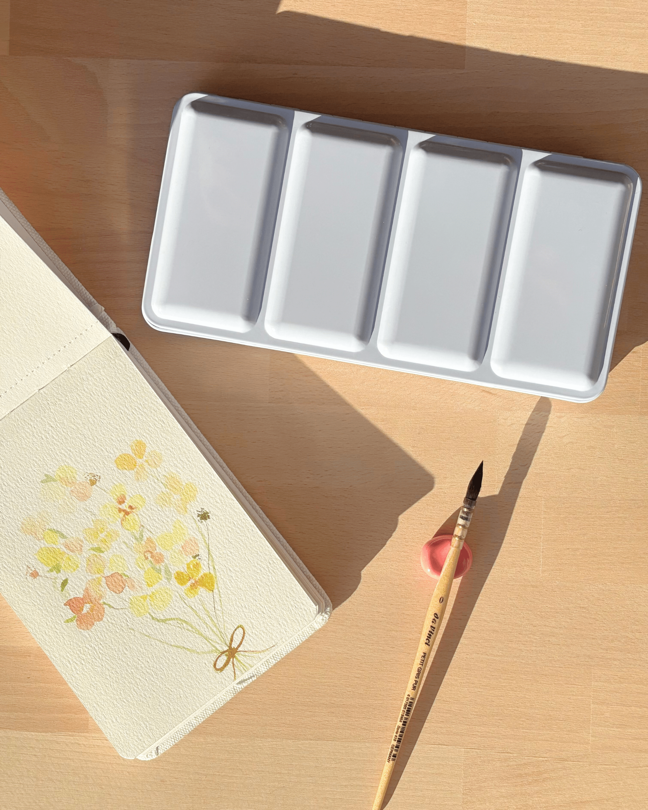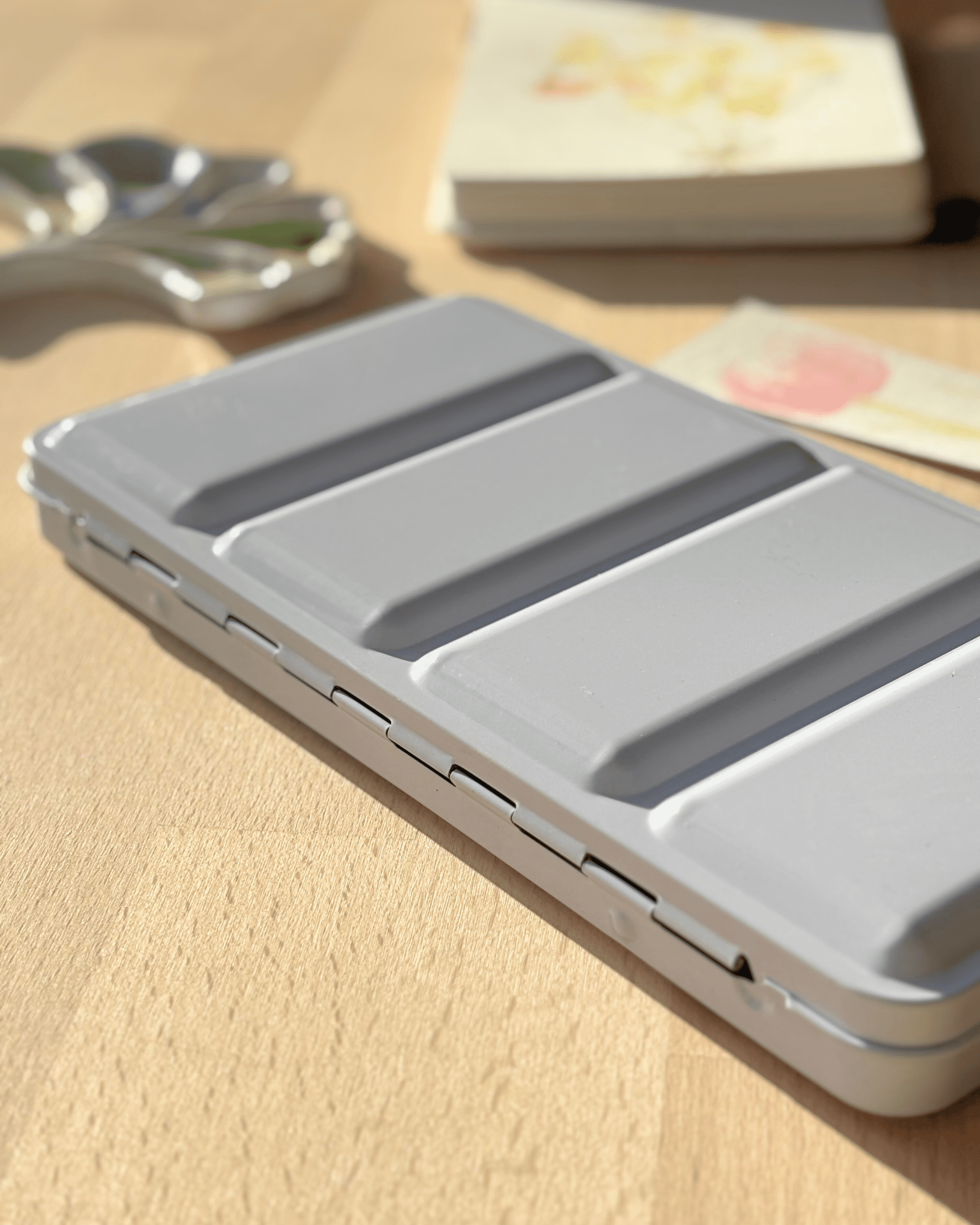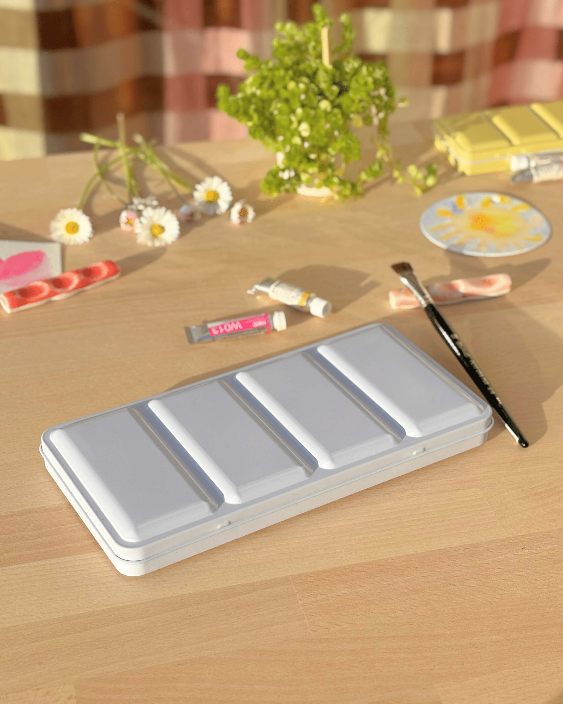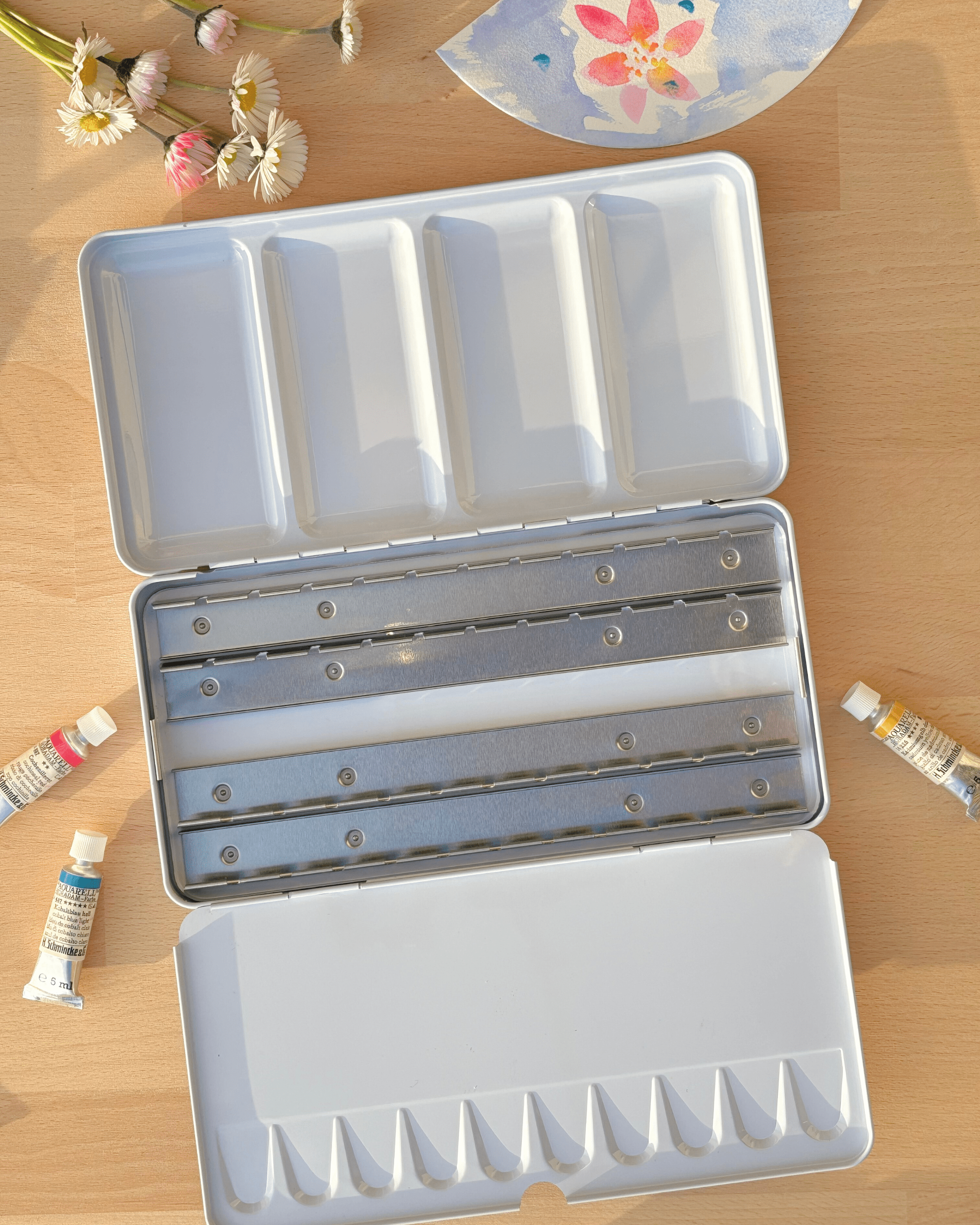 Personnalisez votre palette et rangez vos couleurs avec cette boîte d’aquarelle en métal émaillé.
