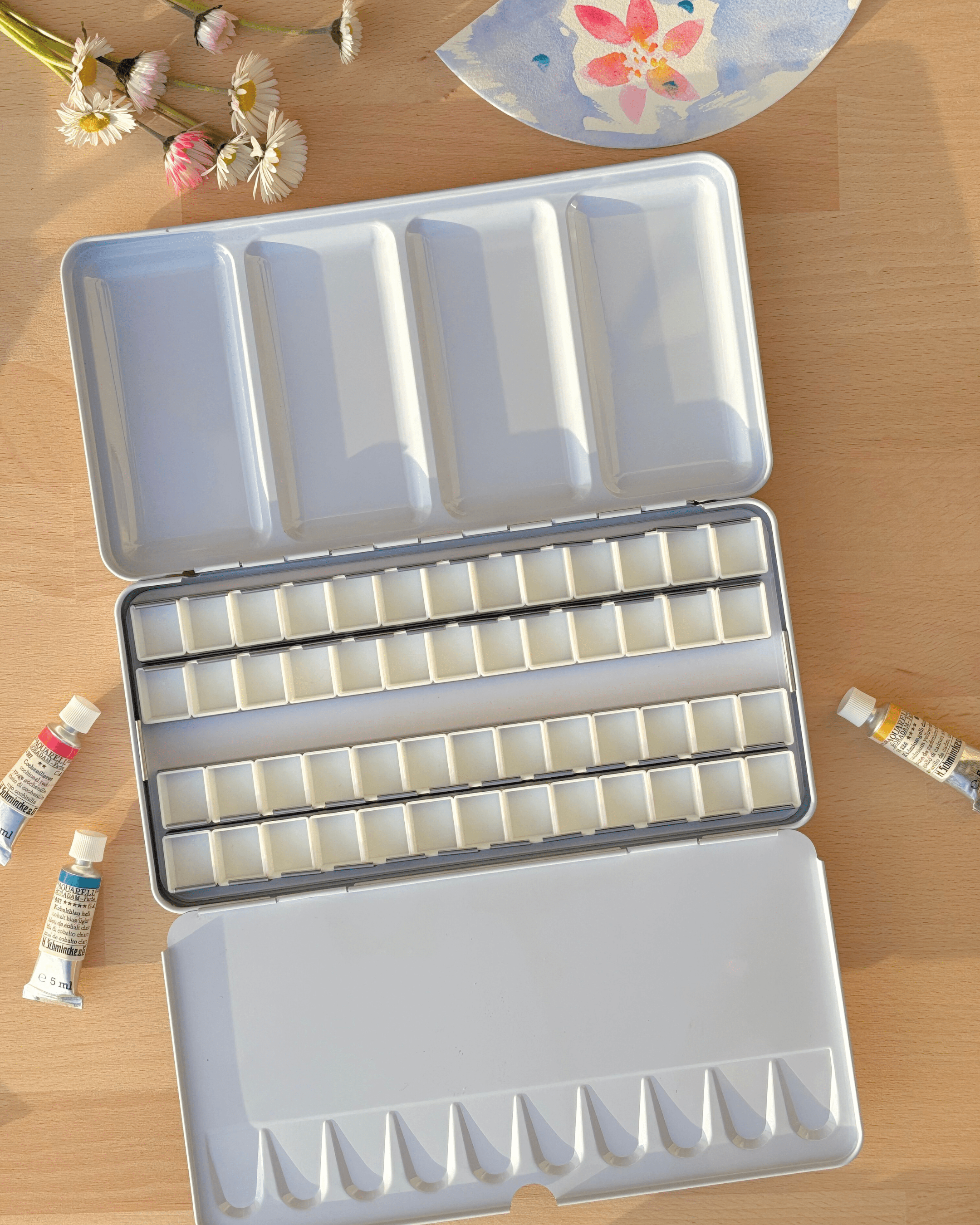 ✮ Boîte d’aquarelle en métal 48 couleurs – « White Sand » ✮