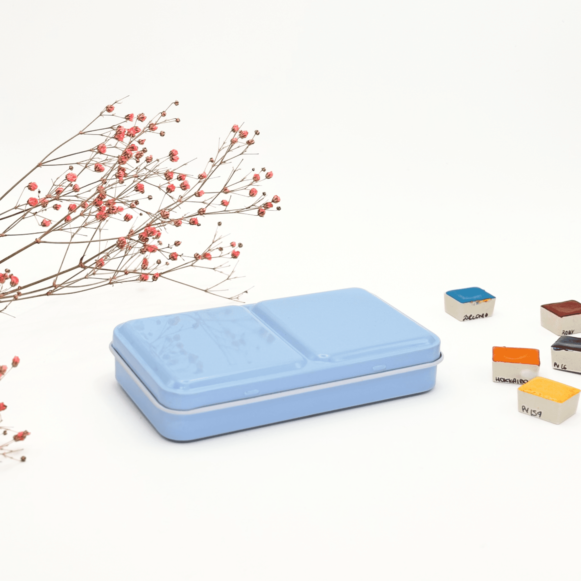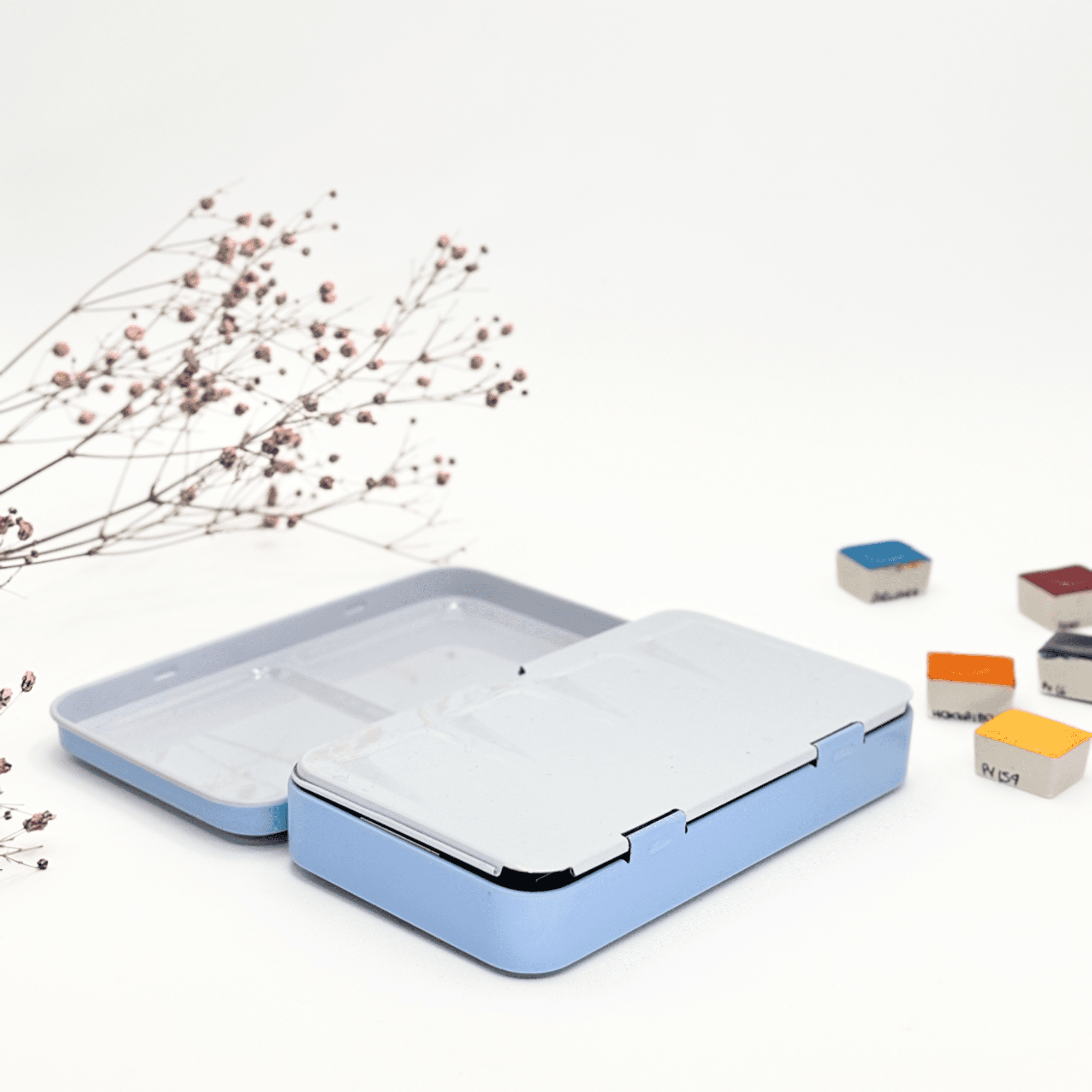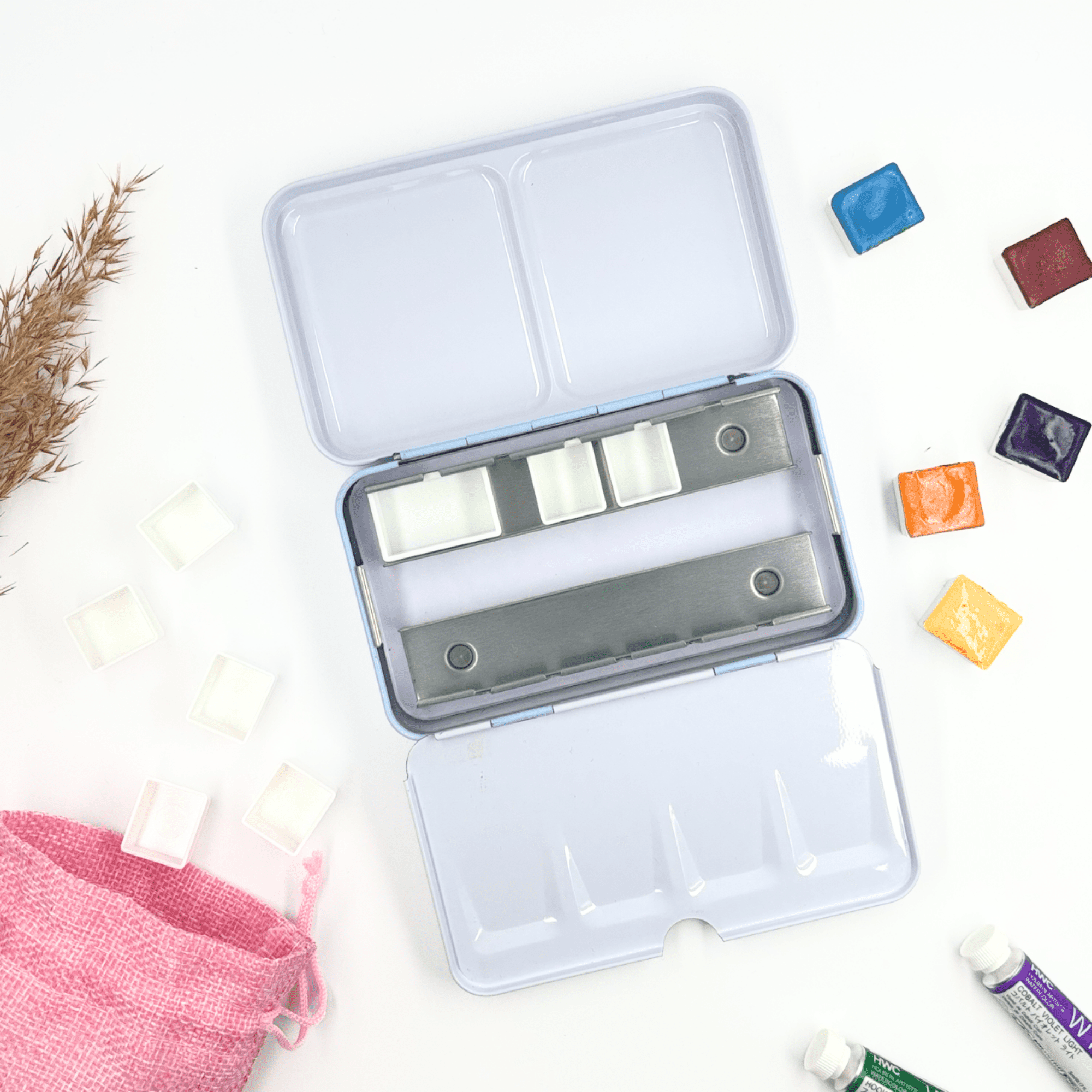 ✮ Boîte d’aquarelle en métal 12 couleurs – « Morning Fog Blue» ✮