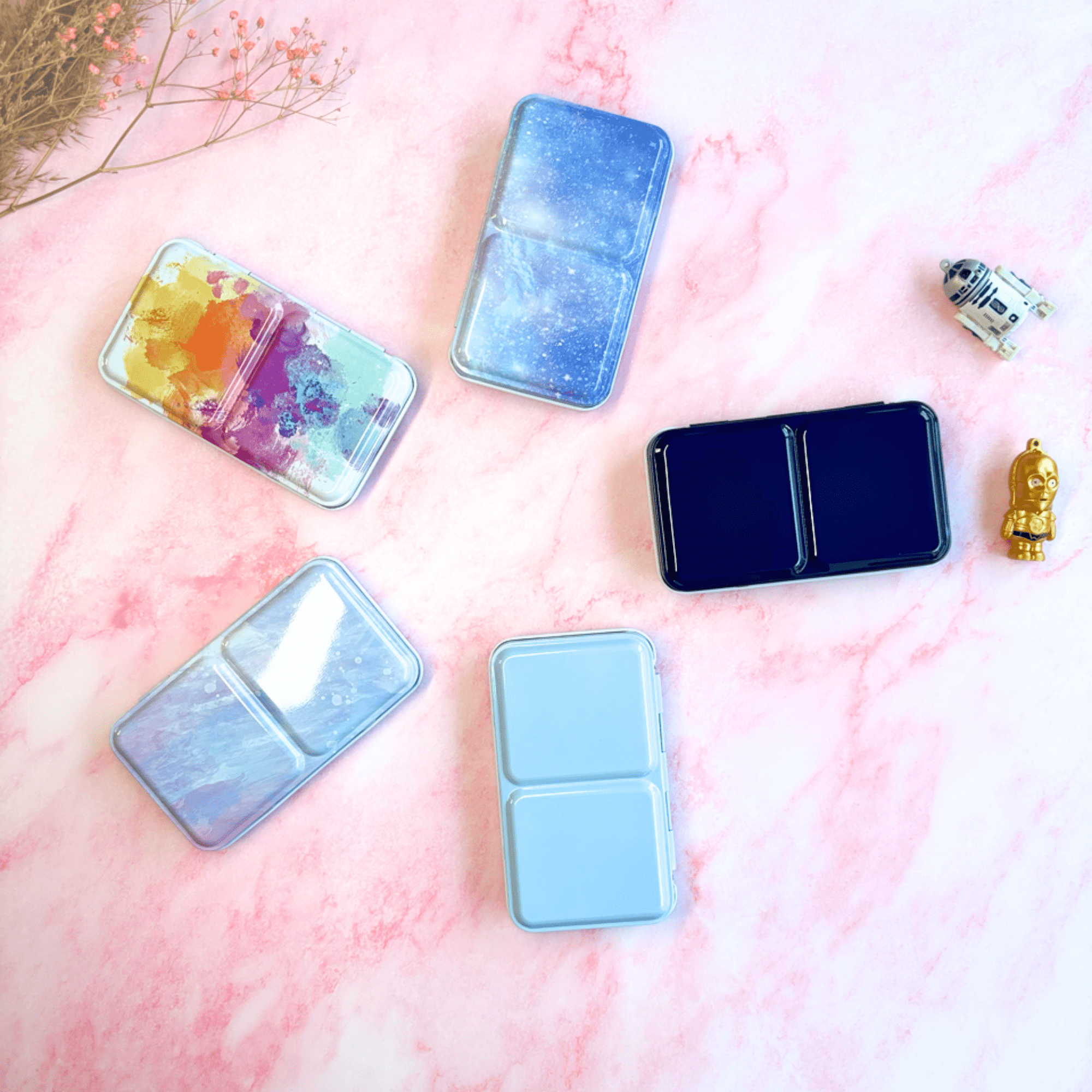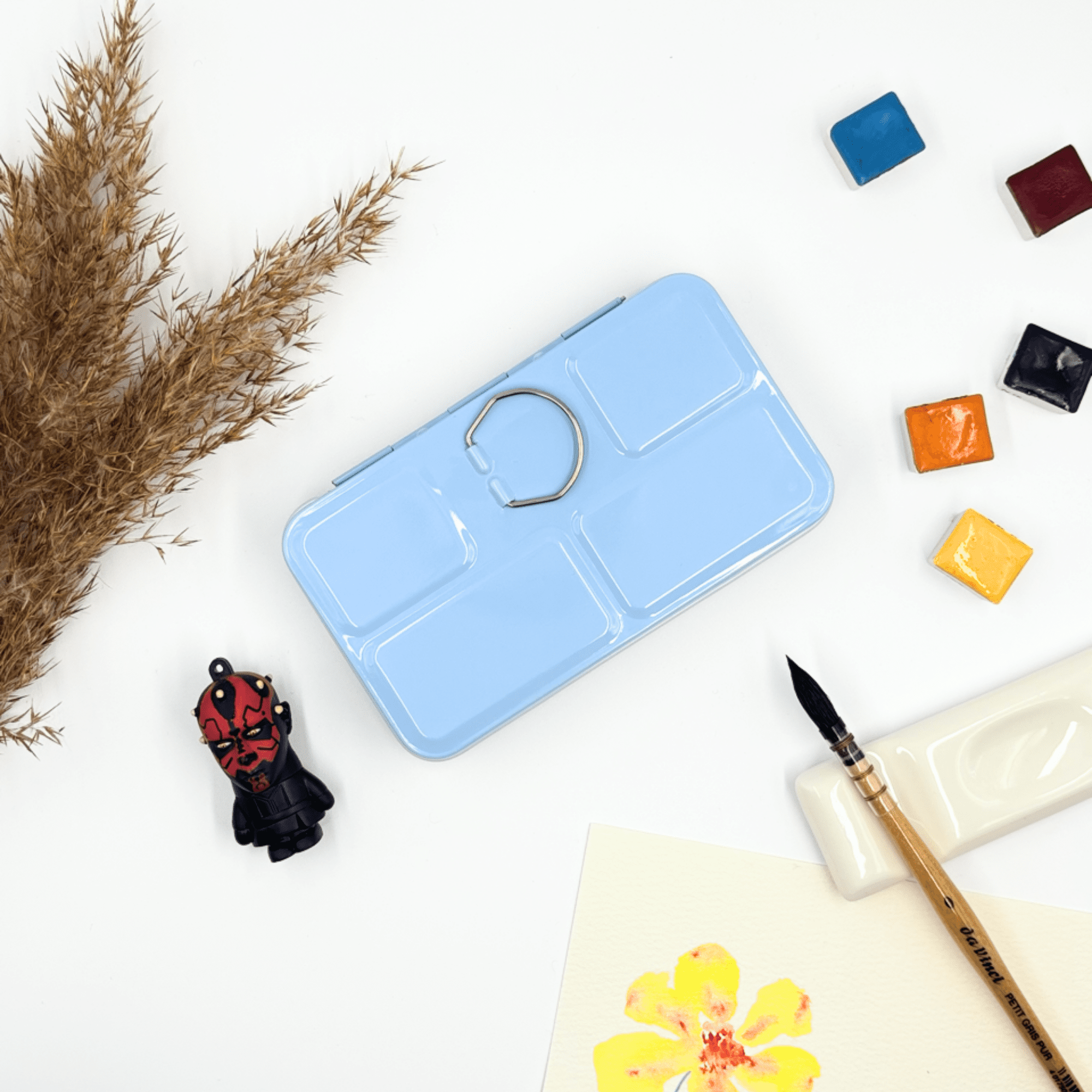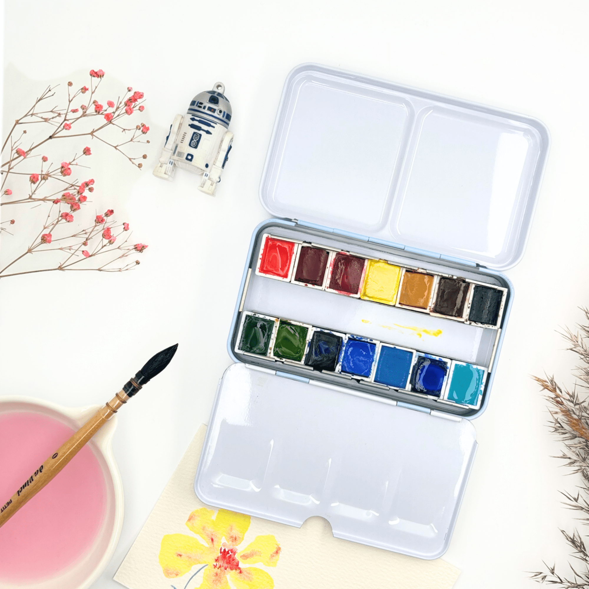 ✮ Boîte d’aquarelle en métal 12 couleurs – « Morning Fog Blue» ✮