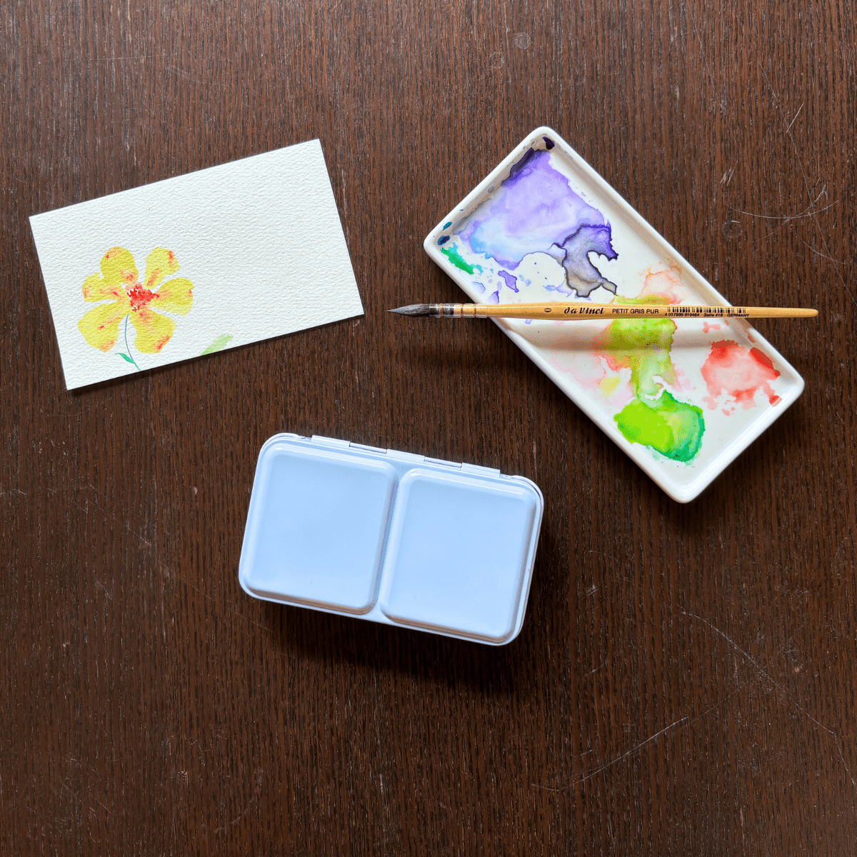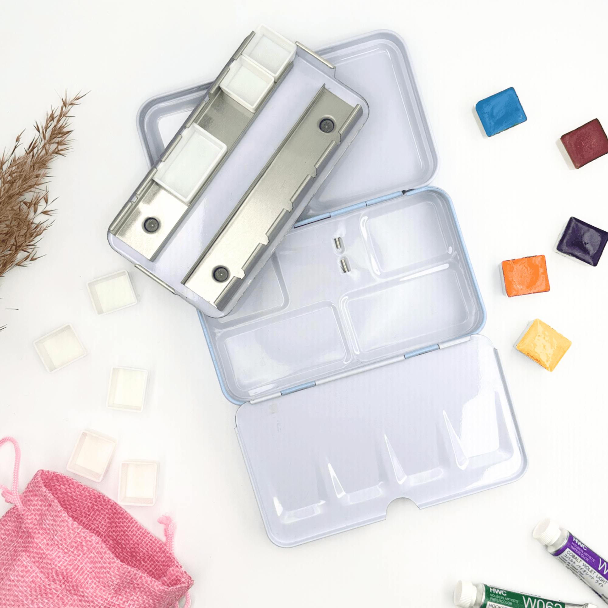 Personnalisez votre palette et rangez vos couleurs avec cette boîte d’aquarelle en métal émaillé.
