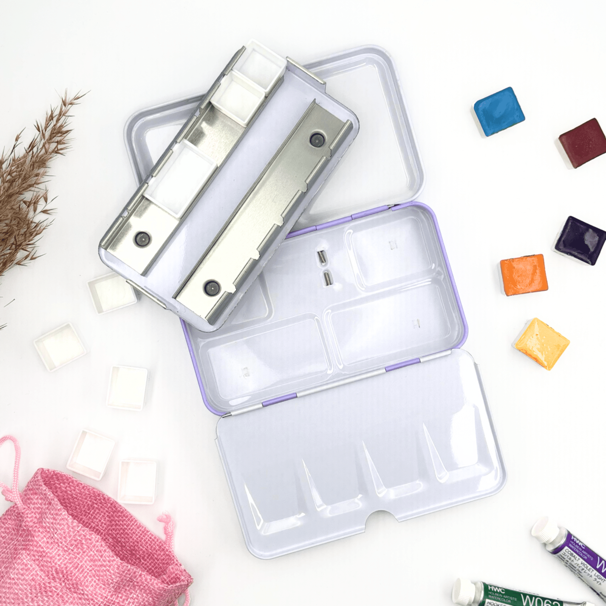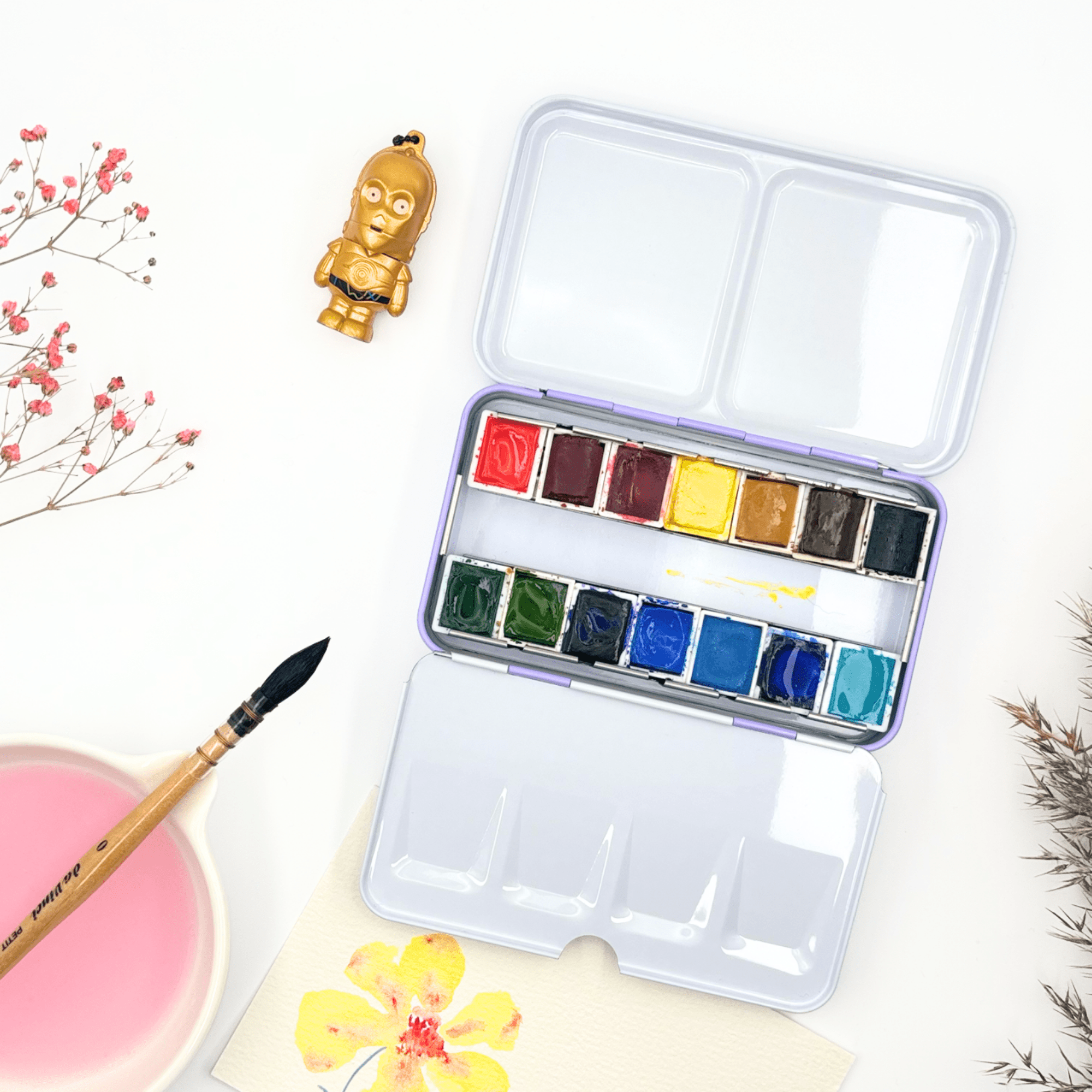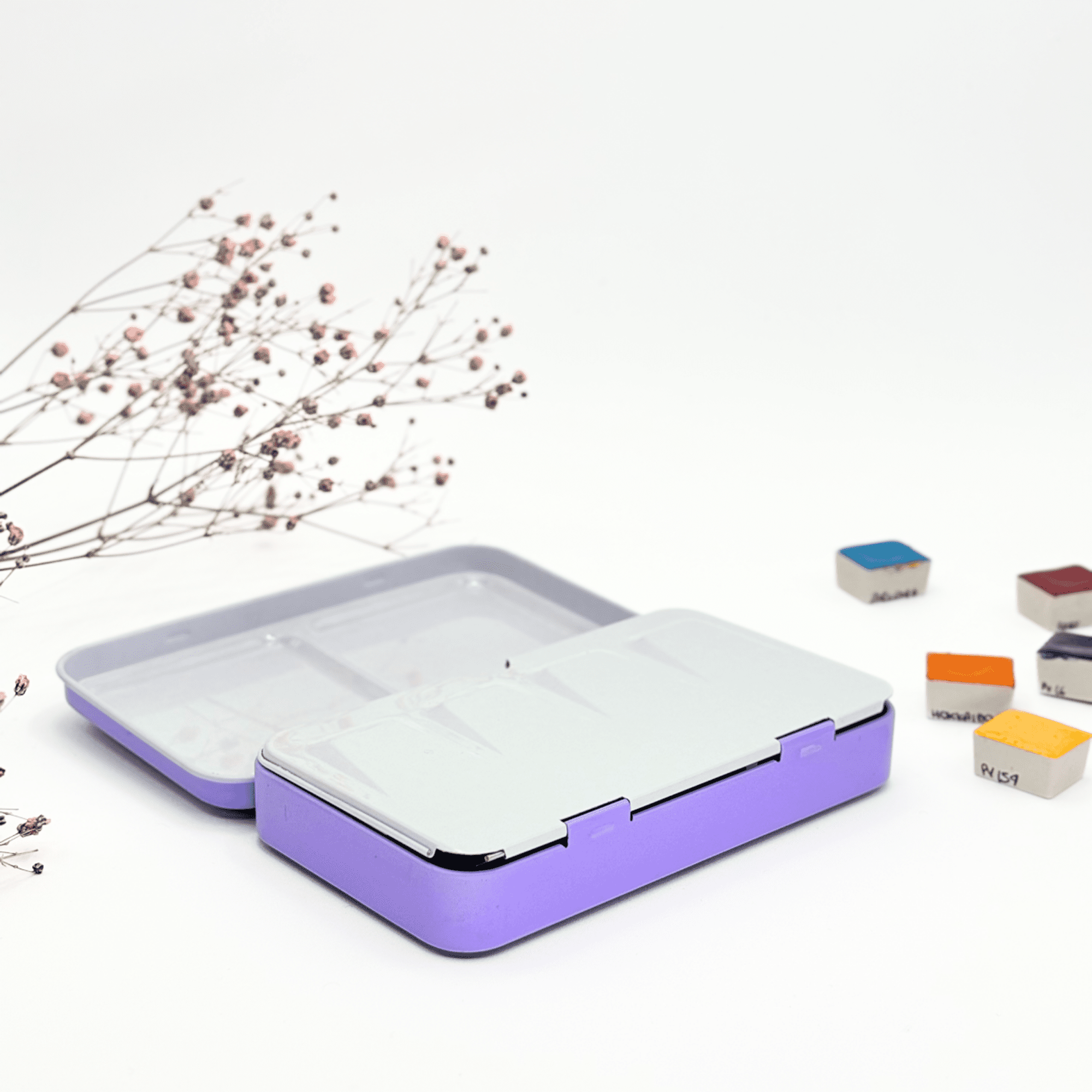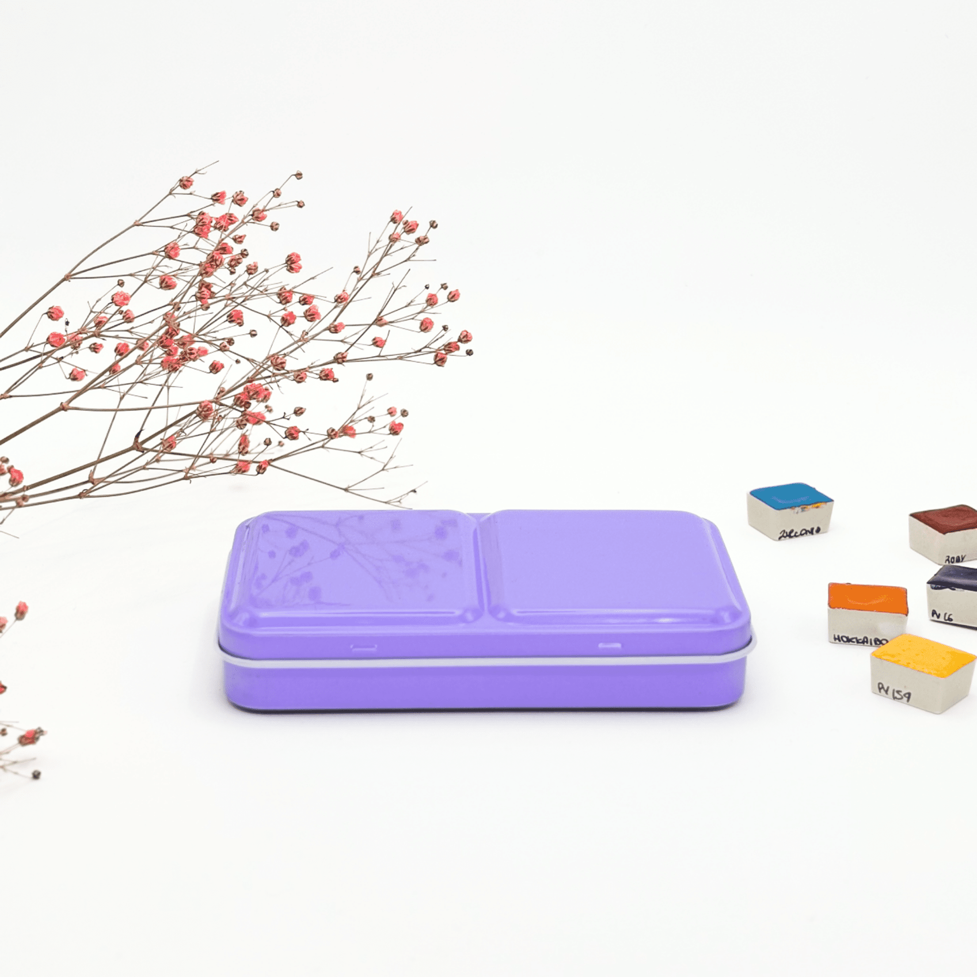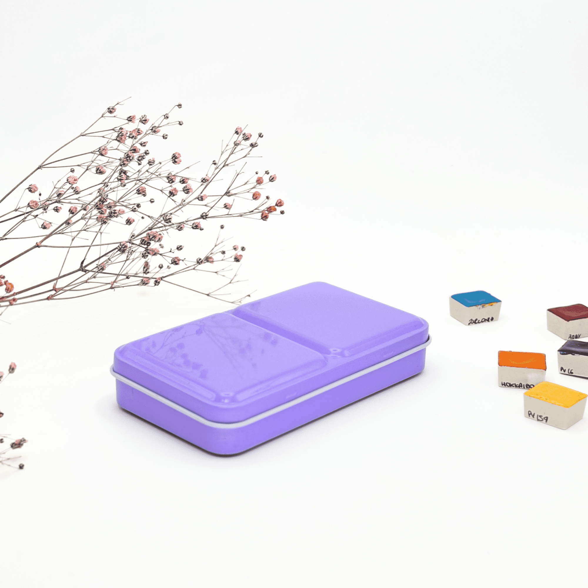✮ Boîte d’aquarelle en métal 12 couleurs – « Lilacs Summer » ✮