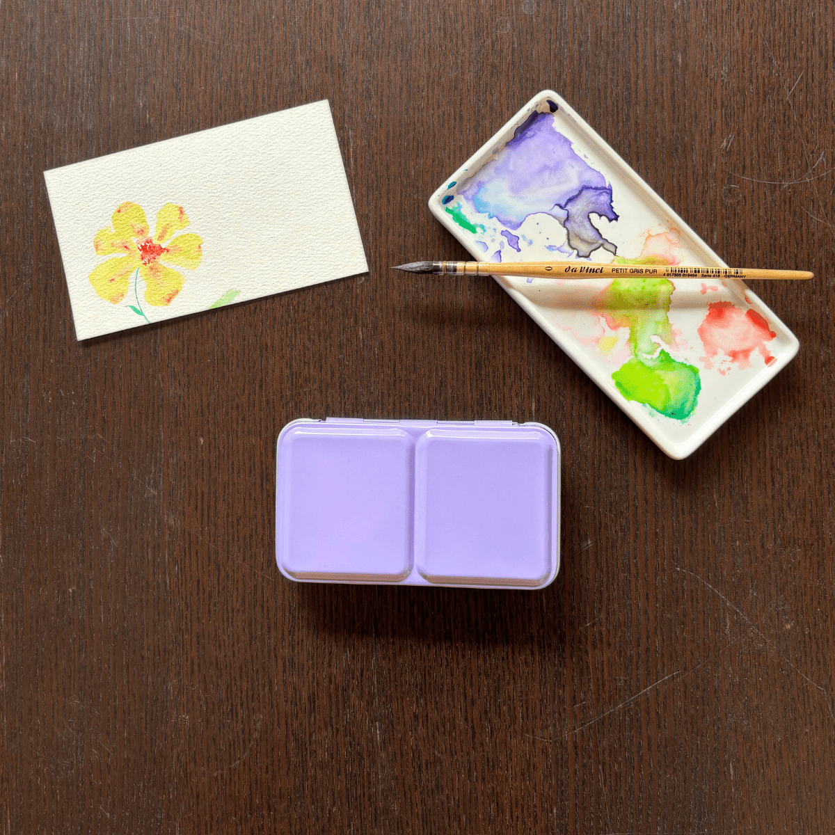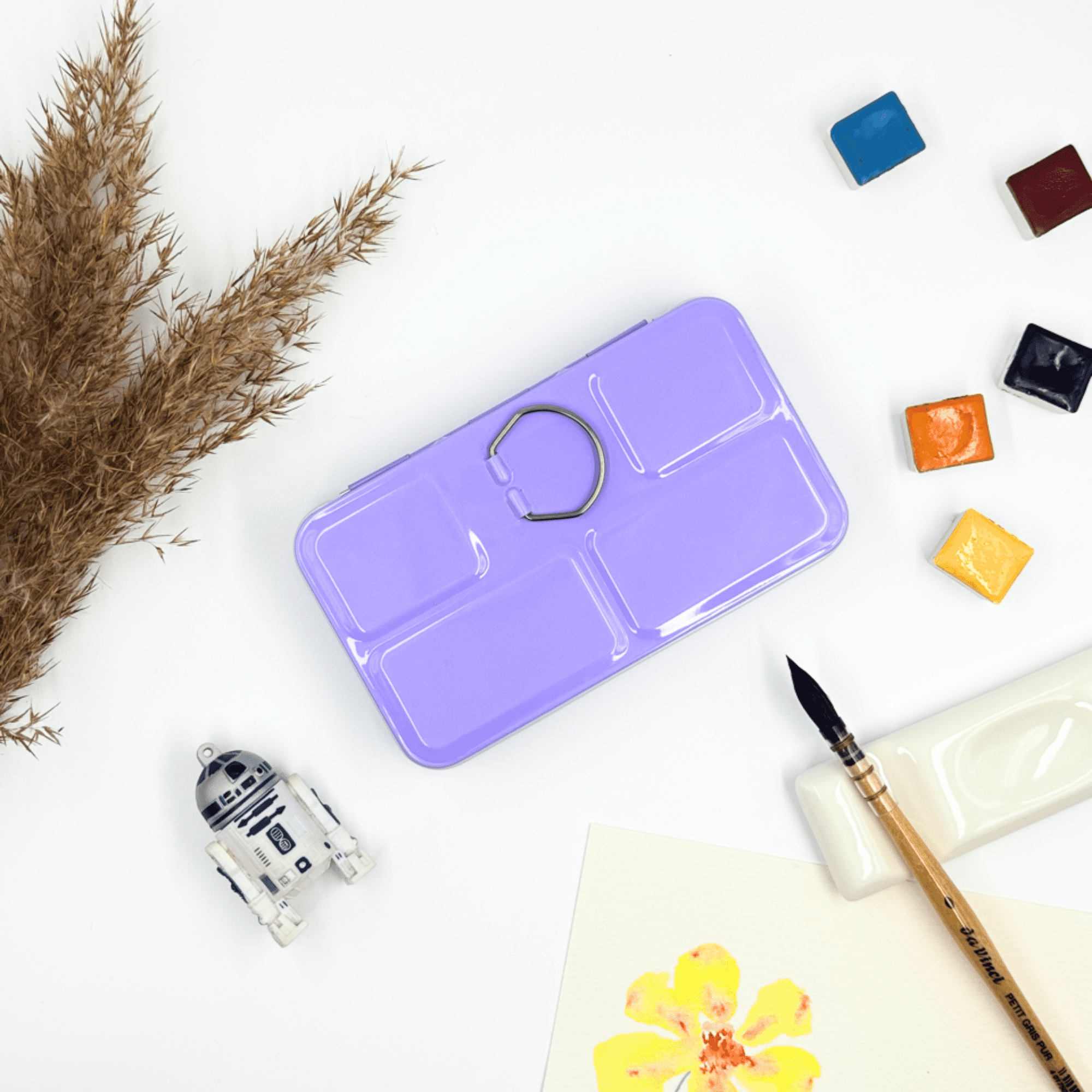 Personnalisez votre palette et rangez vos couleurs avec cette boîte d’aquarelle en métal émaillé.
