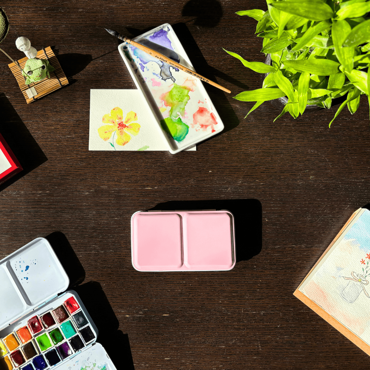 Personnalisez votre palette et rangez vos couleurs avec cette boîte d’aquarelle en métal émaillé.