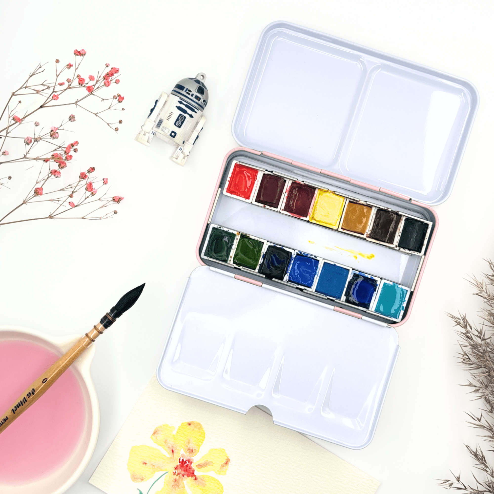 ✮Boîte d’aquarelle en métal 12 couleurs –« Cherry Blossom » ✮