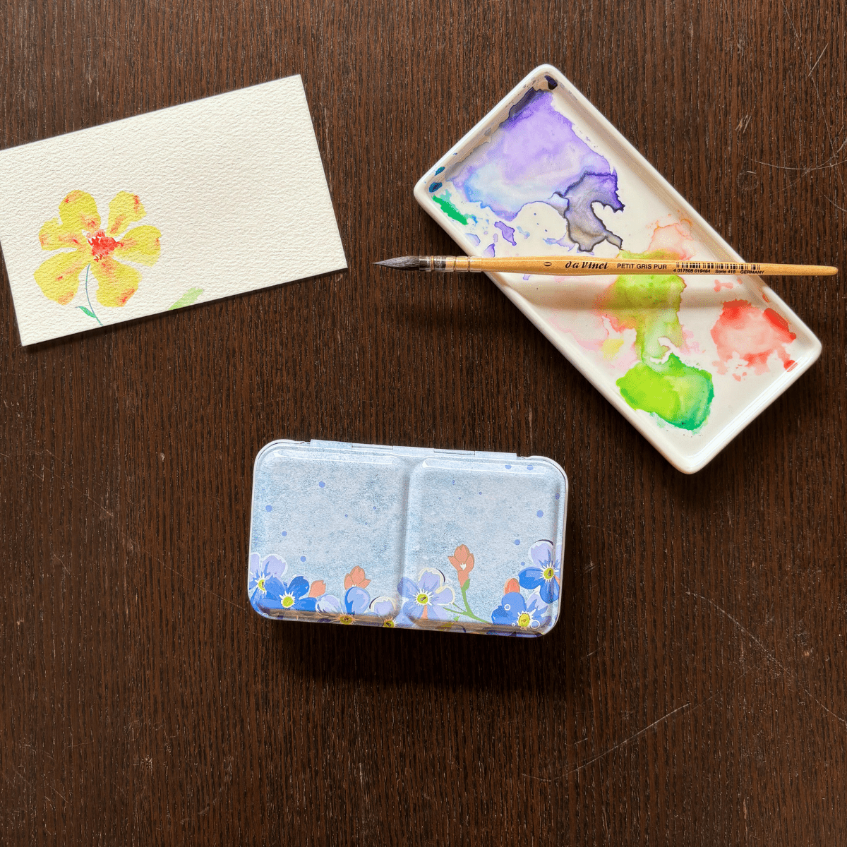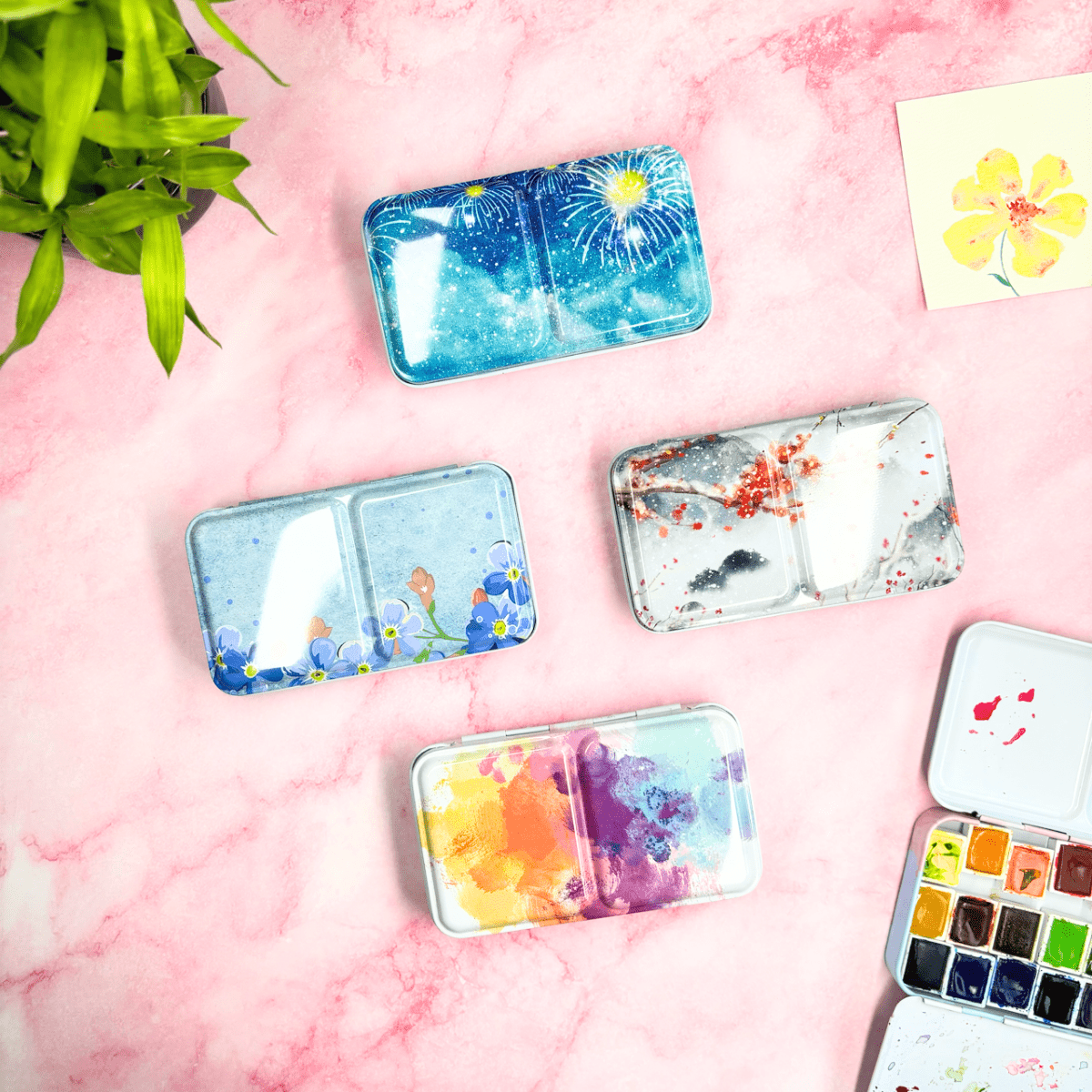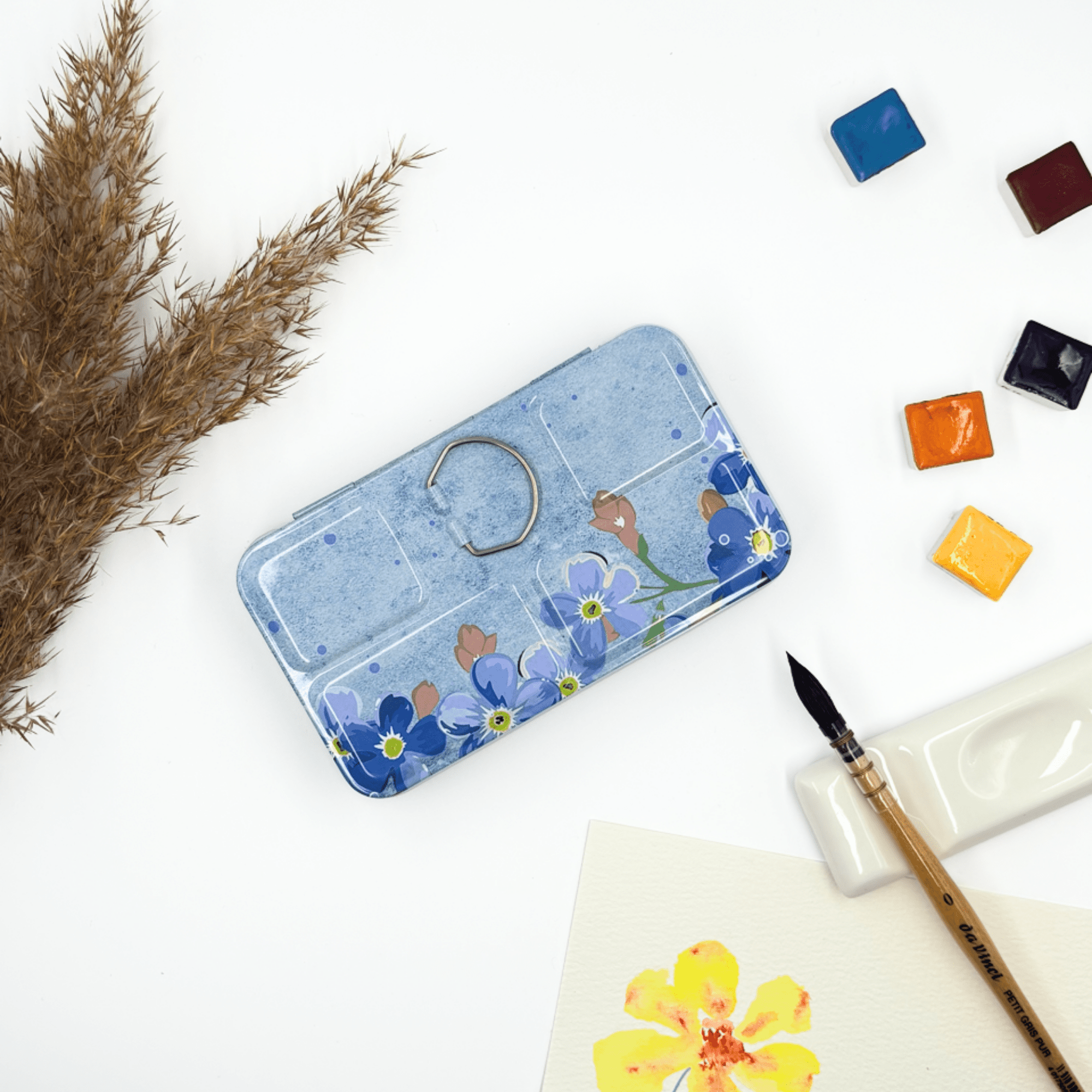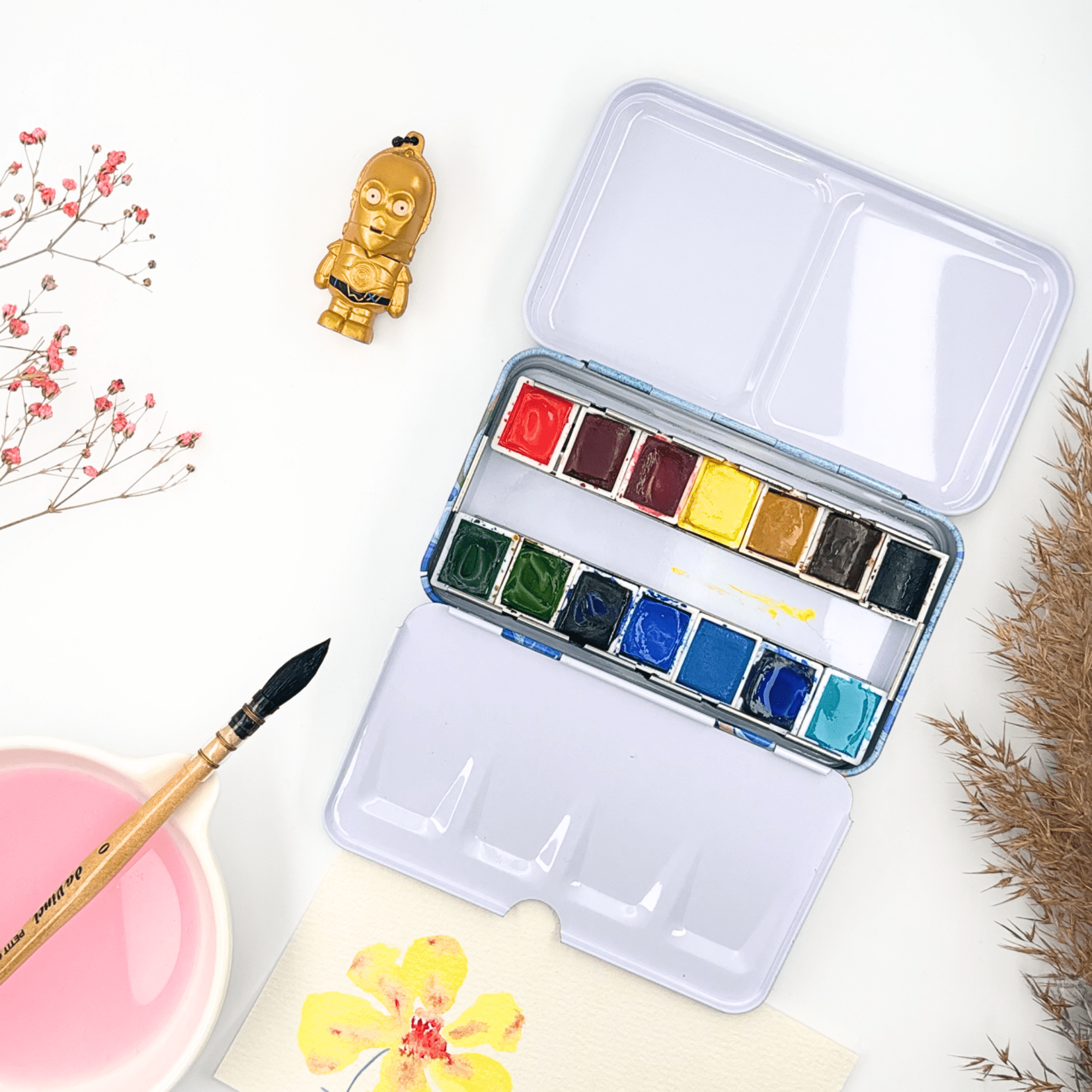 ✮ Boîte d’aquarelle en métal 12 couleurs – « Whisper of Flower » ✮