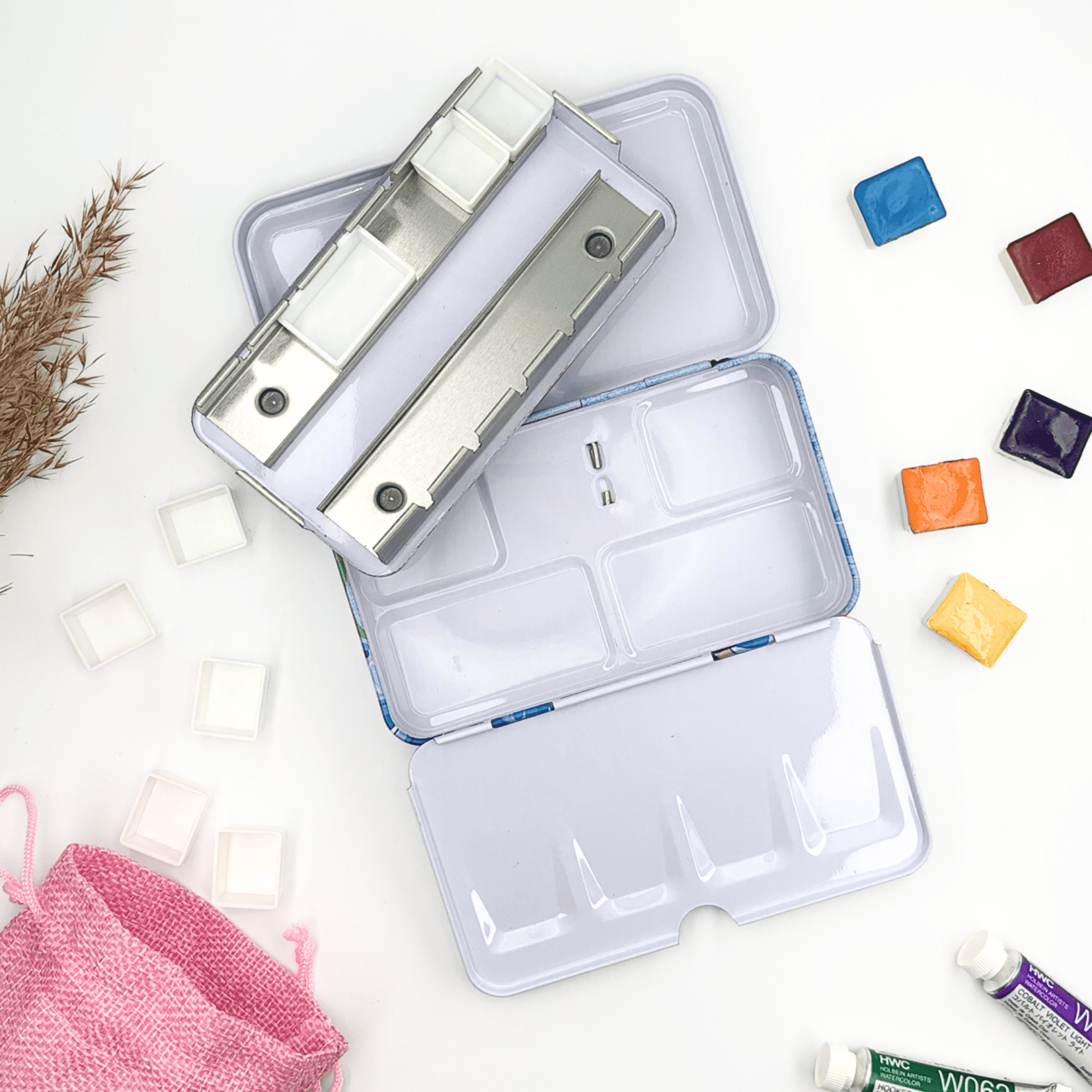 Personnalisez votre palette et rangez vos couleurs avec cette boîte d’aquarelle en métal émaillé.