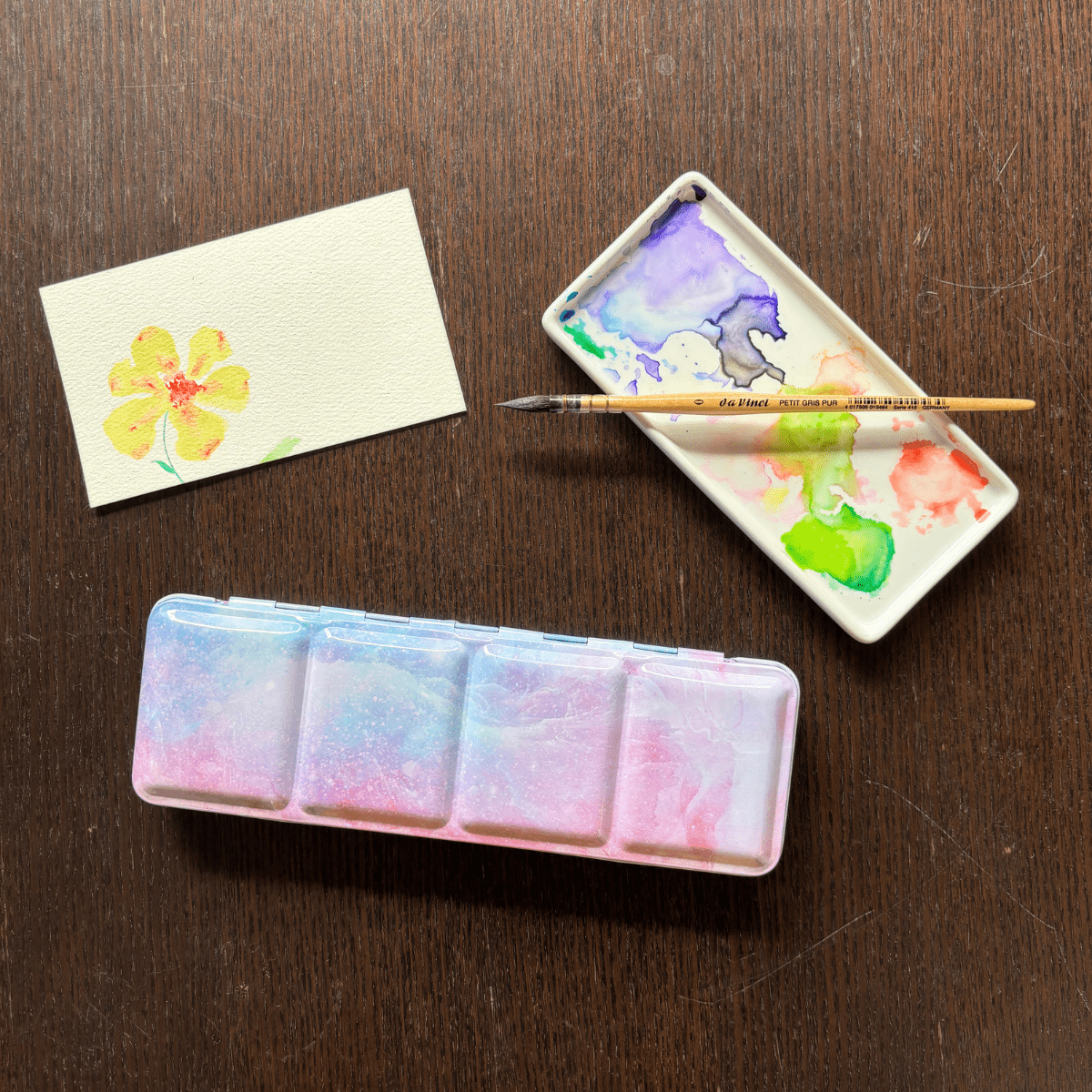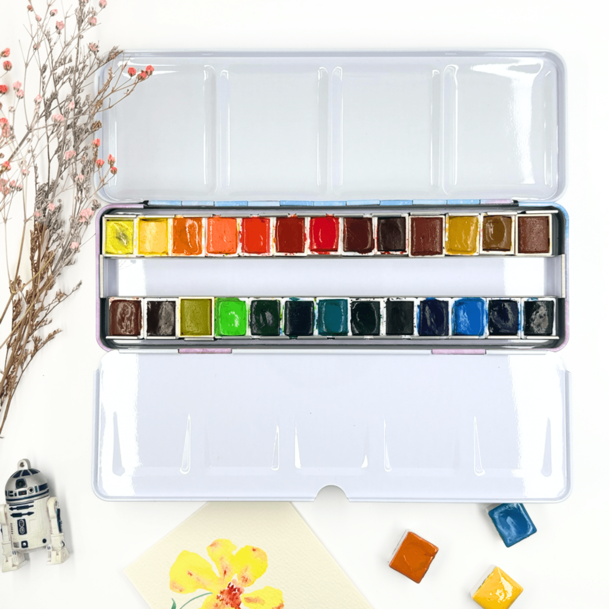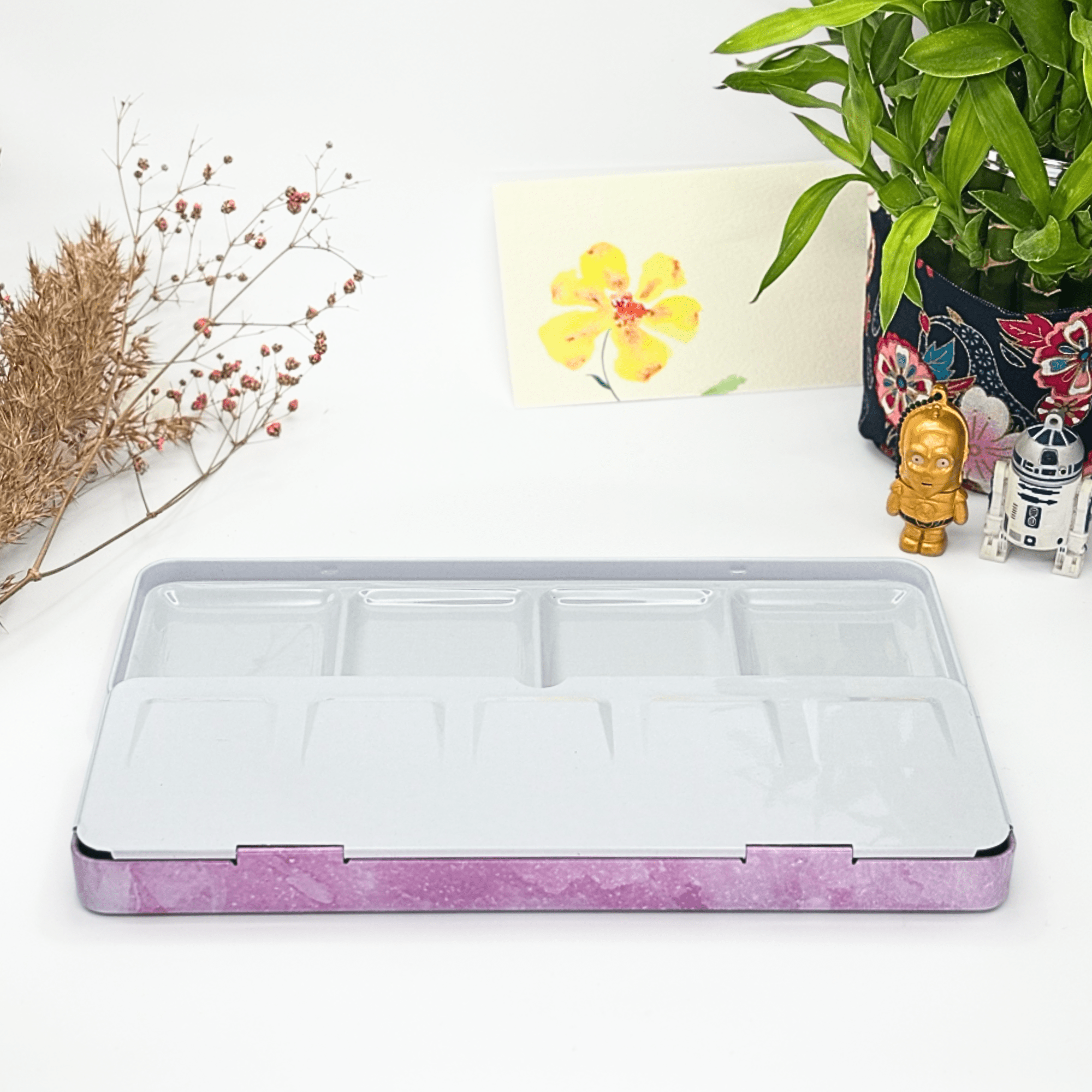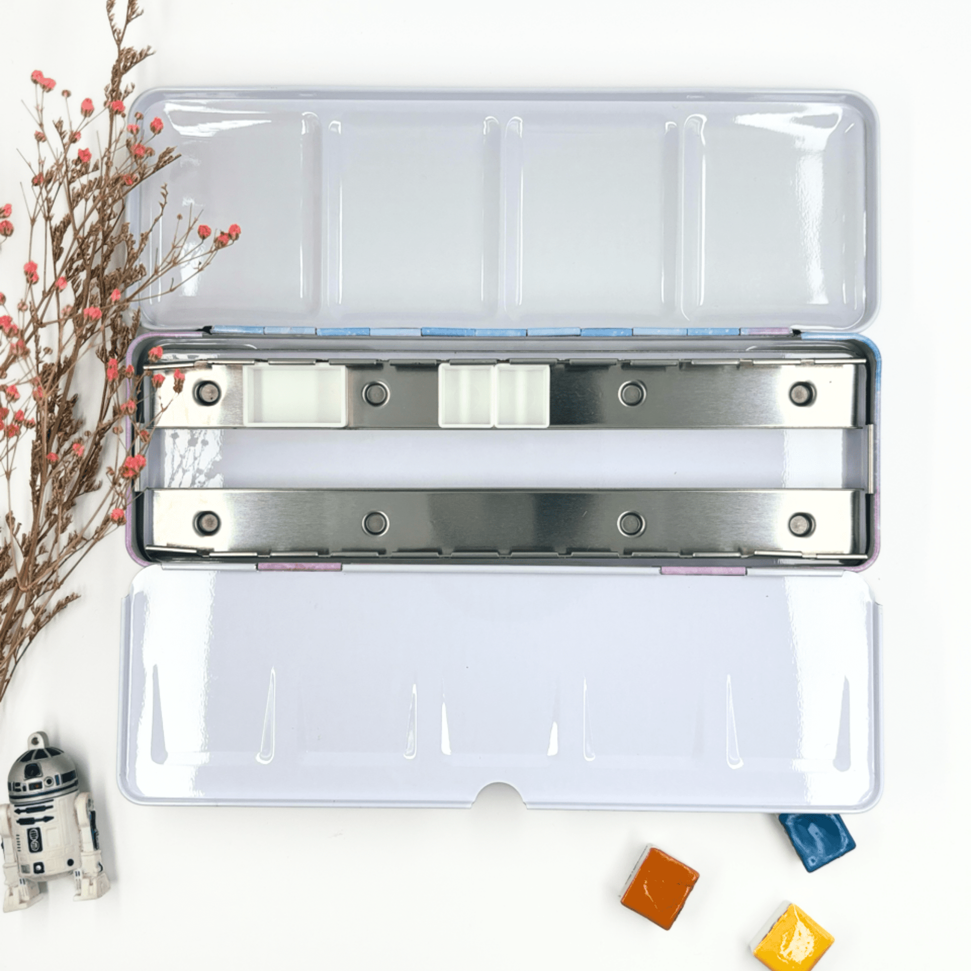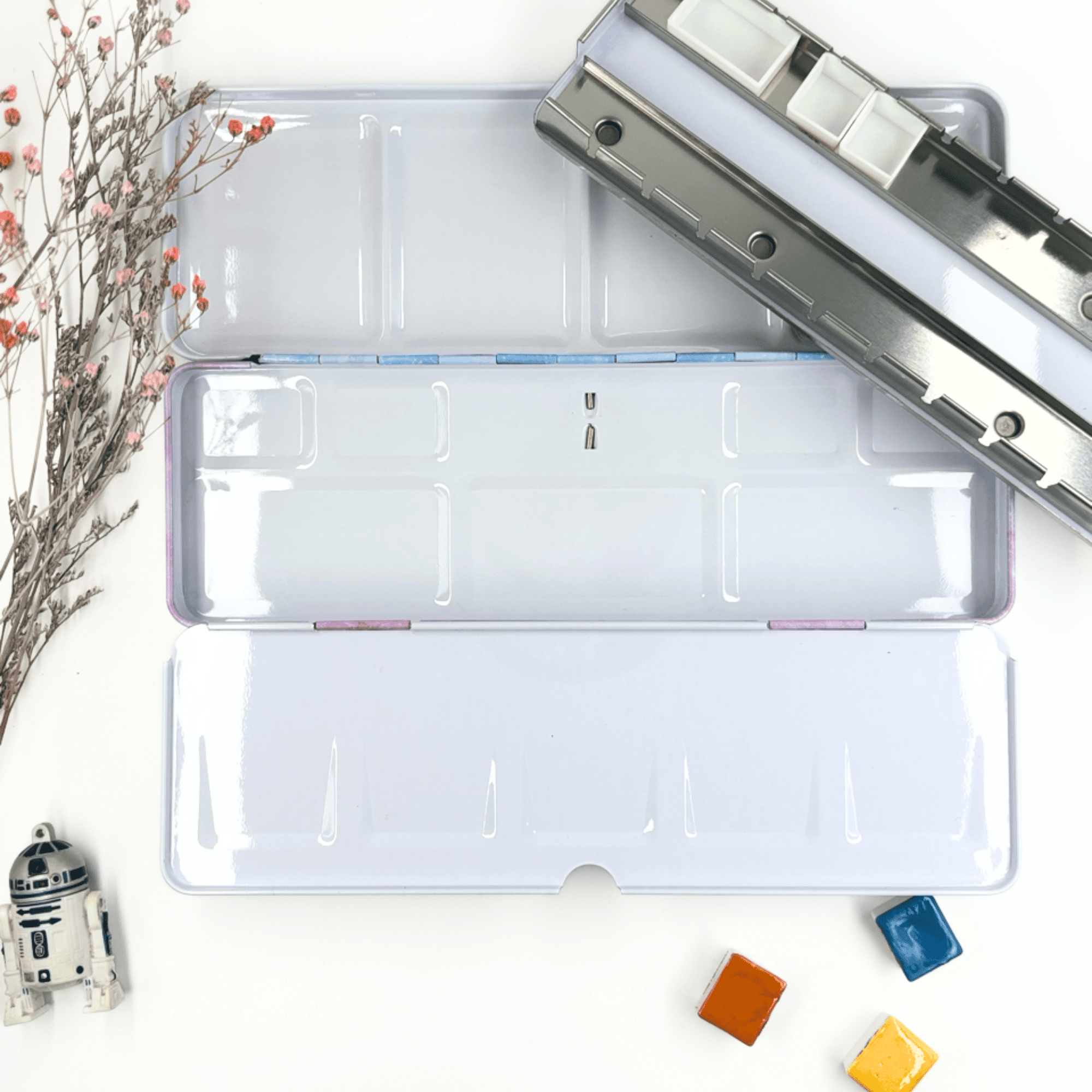 Personnalisez votre palette et rangez vos couleurs avec cette boîte d’aquarelle en métal émaillé.