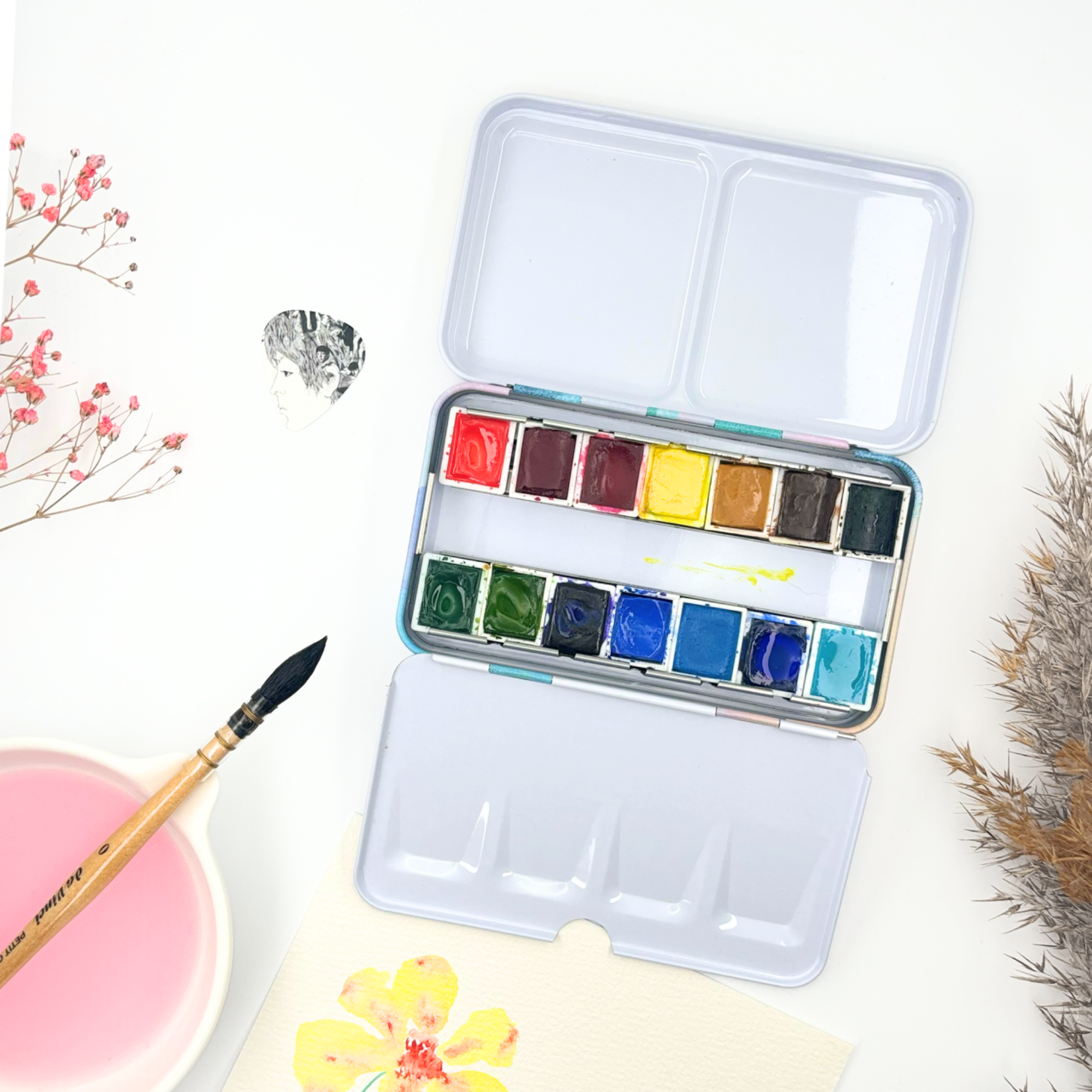 ✮ Boîte d’aquarelle en métal 12 couleurs – « Day Dreaming » ✮