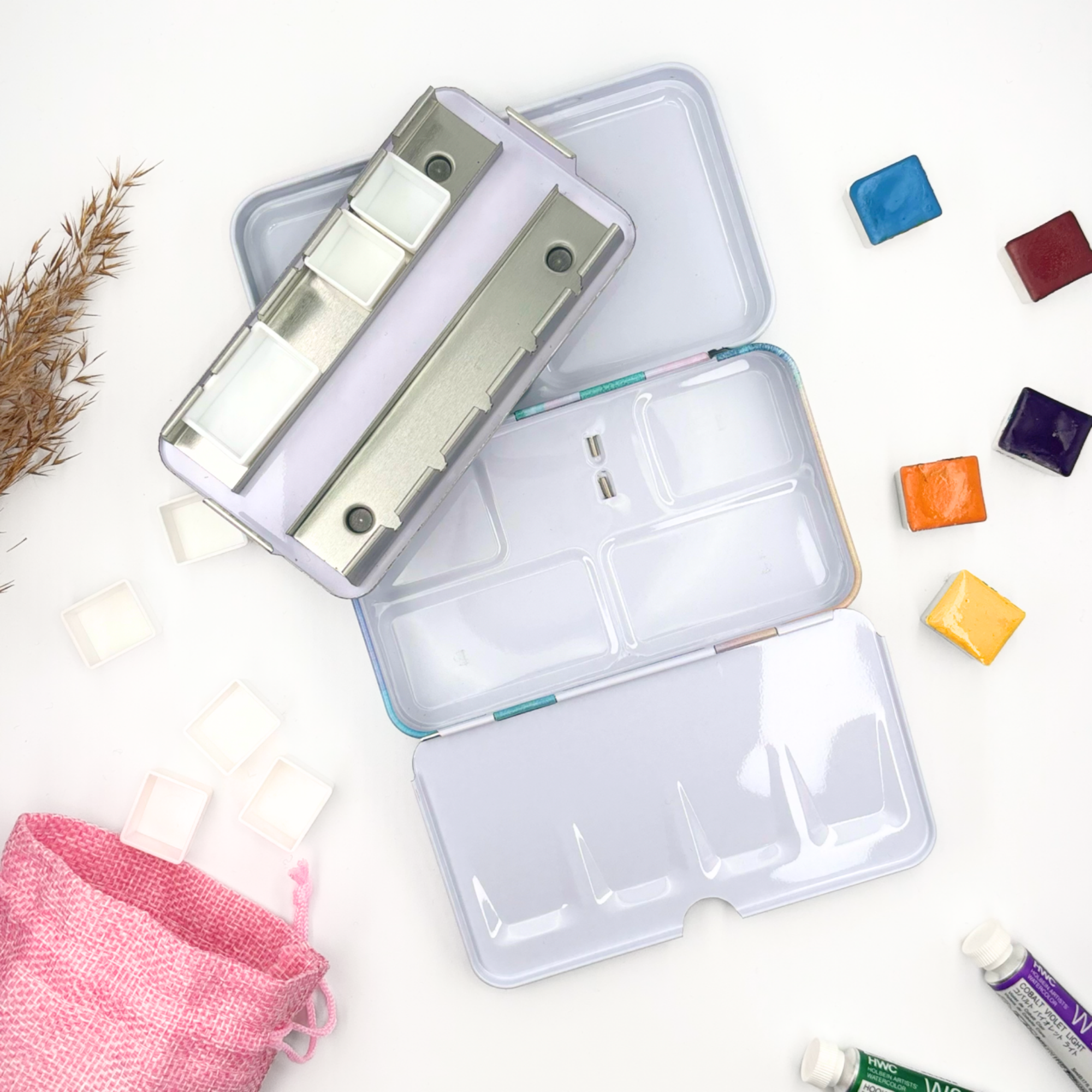 Personnalisez votre palette et rangez vos couleurs avec cette boîte d’aquarelle en métal émaillé.
