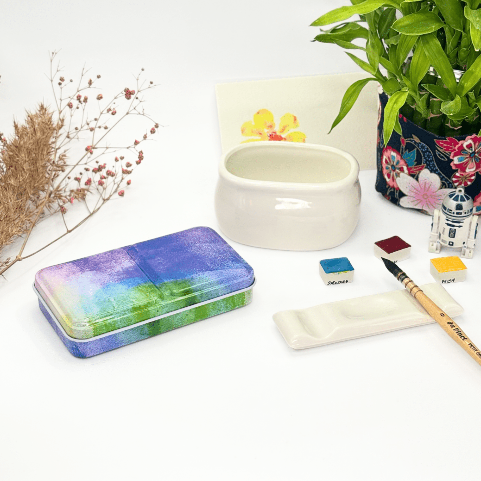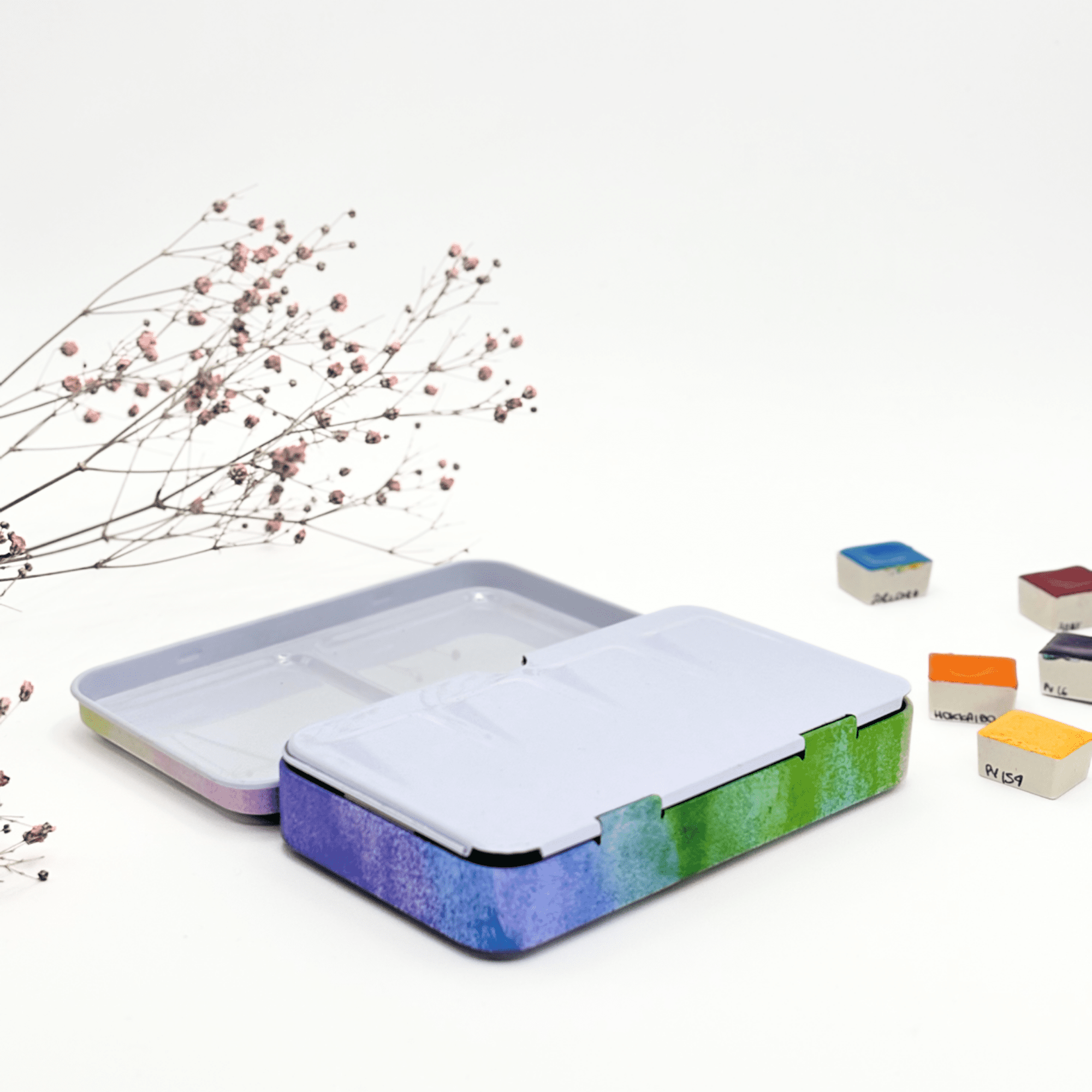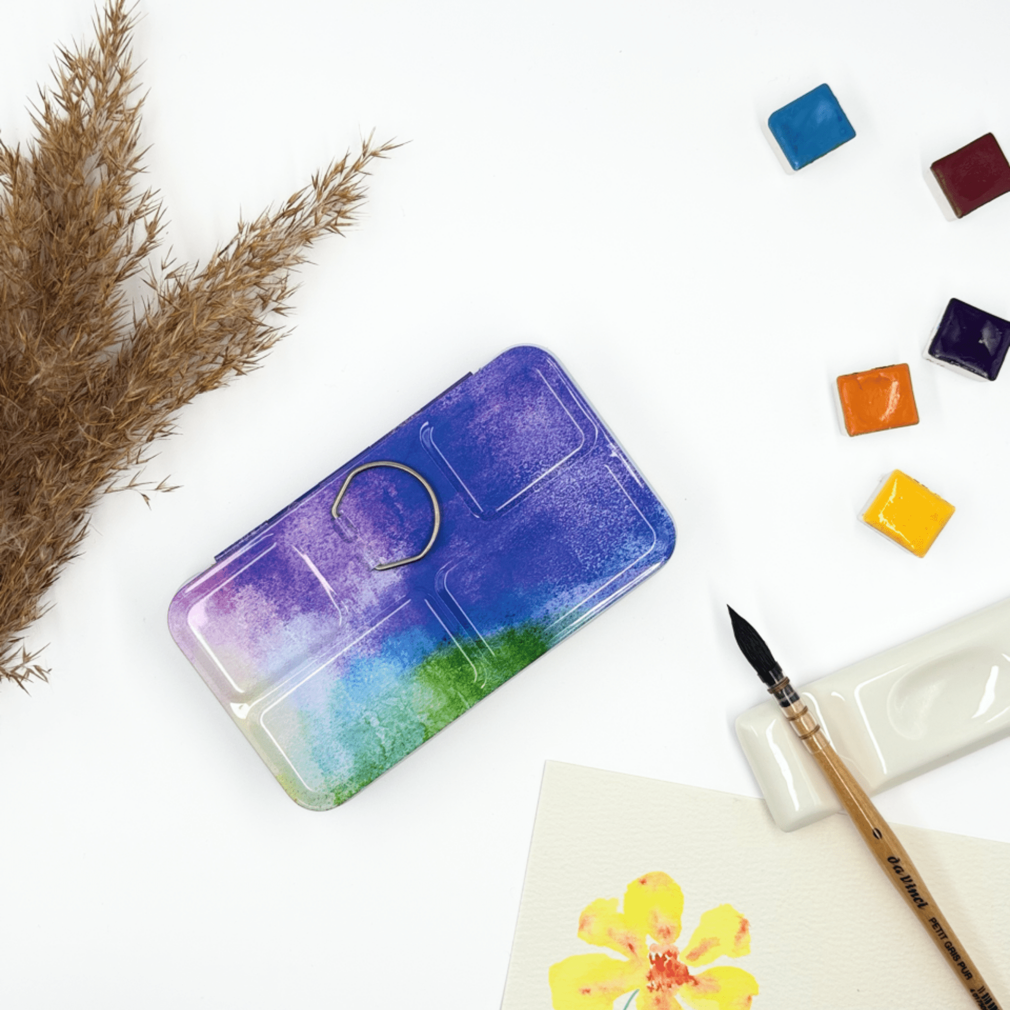 Personnalisez votre palette et rangez vos couleurs avec cette boîte d’aquarelle en métal émaillé.