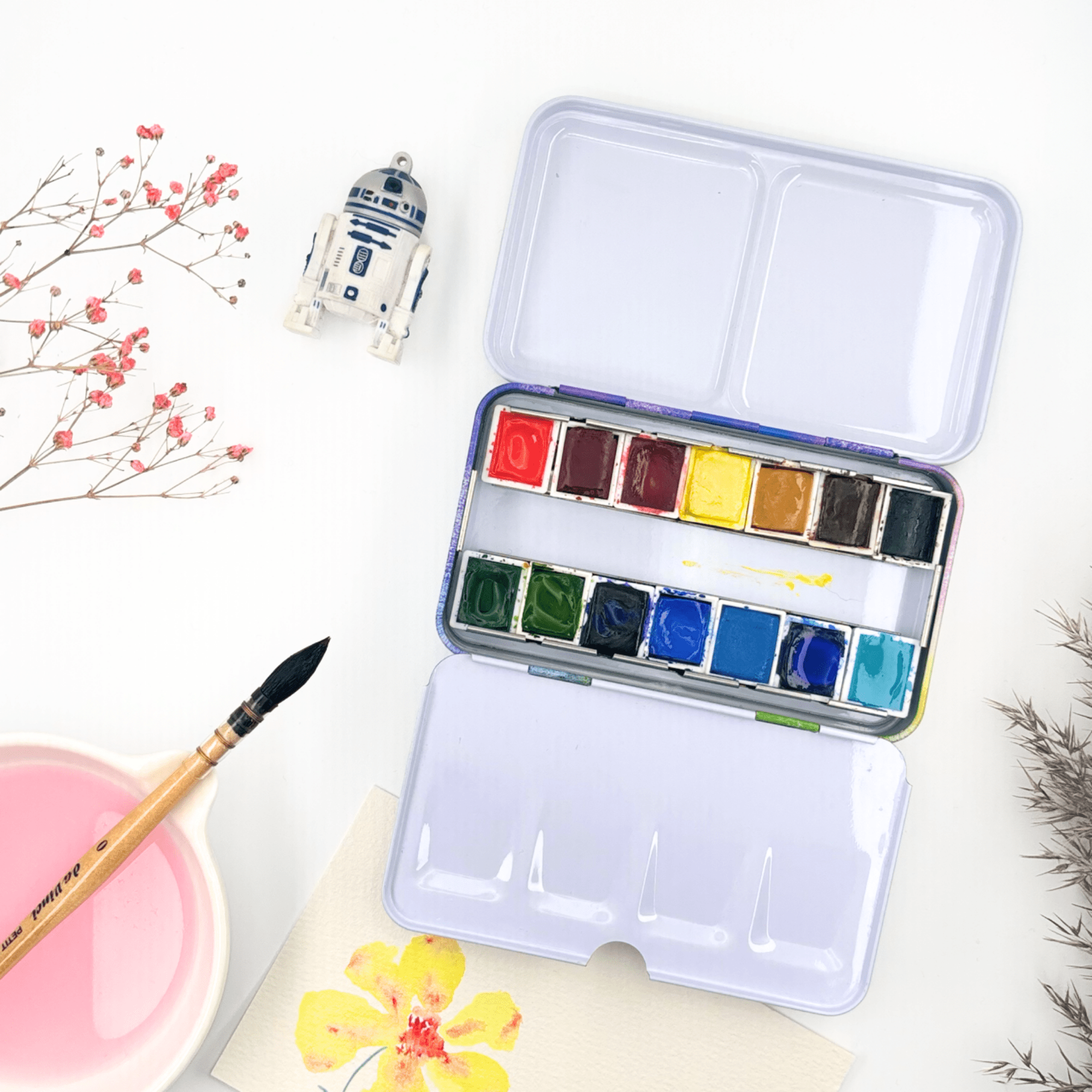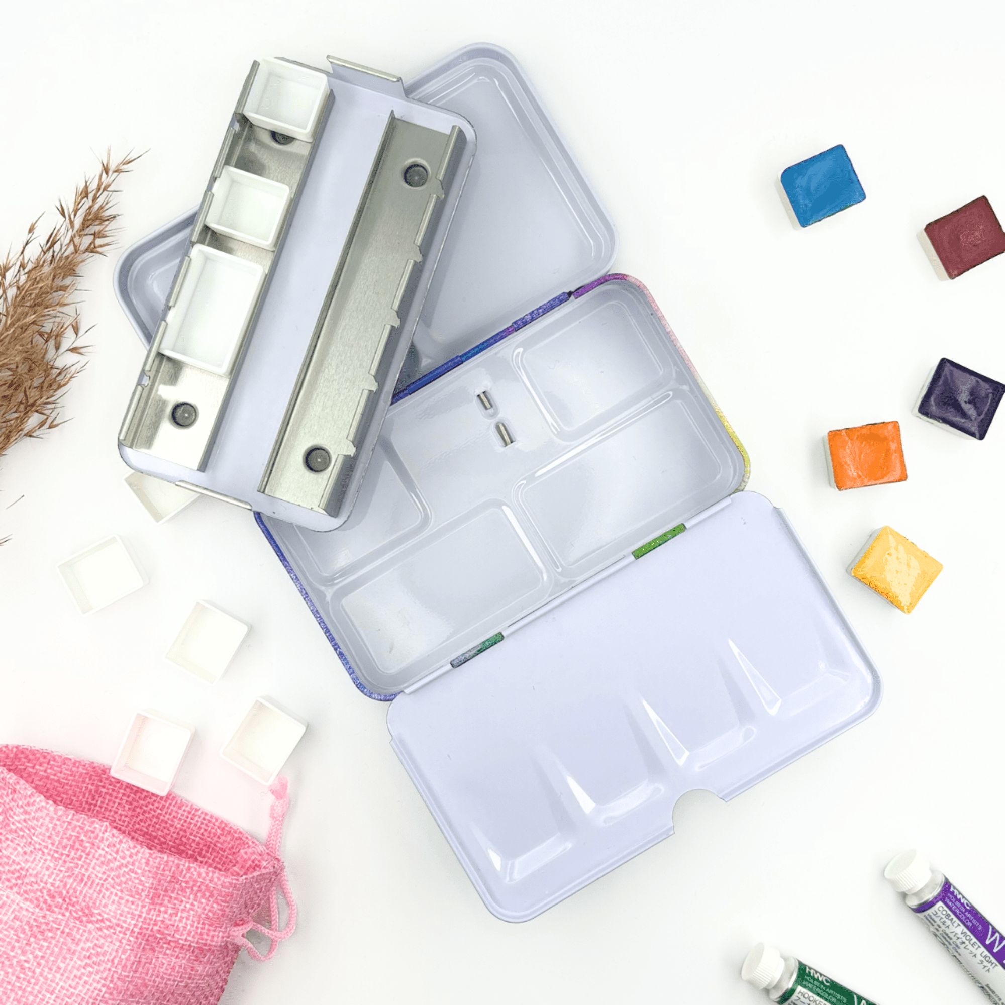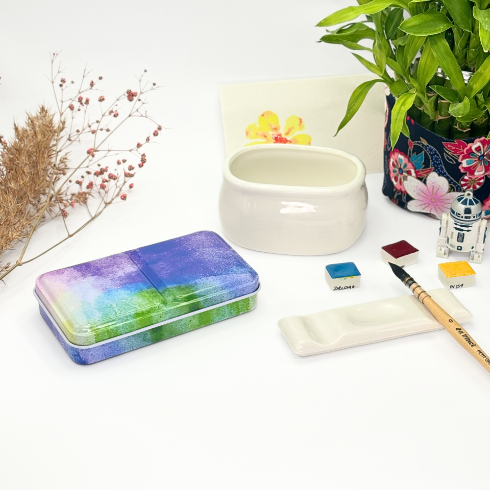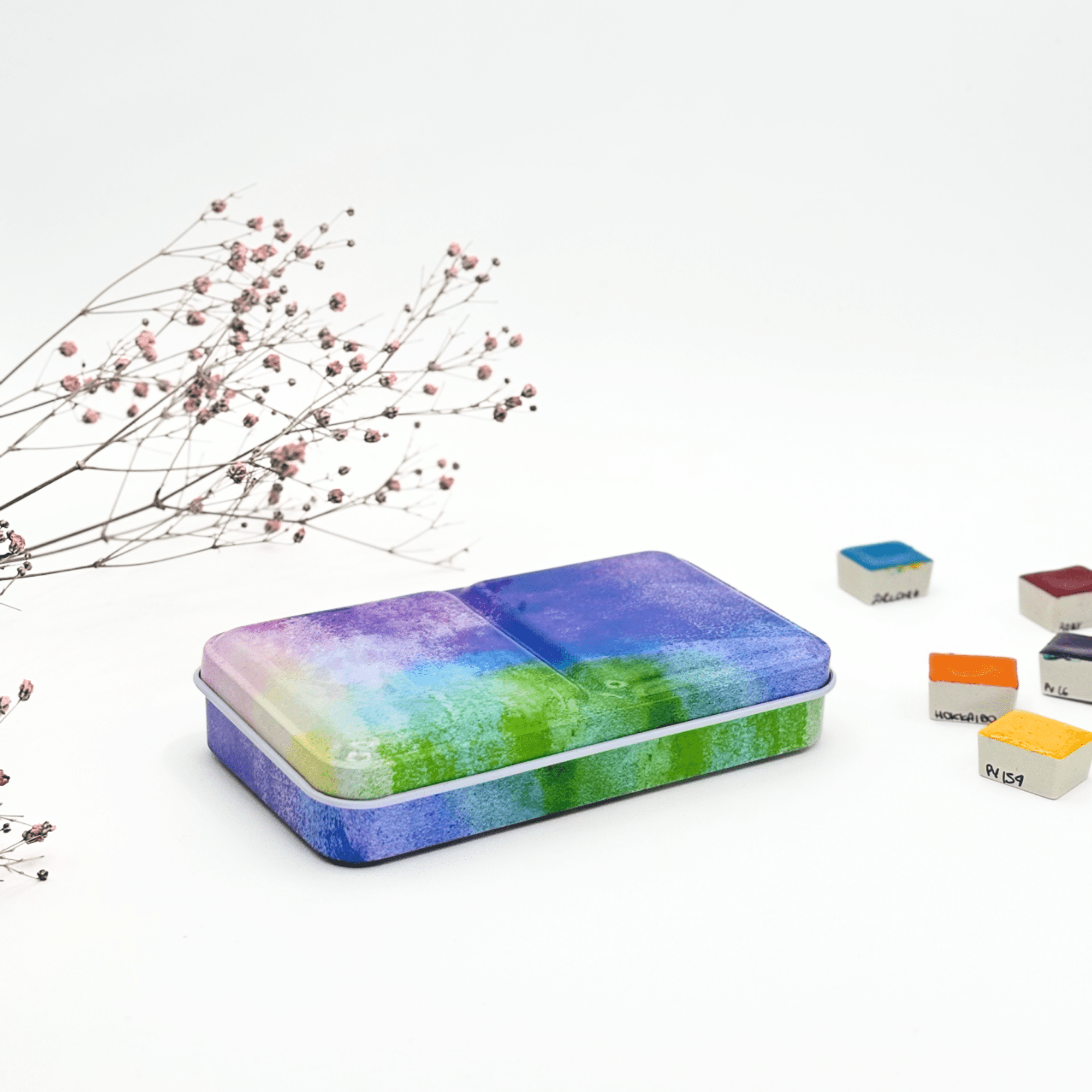 Personnalisez votre palette et rangez vos couleurs avec cette boîte d’aquarelle en métal émaillé.
