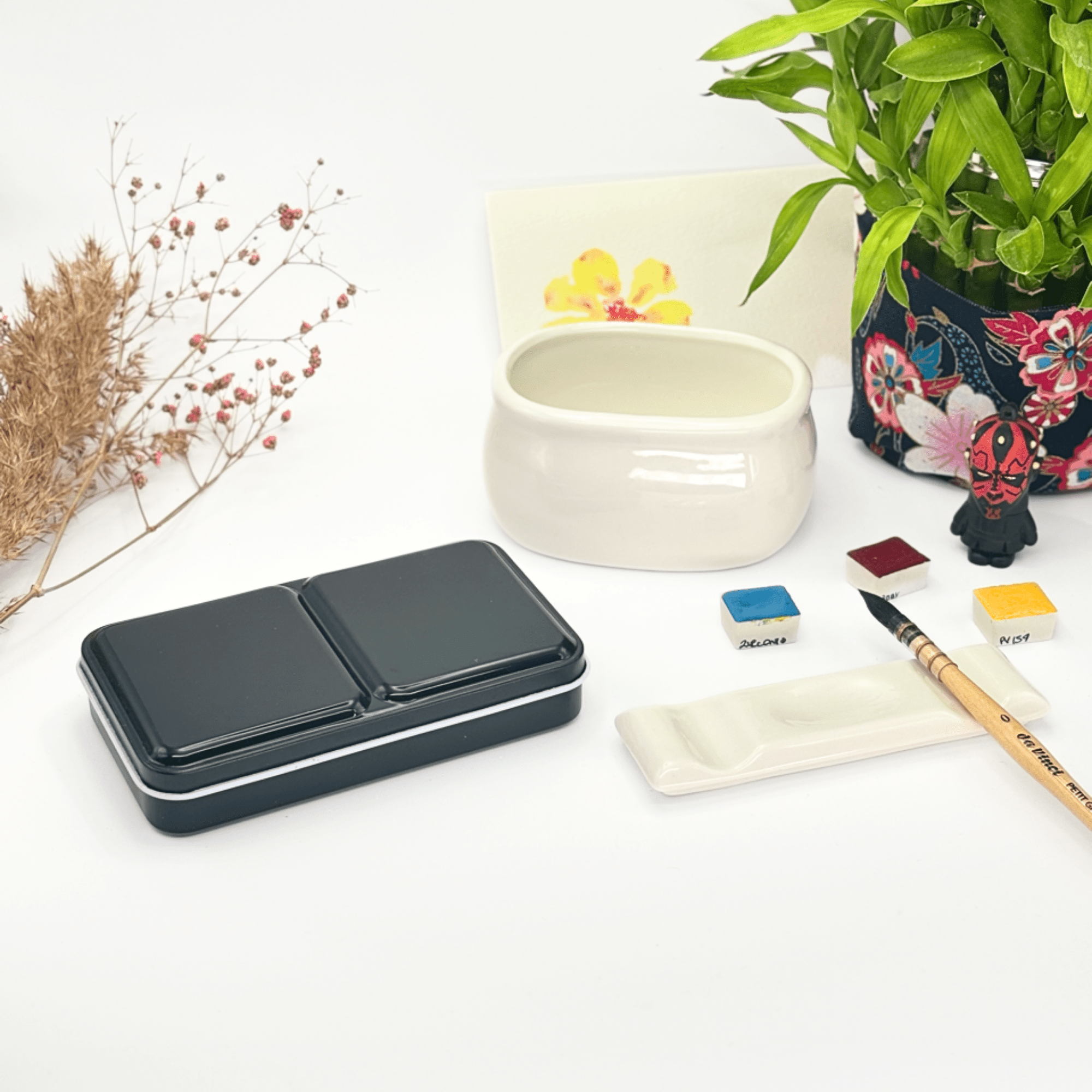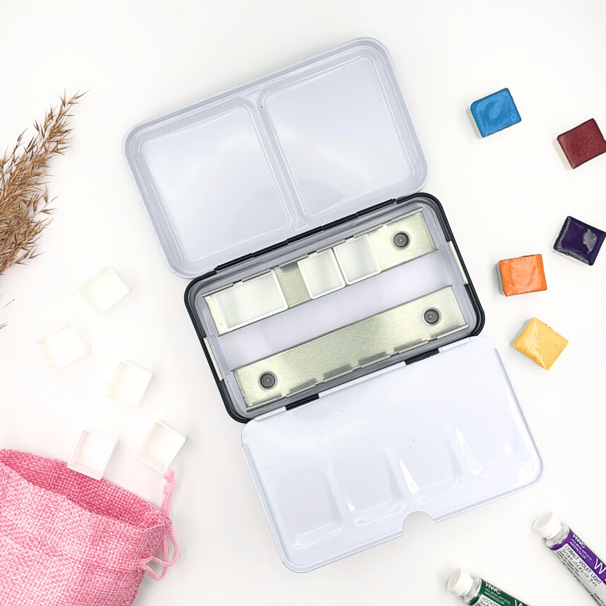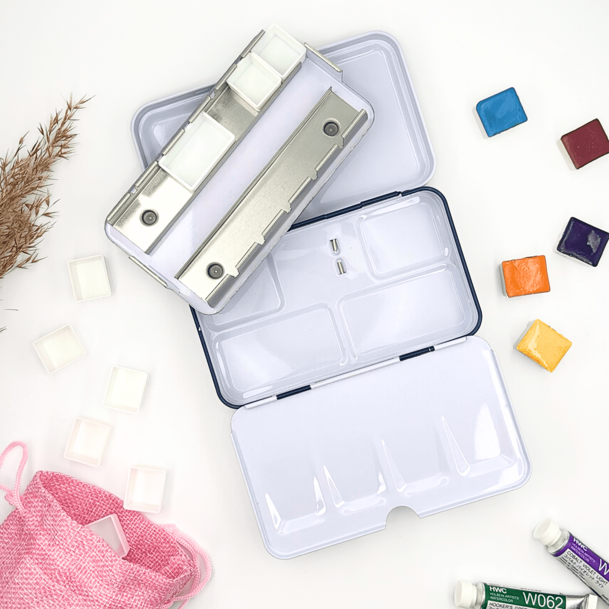 Personnalisez votre palette et rangez vos couleurs avec cette boîte d’aquarelle en métal émaillé.