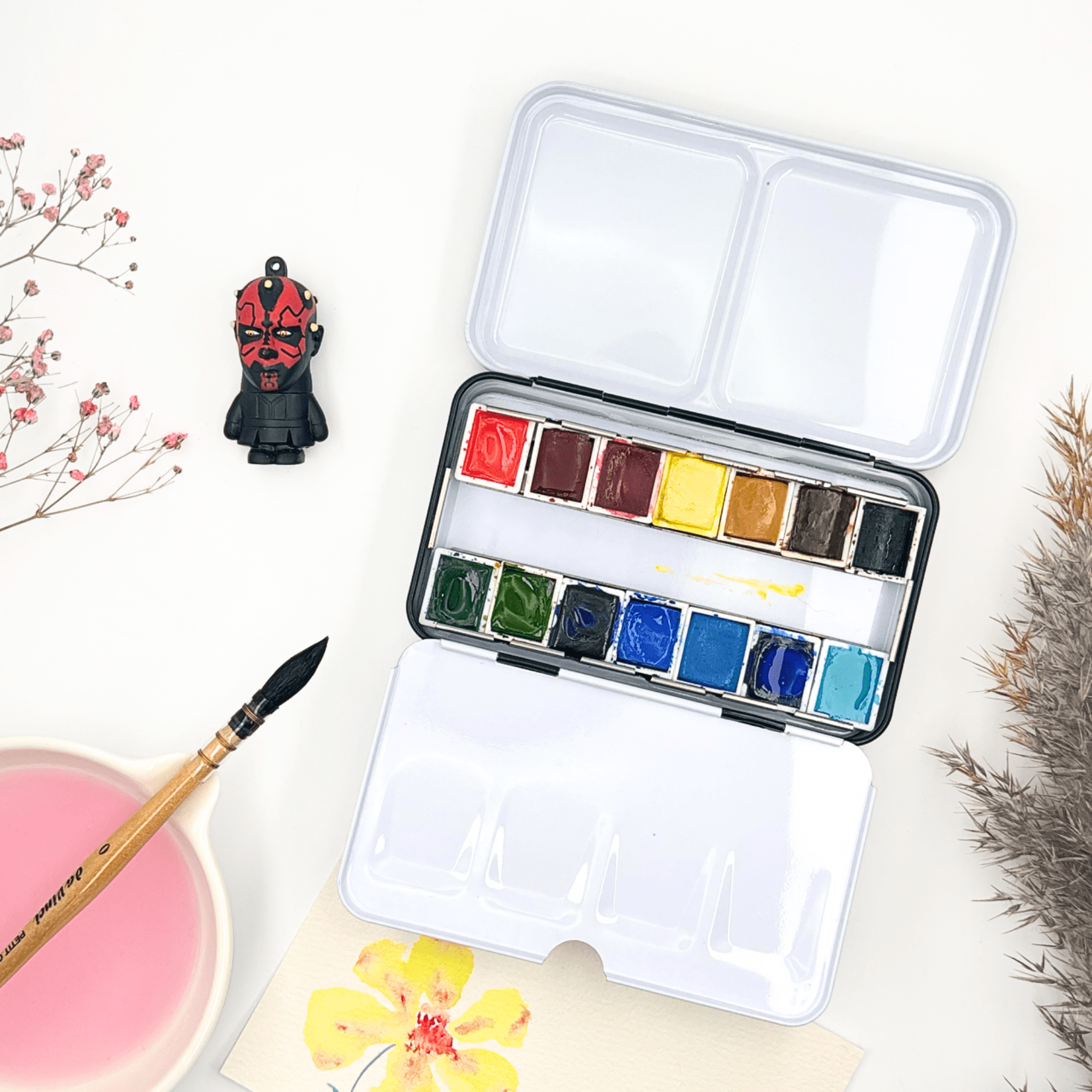 ✮Boîte d’aquarelle en métal 12 couleurs – « Empire Black » ✮