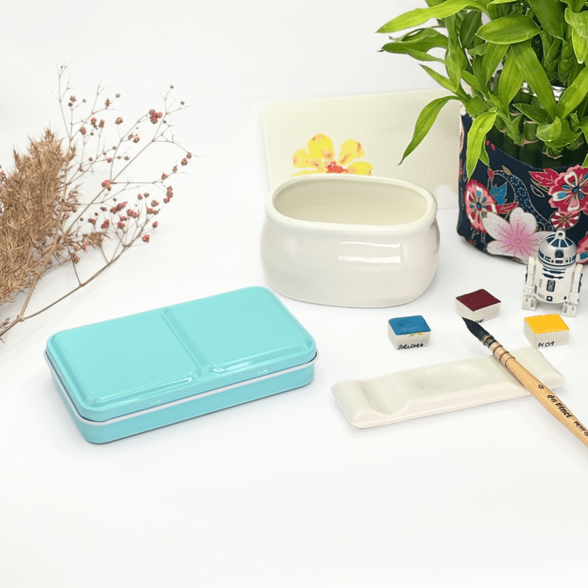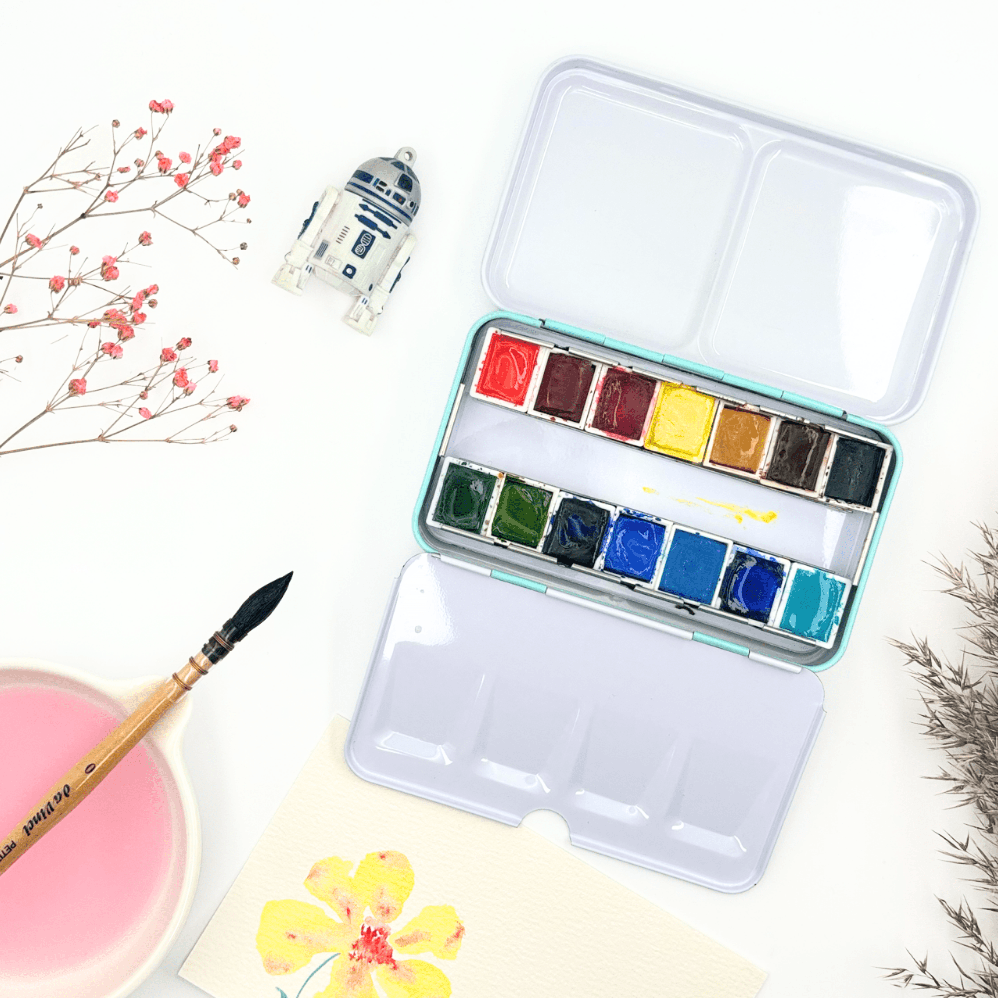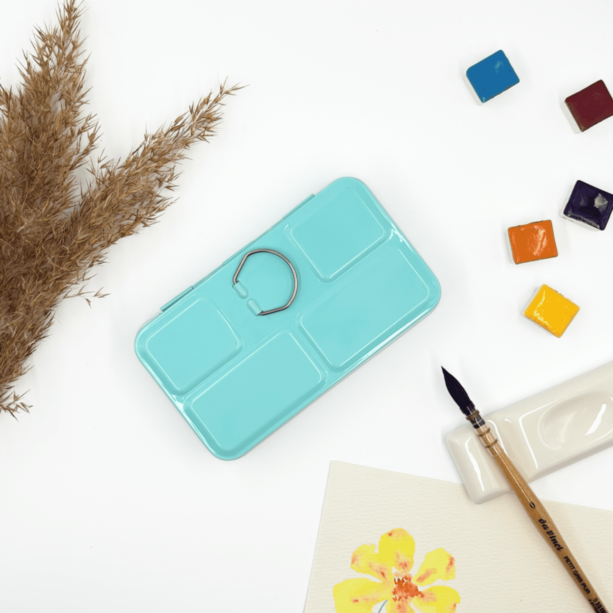 Personnalisez votre palette et rangez vos couleurs avec cette boîte d’aquarelle en métal émaillé.