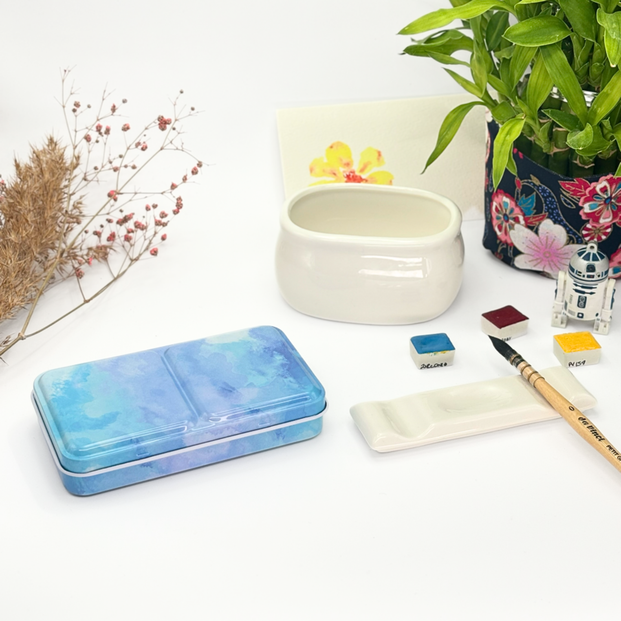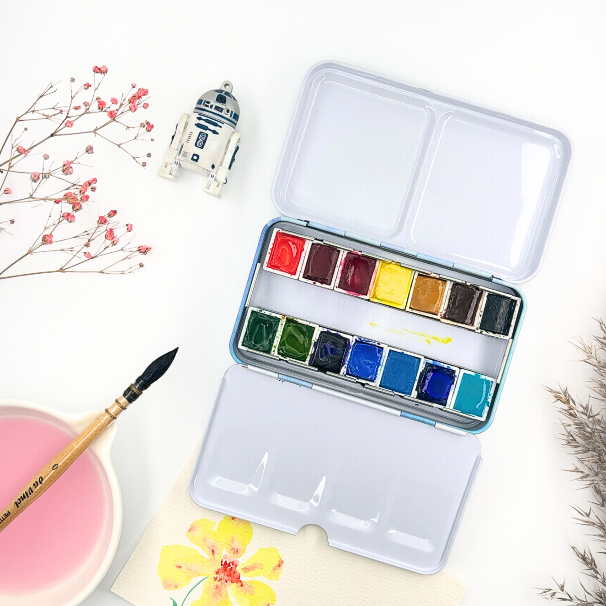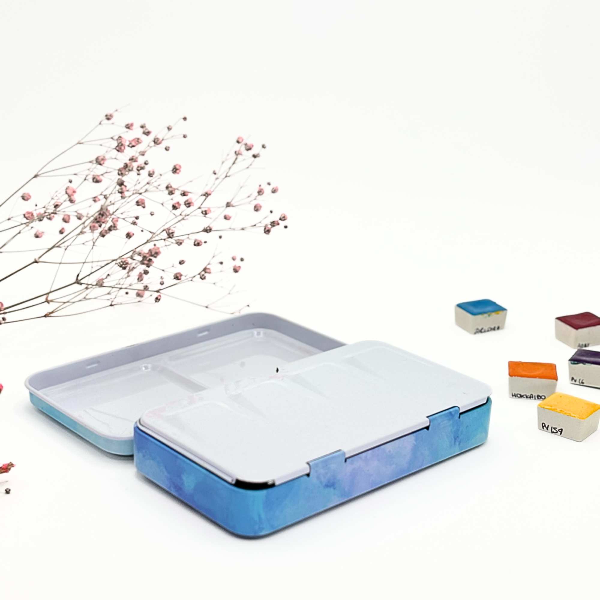 Personnalisez votre palette et rangez vos couleurs avec cette boîte d’aquarelle en métal émaillé.