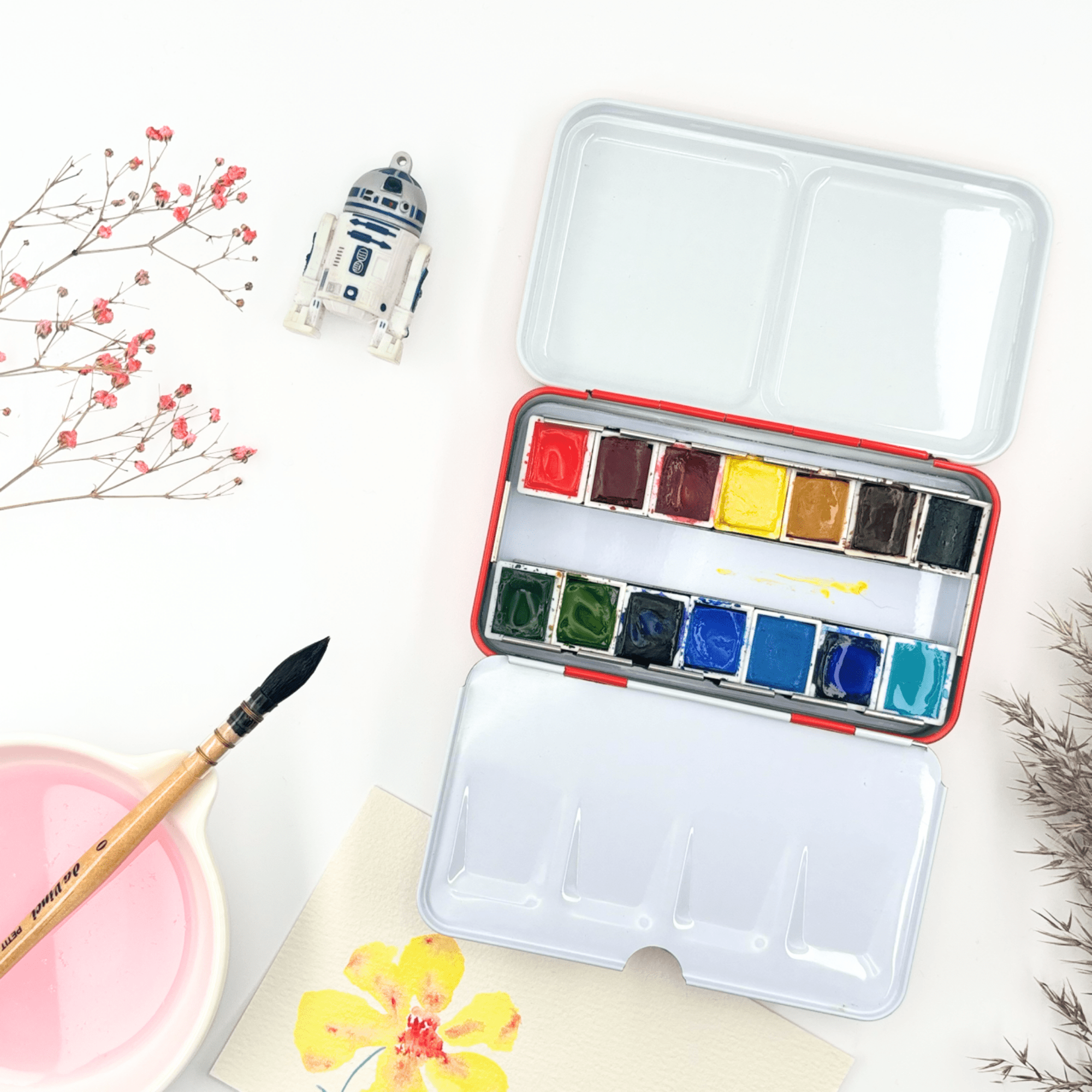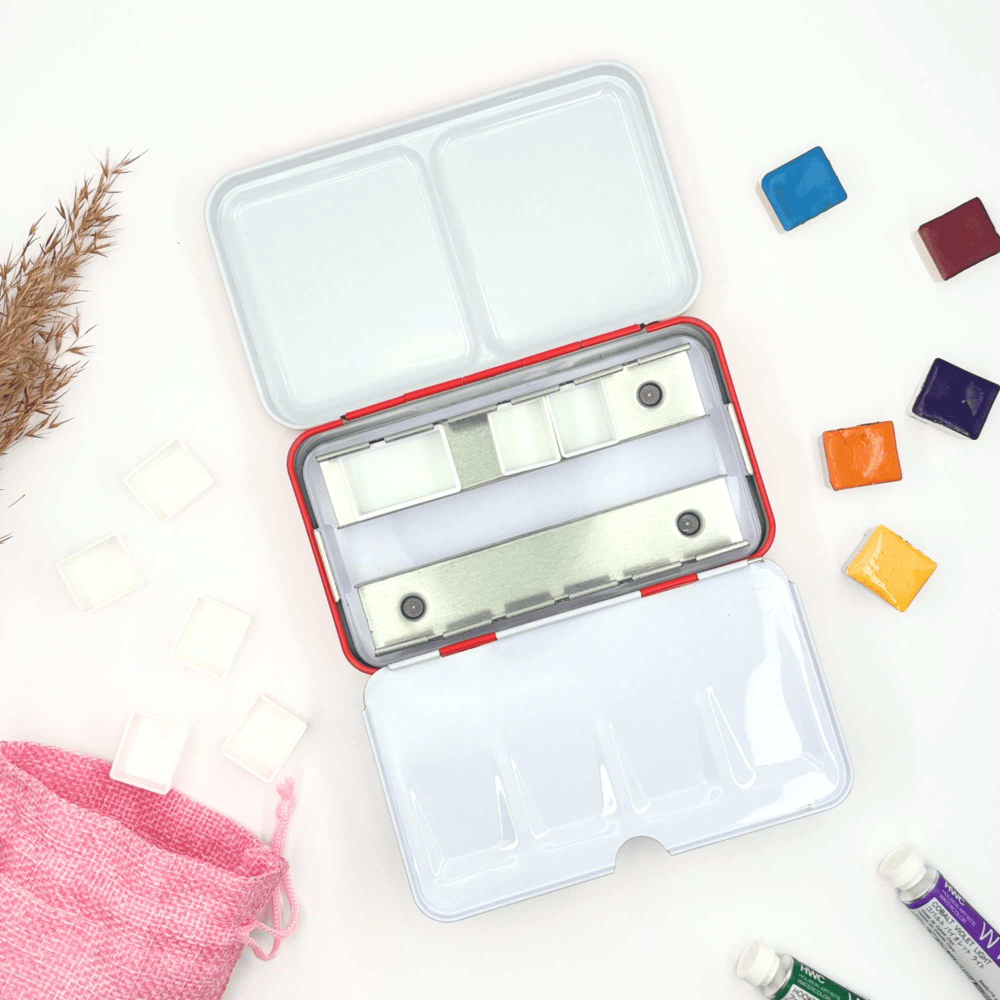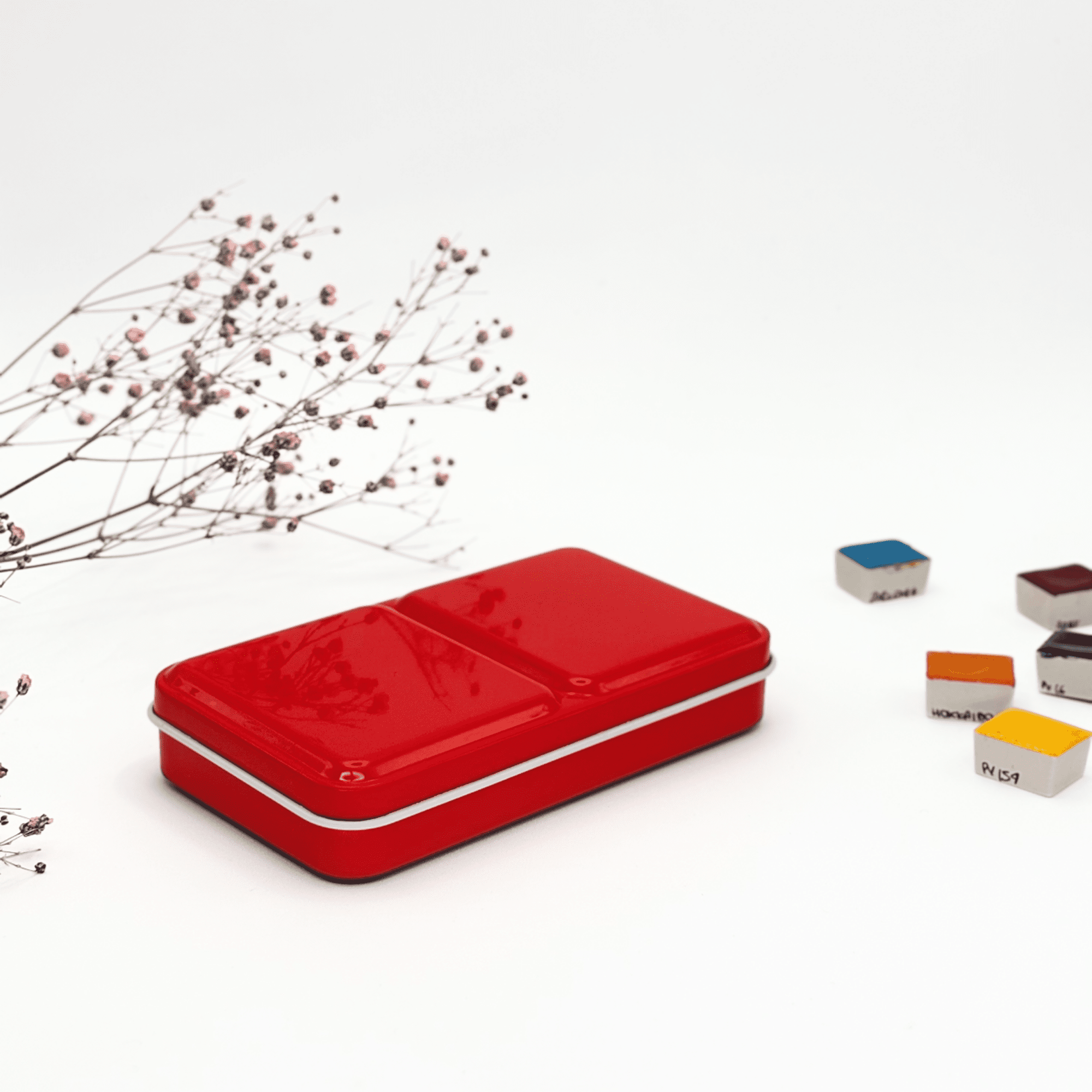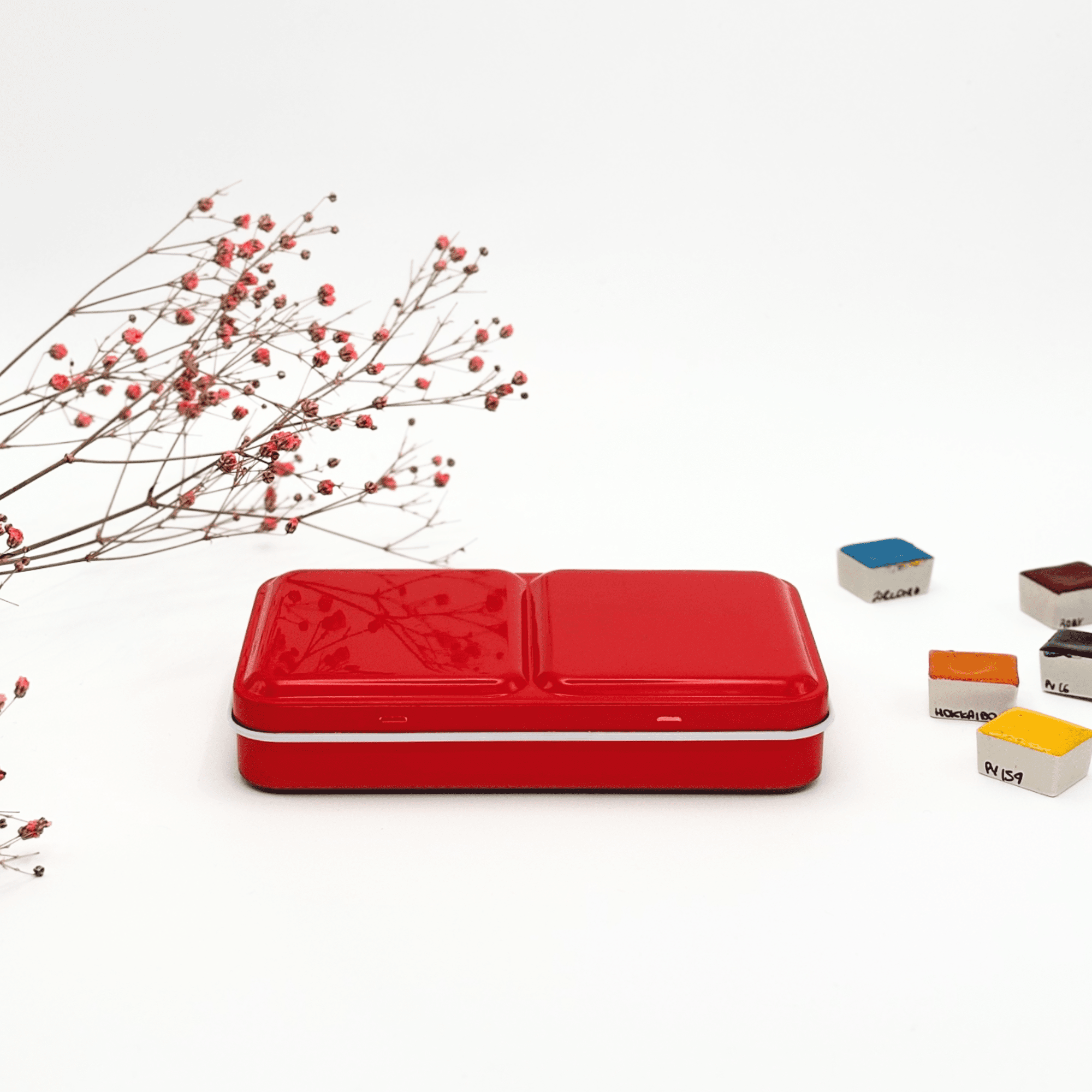 ✮Boîte d’aquarelle en métal 12 couleurs – « Passion Scarlett » ✮