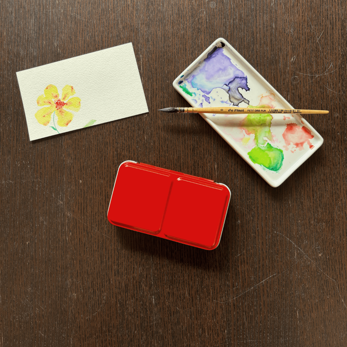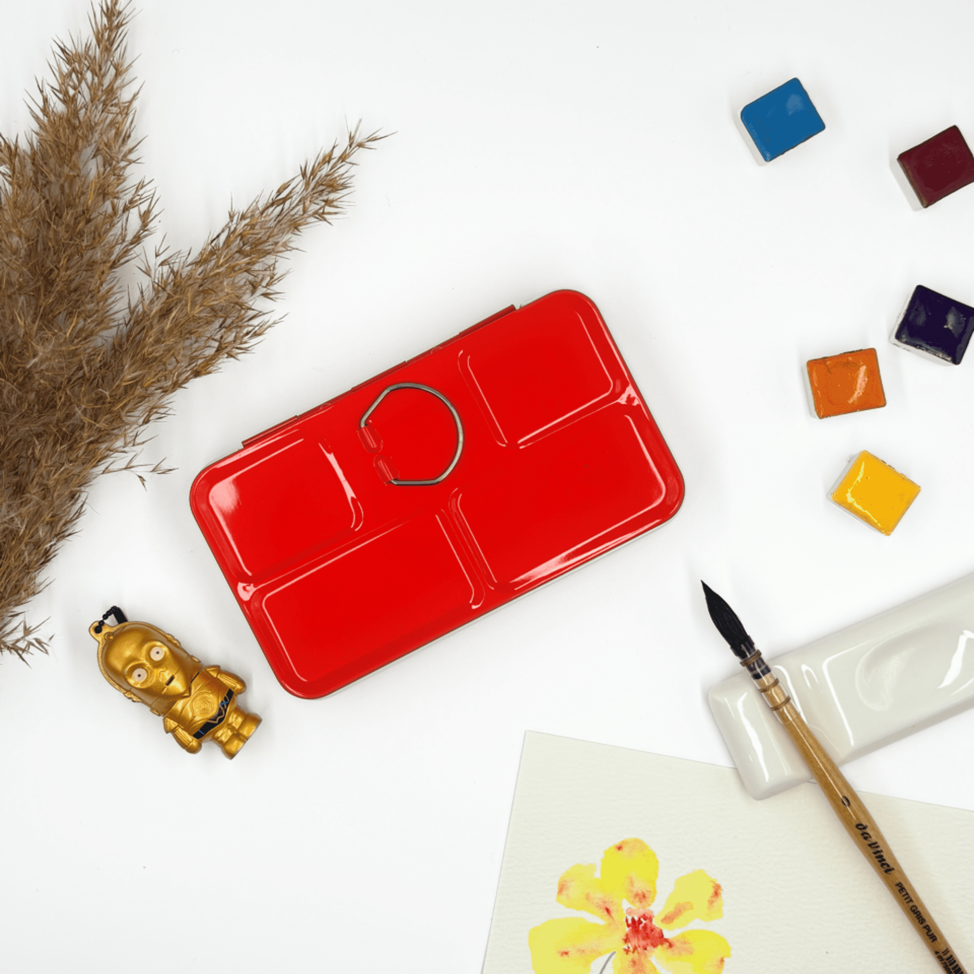 Personnalisez votre palette et rangez vos couleurs avec cette boîte d’aquarelle en métal émaillé.