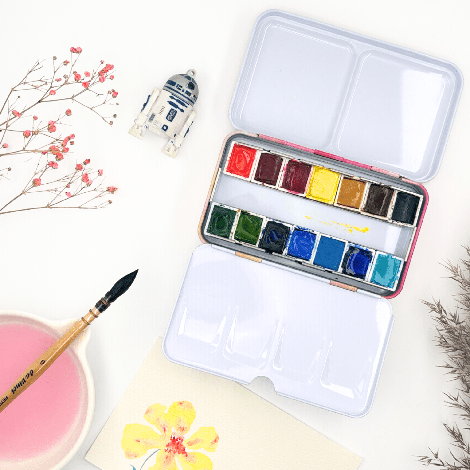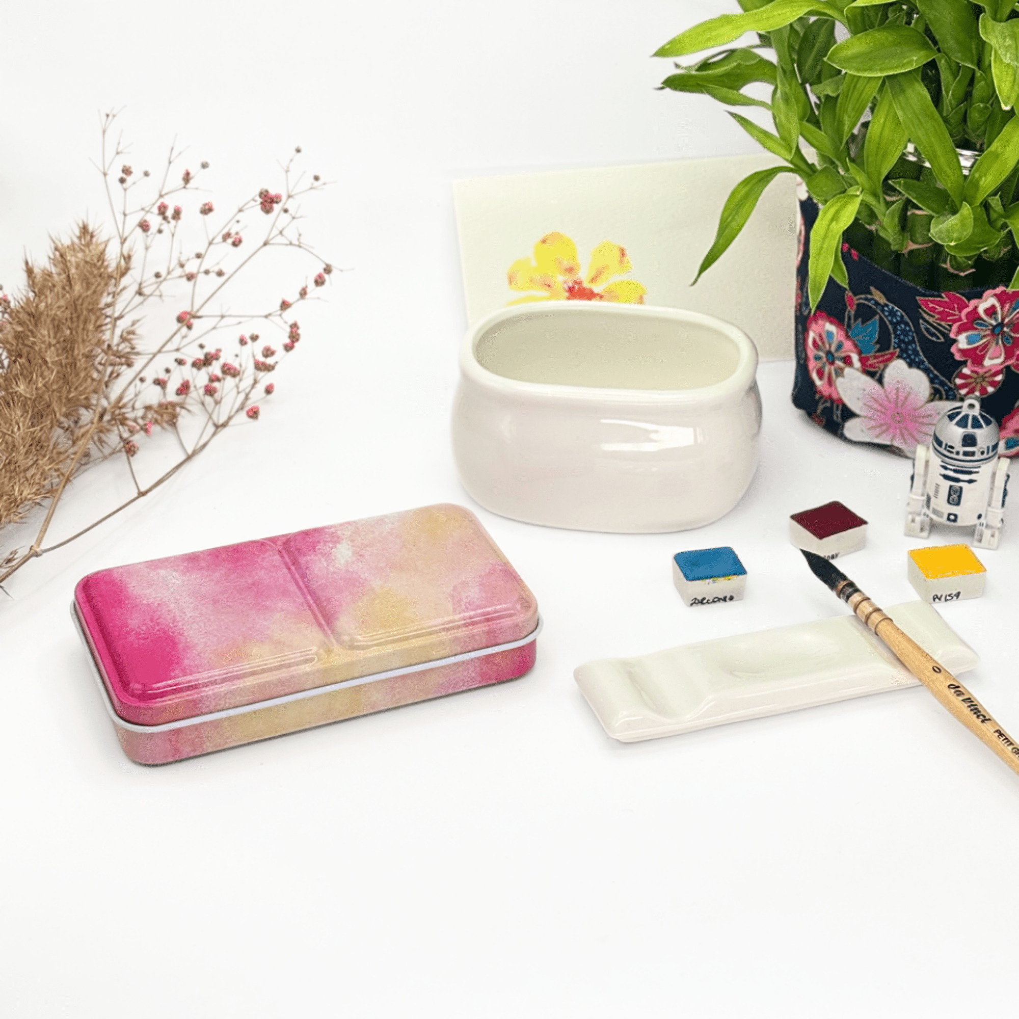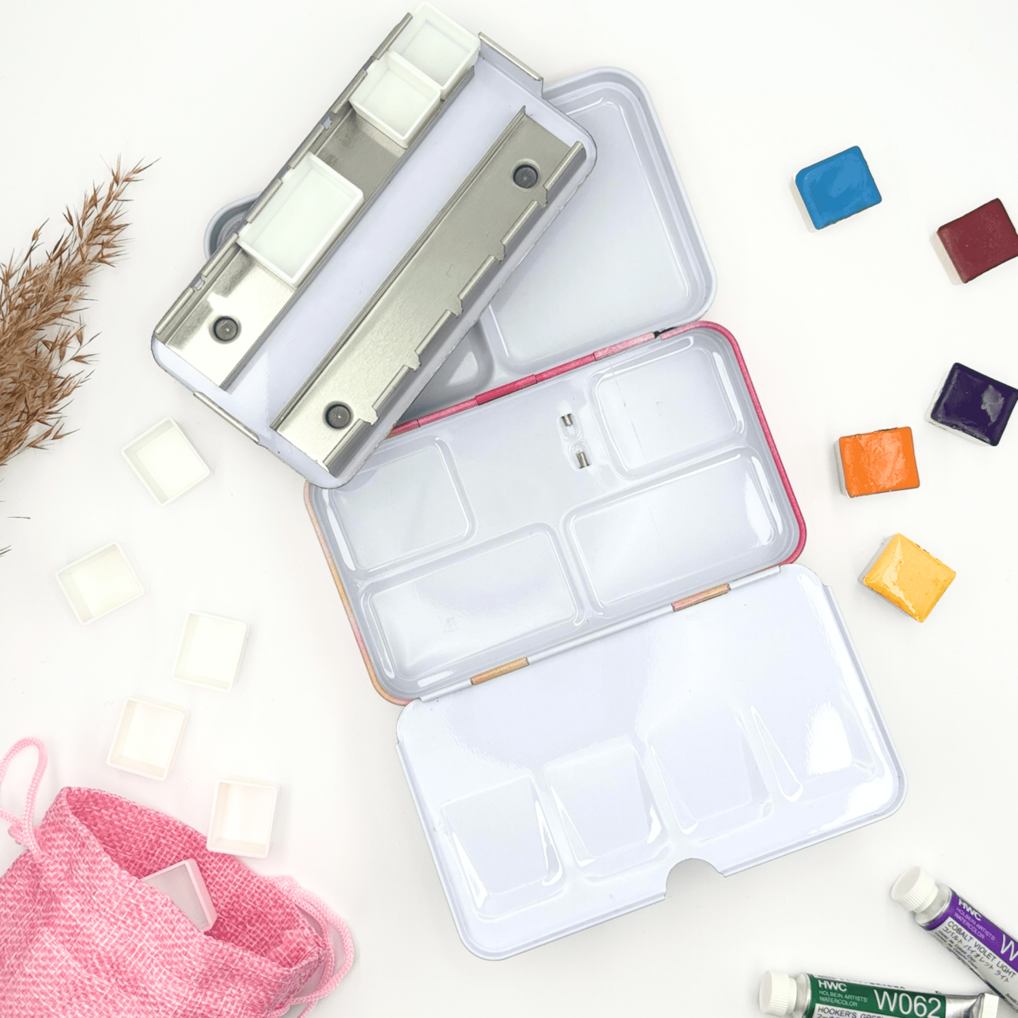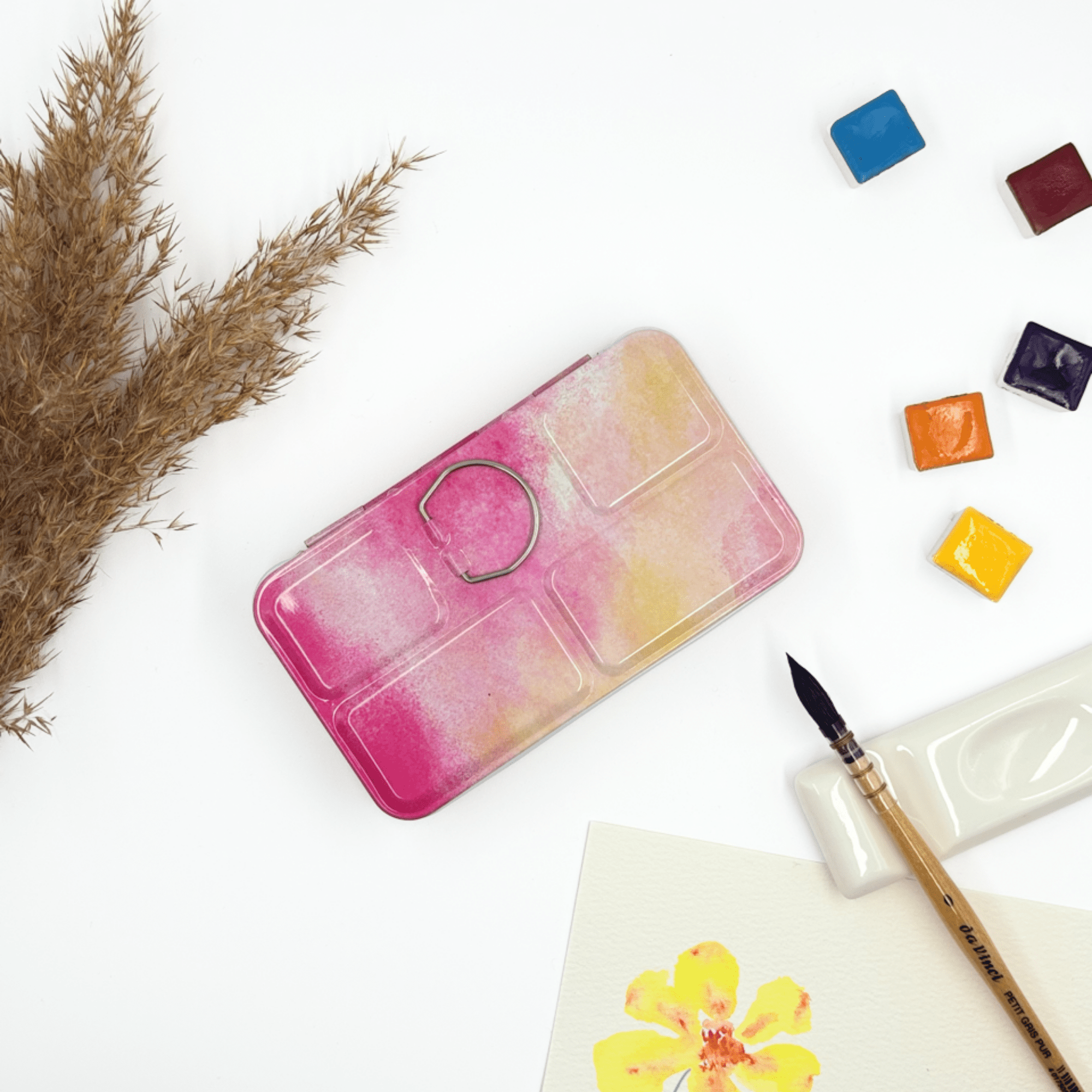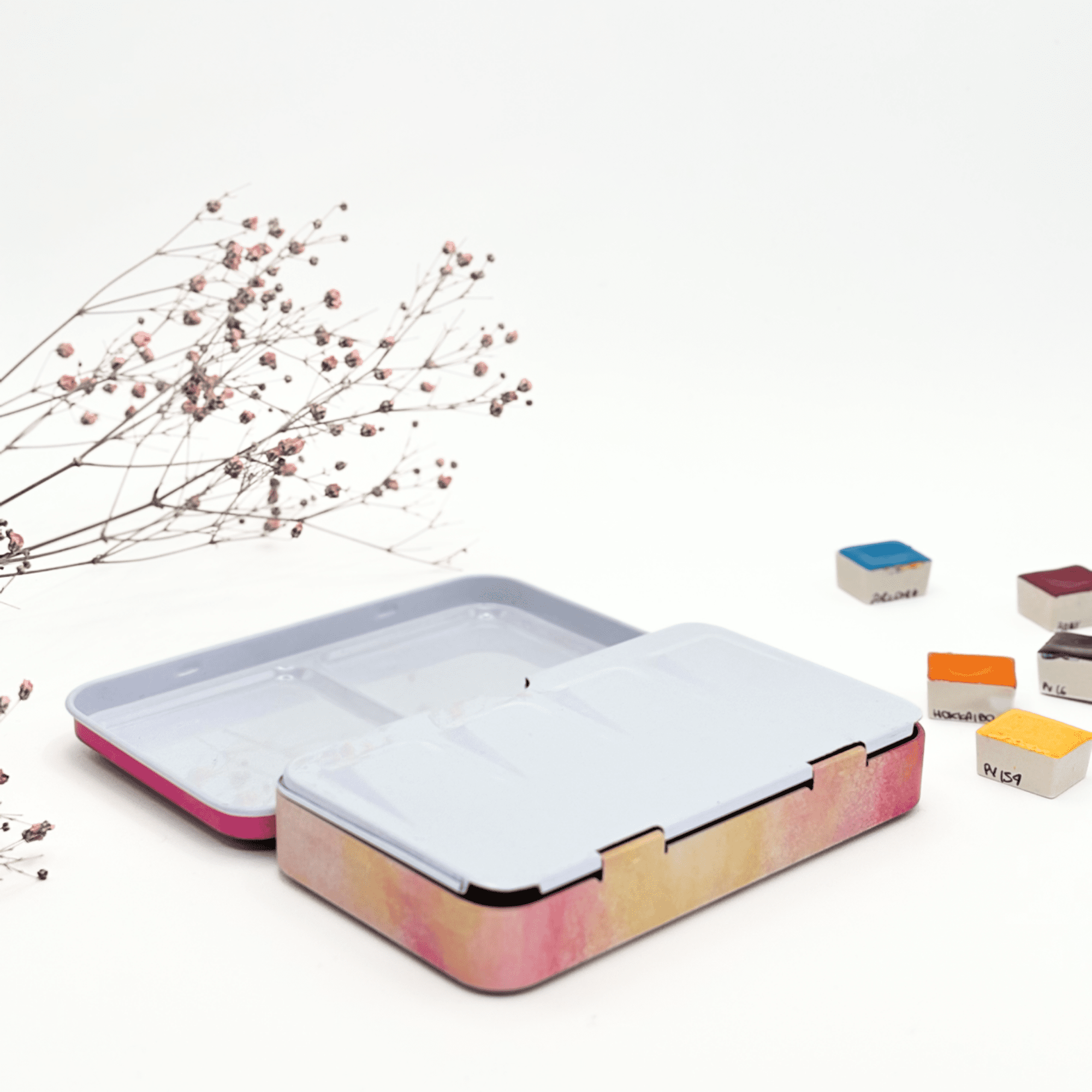 Personnalisez votre palette et rangez vos couleurs avec cette boîte d’aquarelle en métal émaillé.
