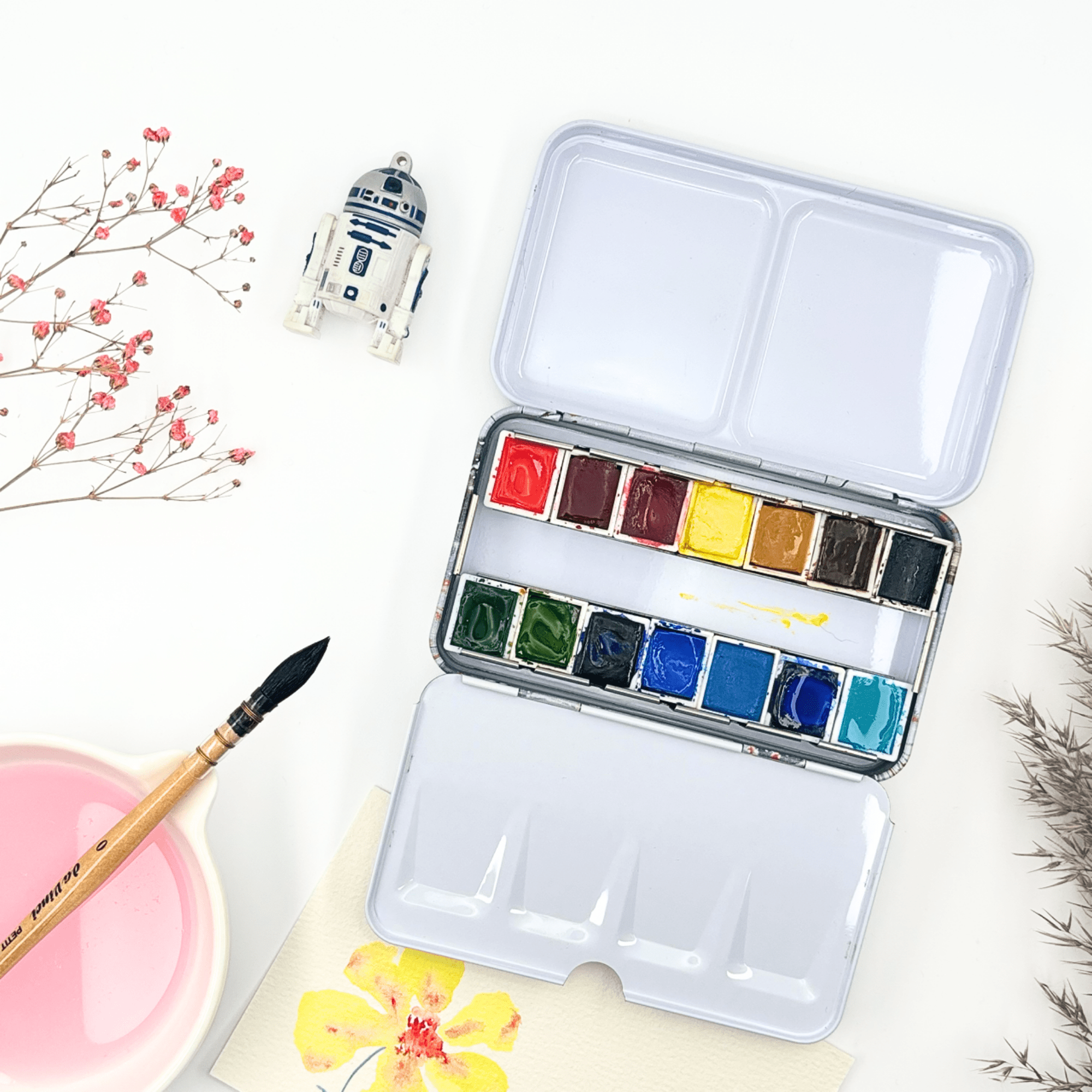 Personnalisez votre palette et rangez vos couleurs avec cette boîte d’aquarelle en métal émaillé.