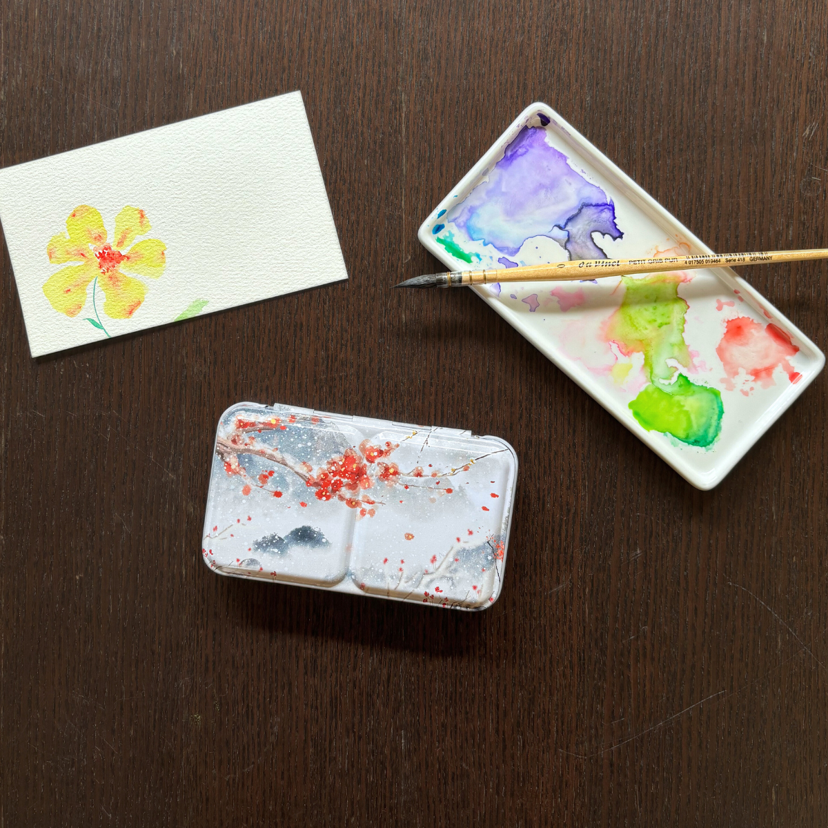 ✮ Boîte d’aquarelle en métal 12 couleurs – « Winter Plum » ✮