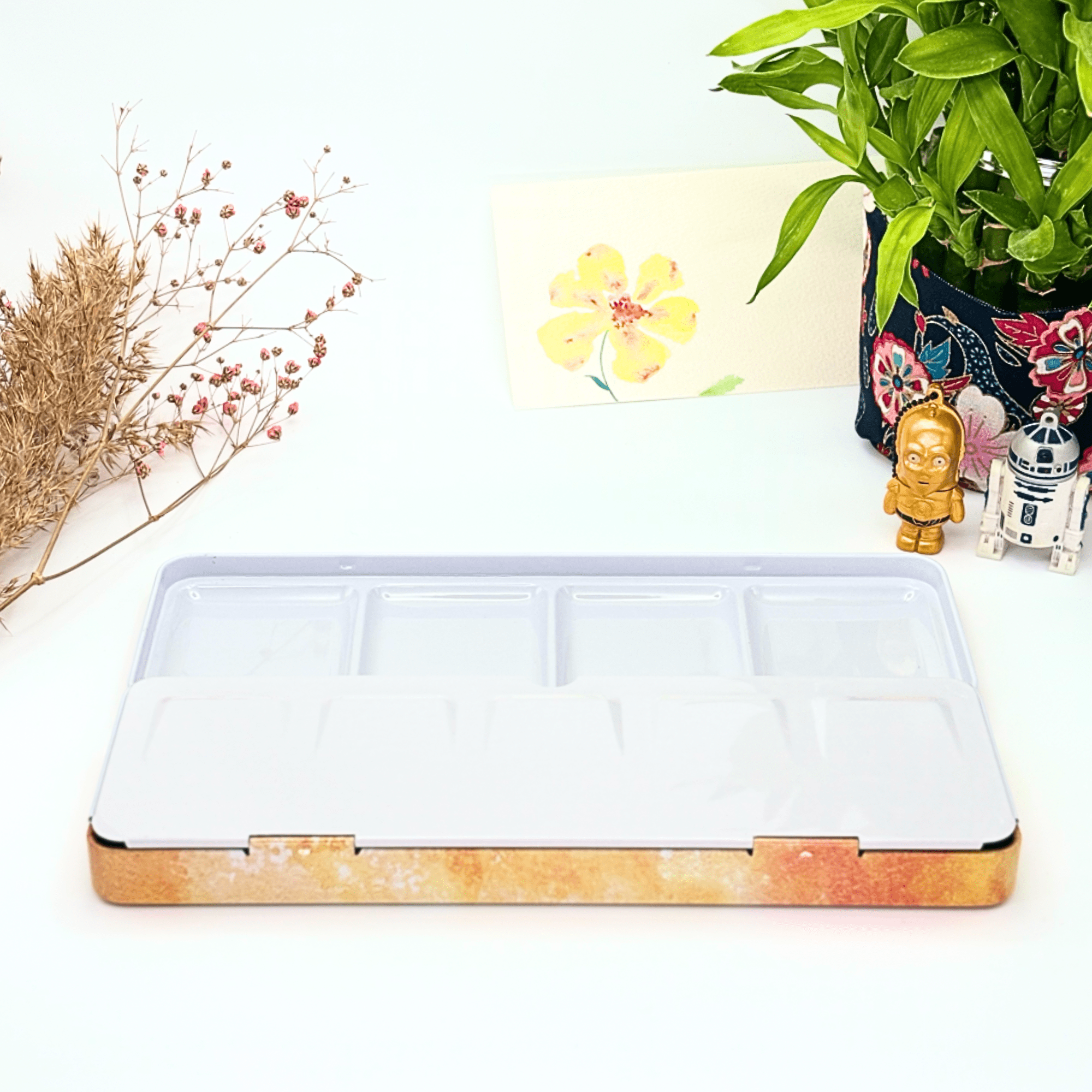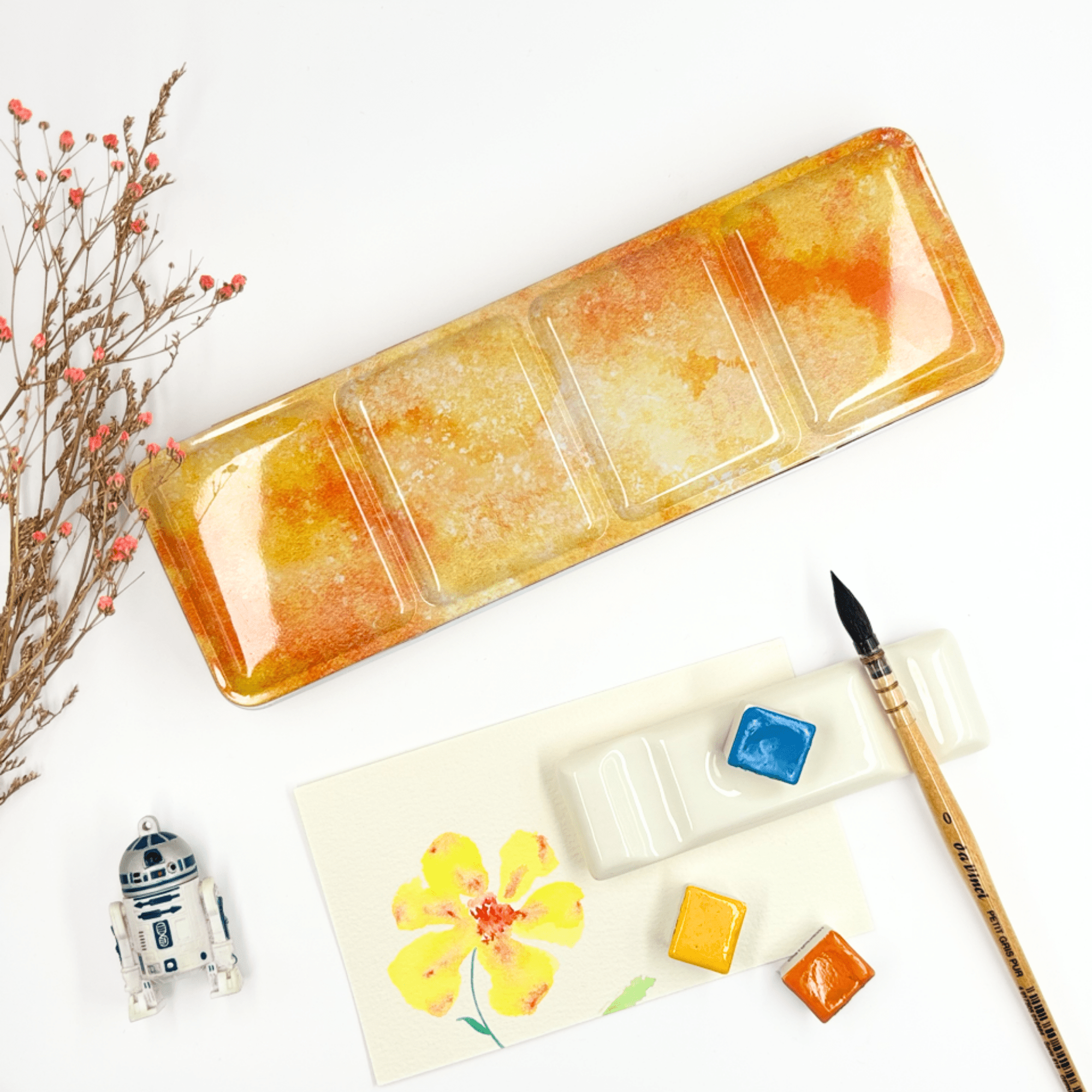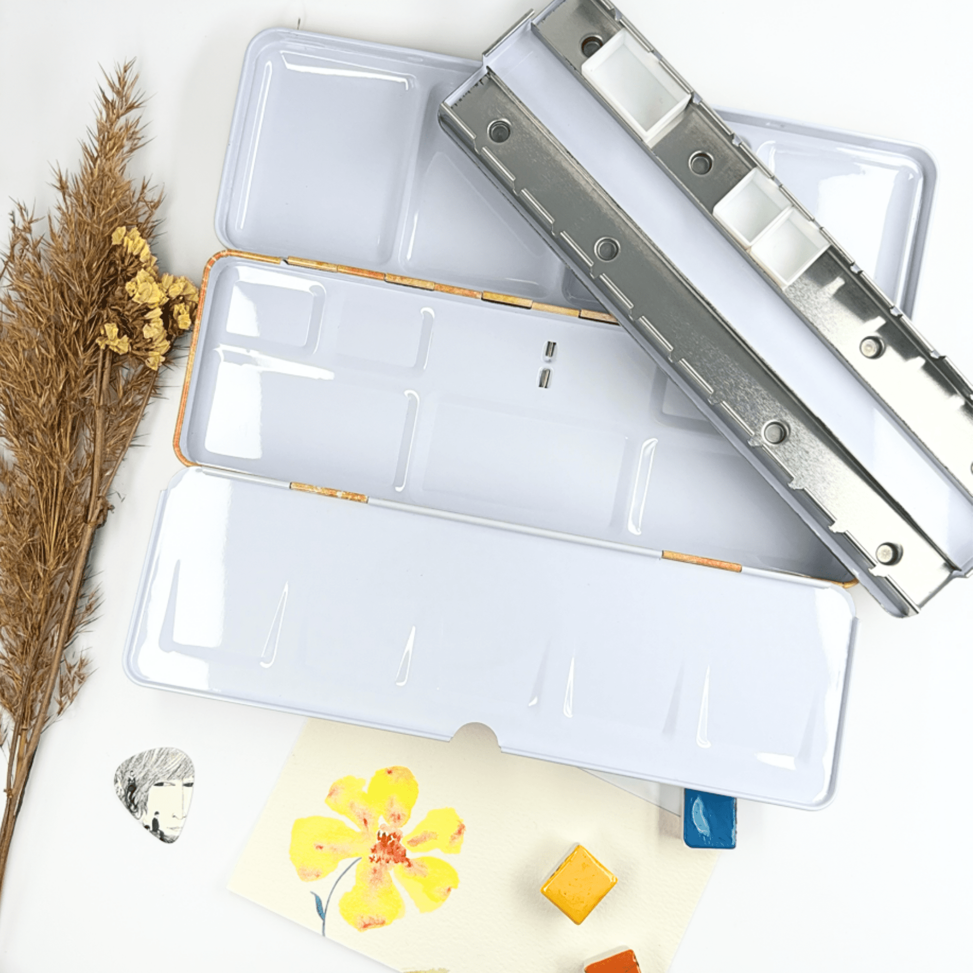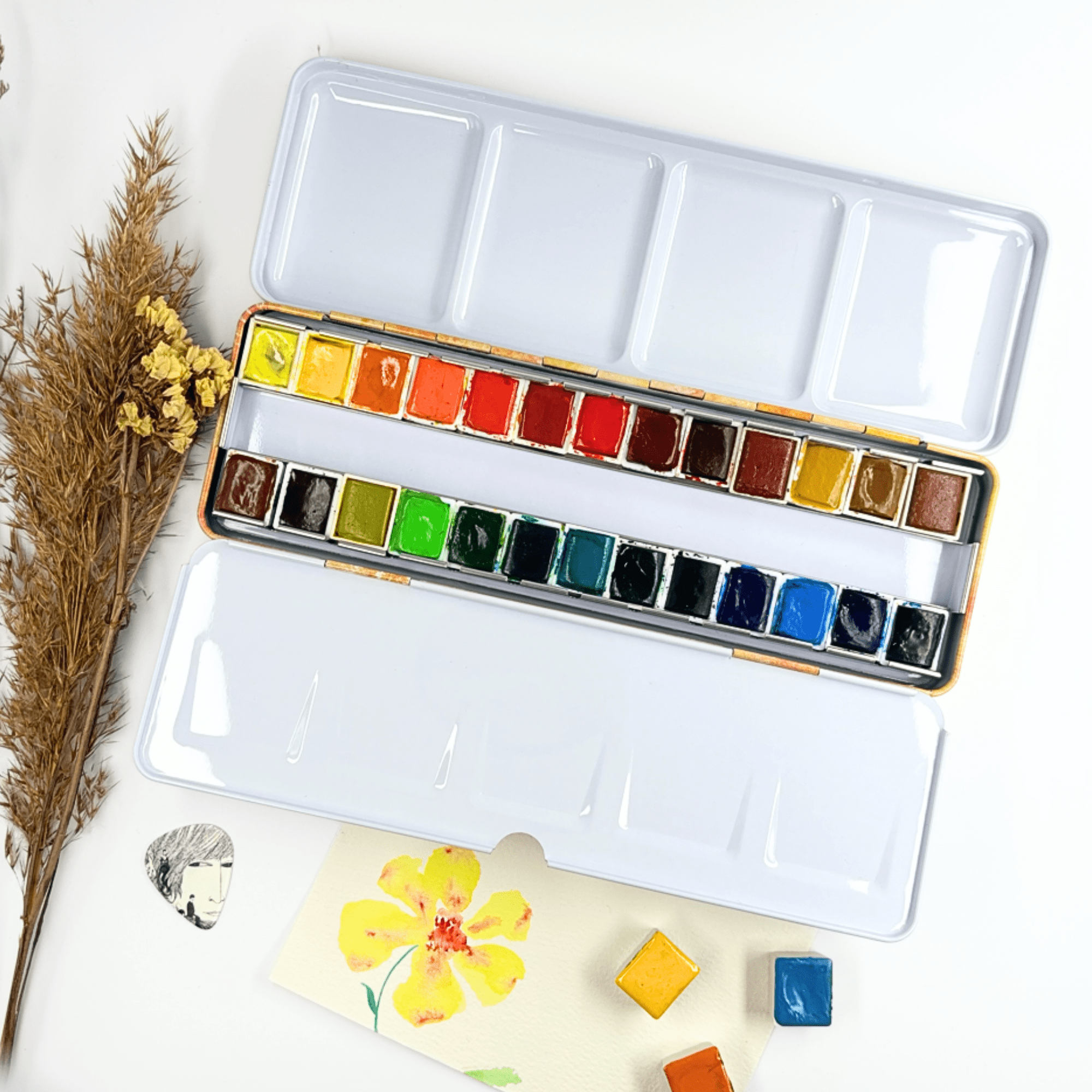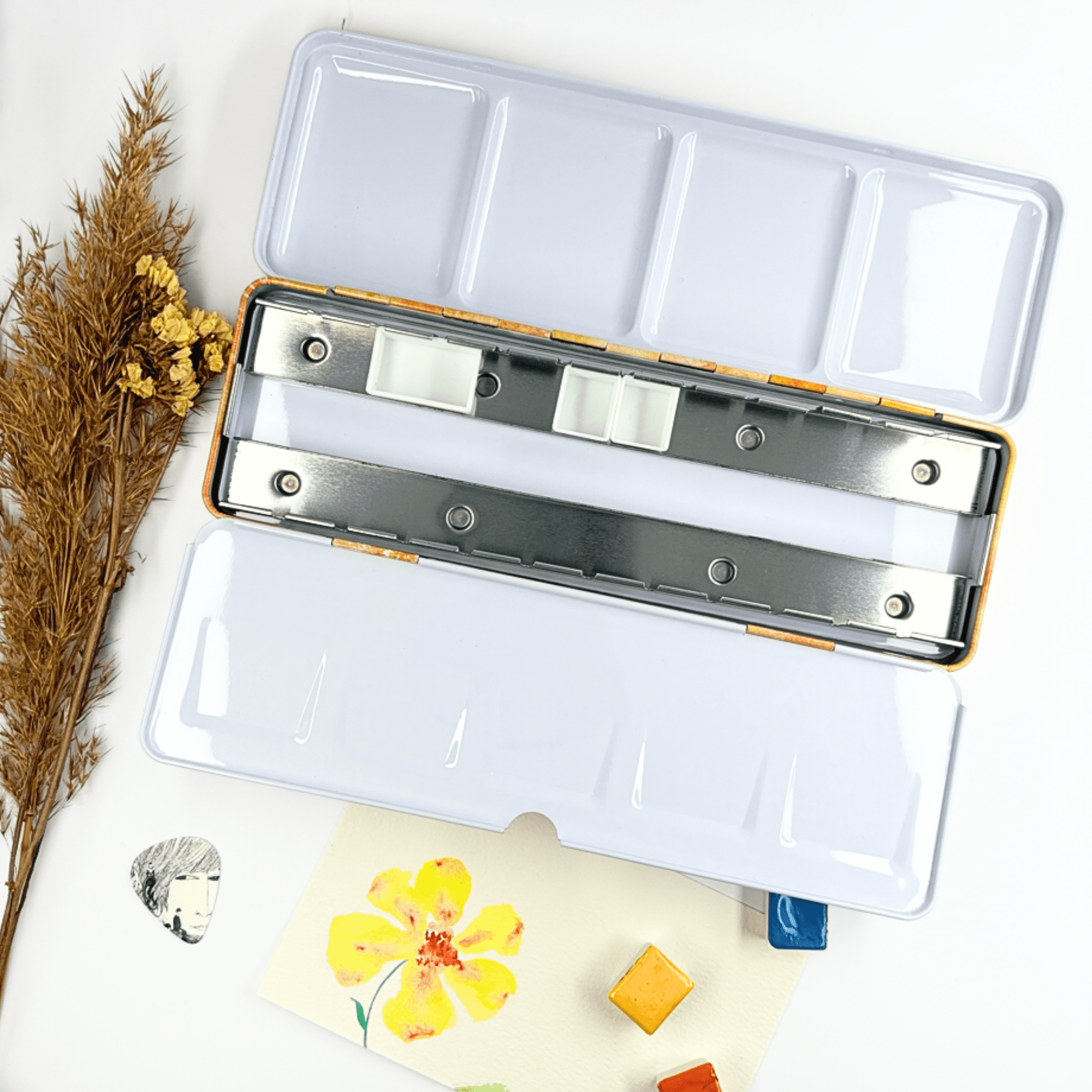 Personnalisez votre palette et rangez vos couleurs avec cette boîte d’aquarelle en métal émaillé.