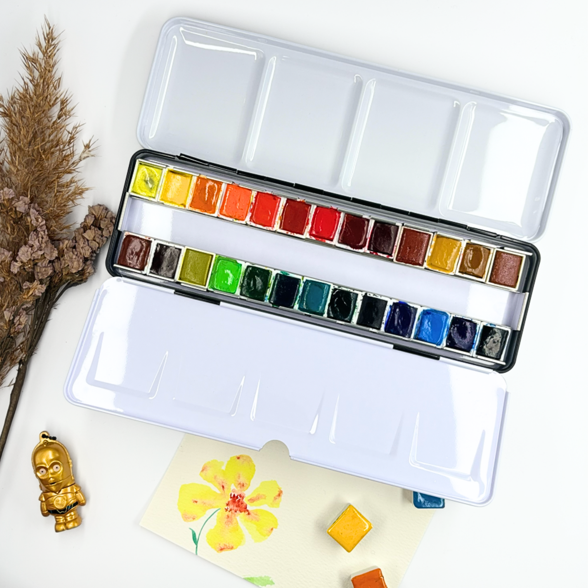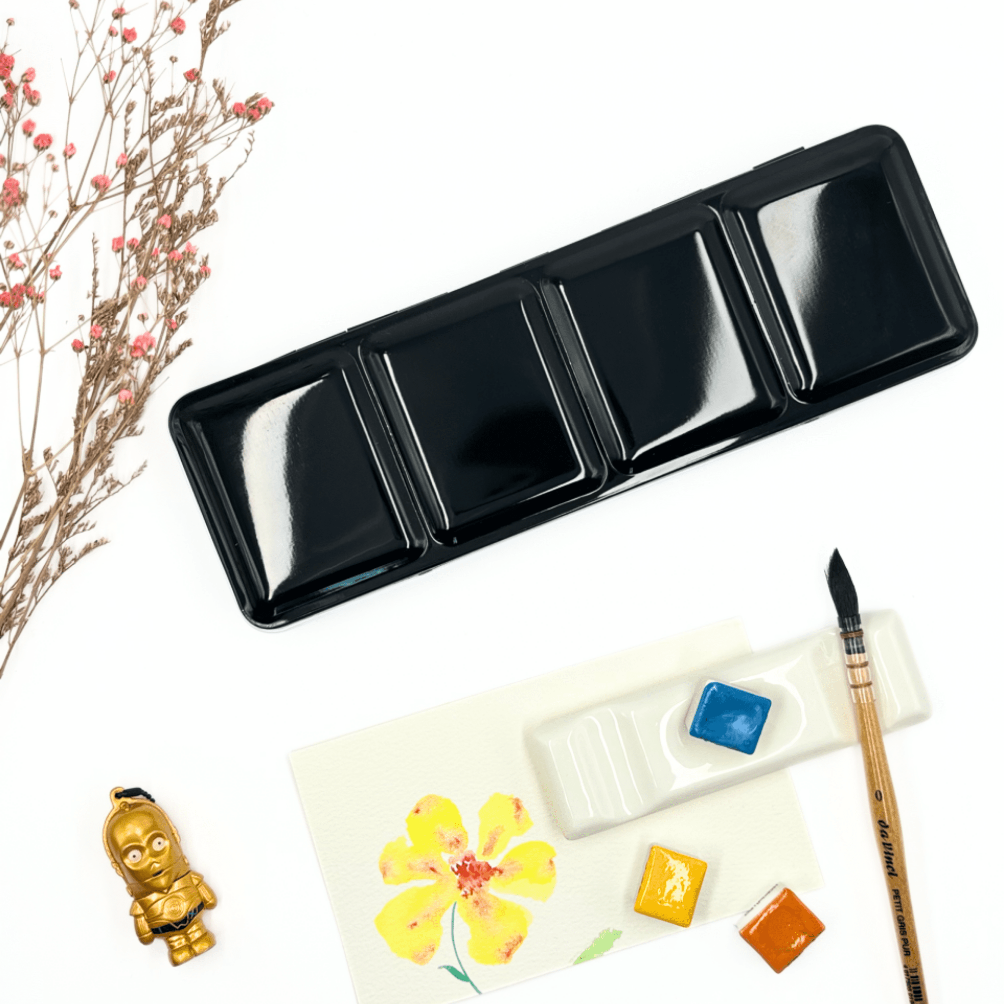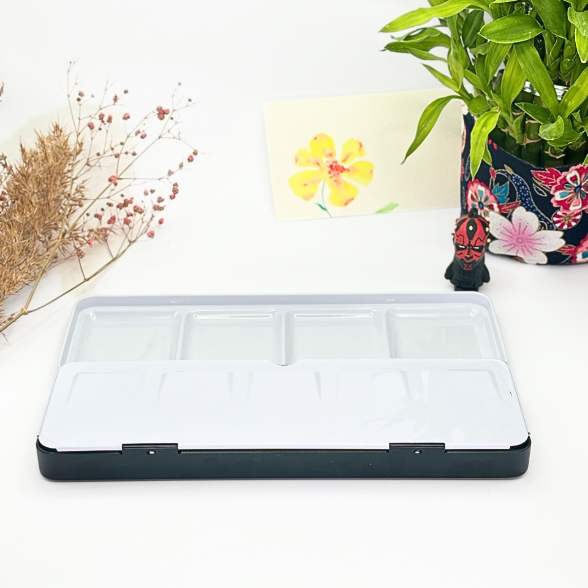 Personnalisez votre palette et rangez vos couleurs avec cette boîte d’aquarelle en métal émaillé.