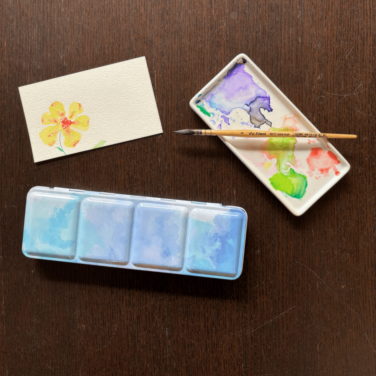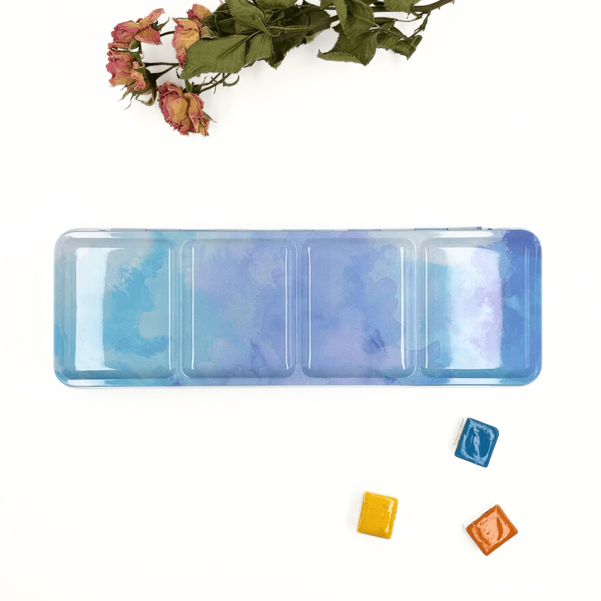 Personnalisez votre palette et rangez vos couleurs avec cette boîte d’aquarelle en métal émaillé.