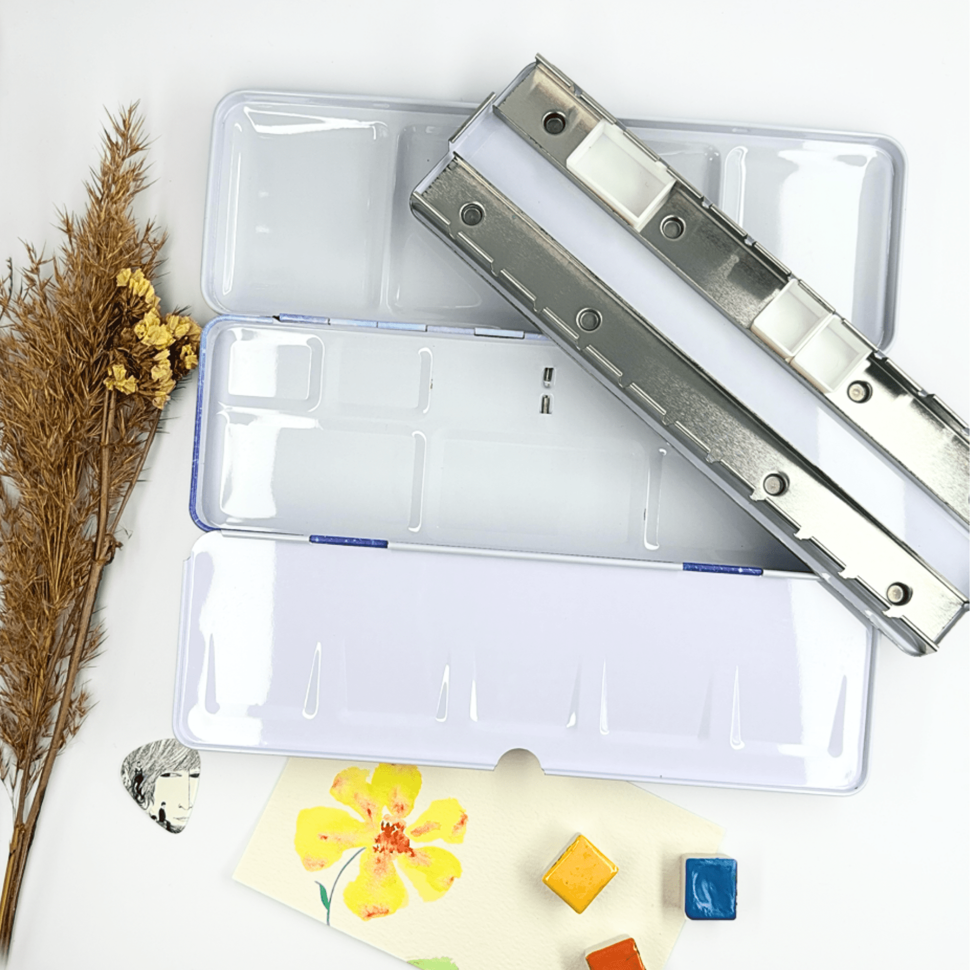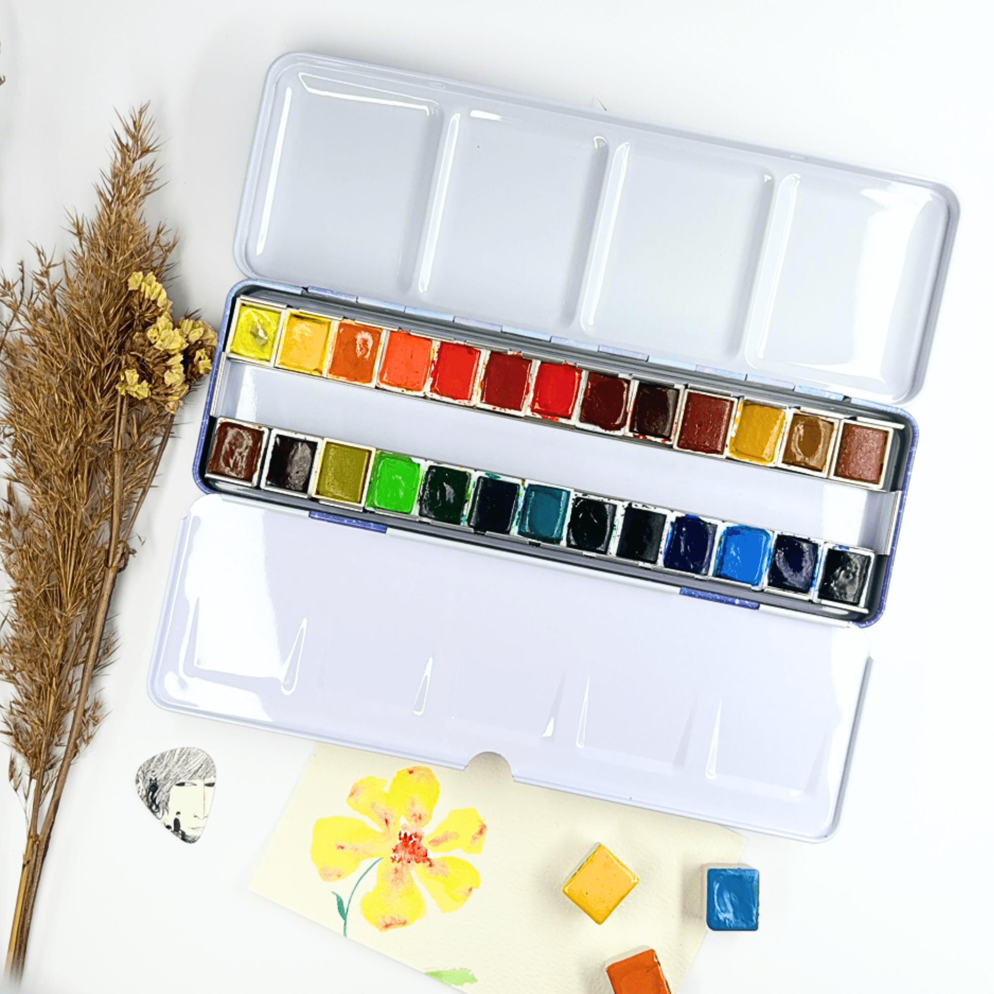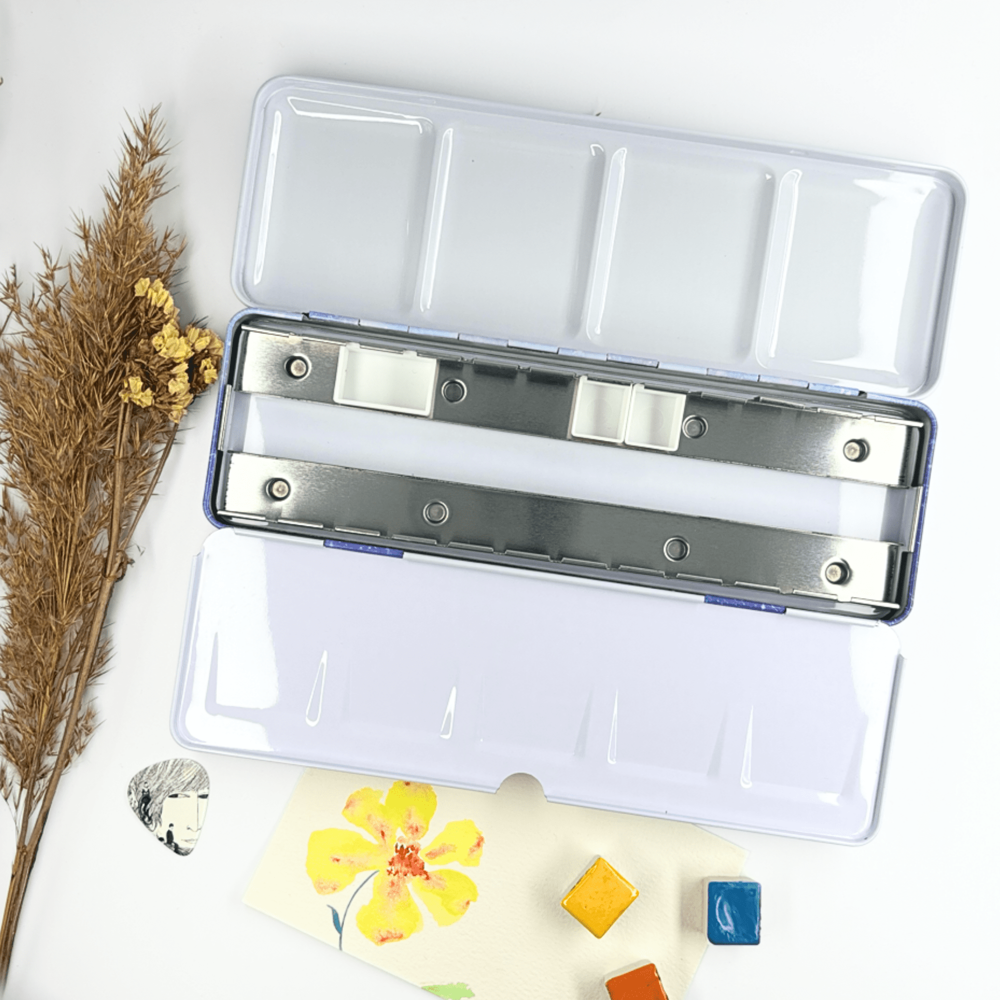 Personnalisez votre palette et rangez vos couleurs avec cette boîte d’aquarelle en métal émaillé.