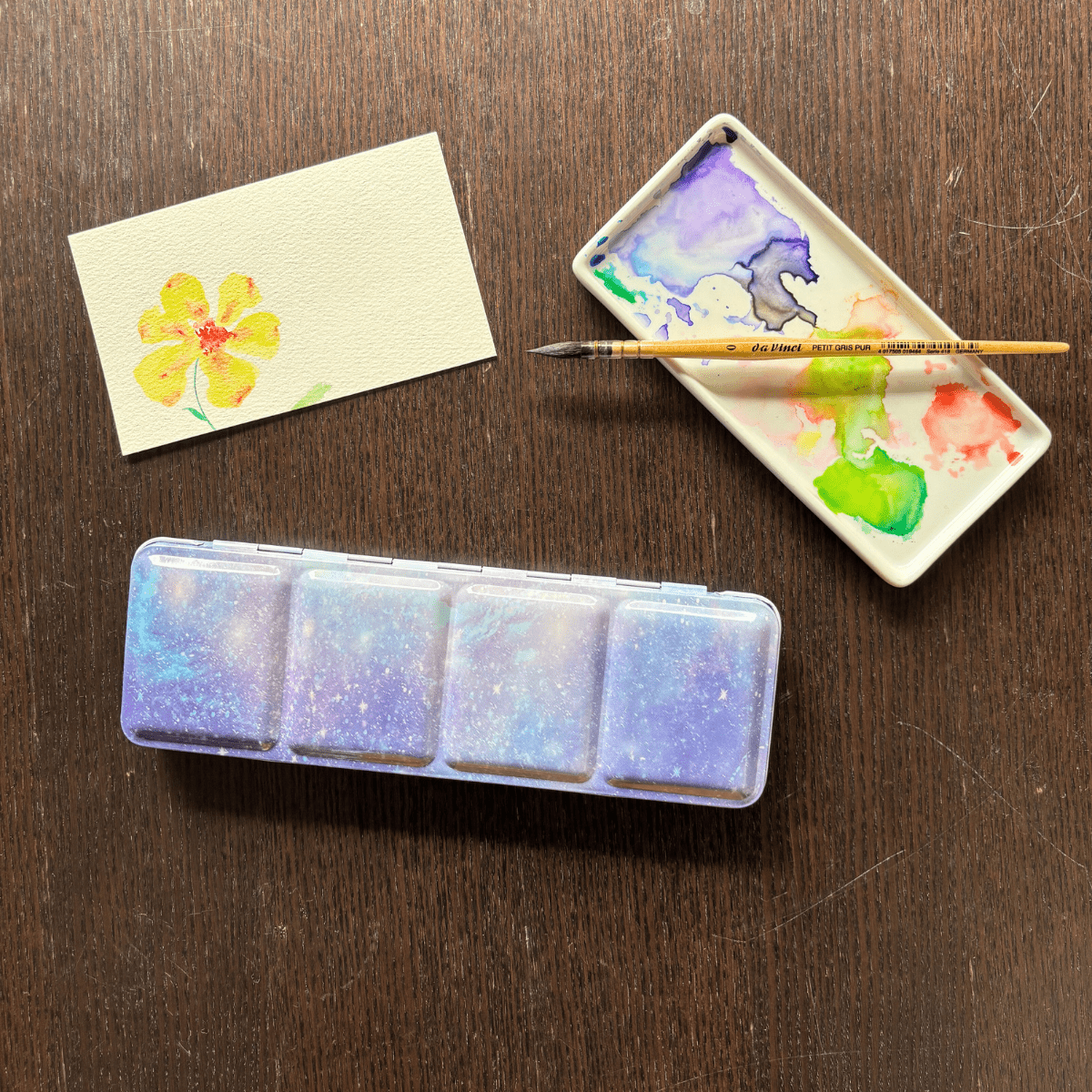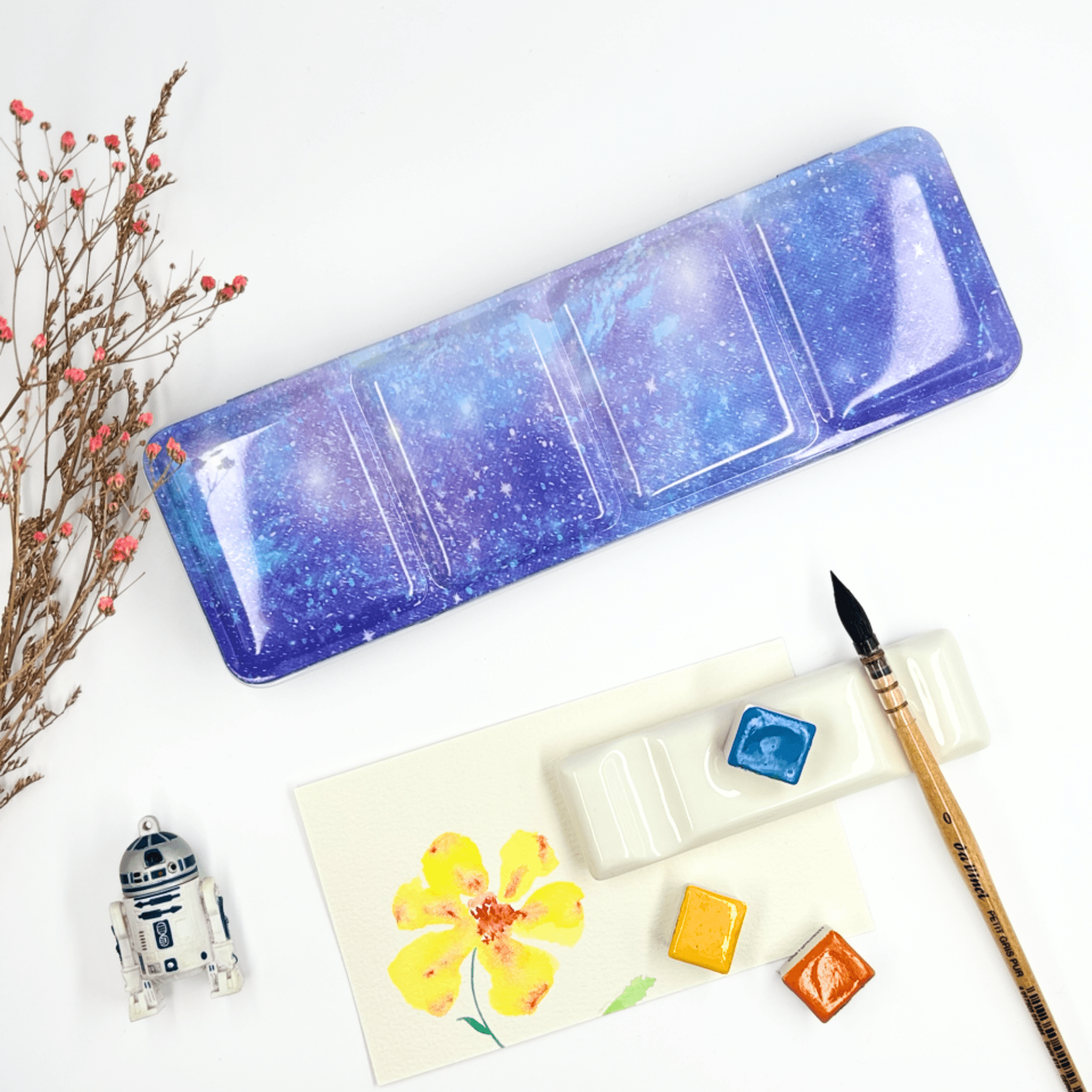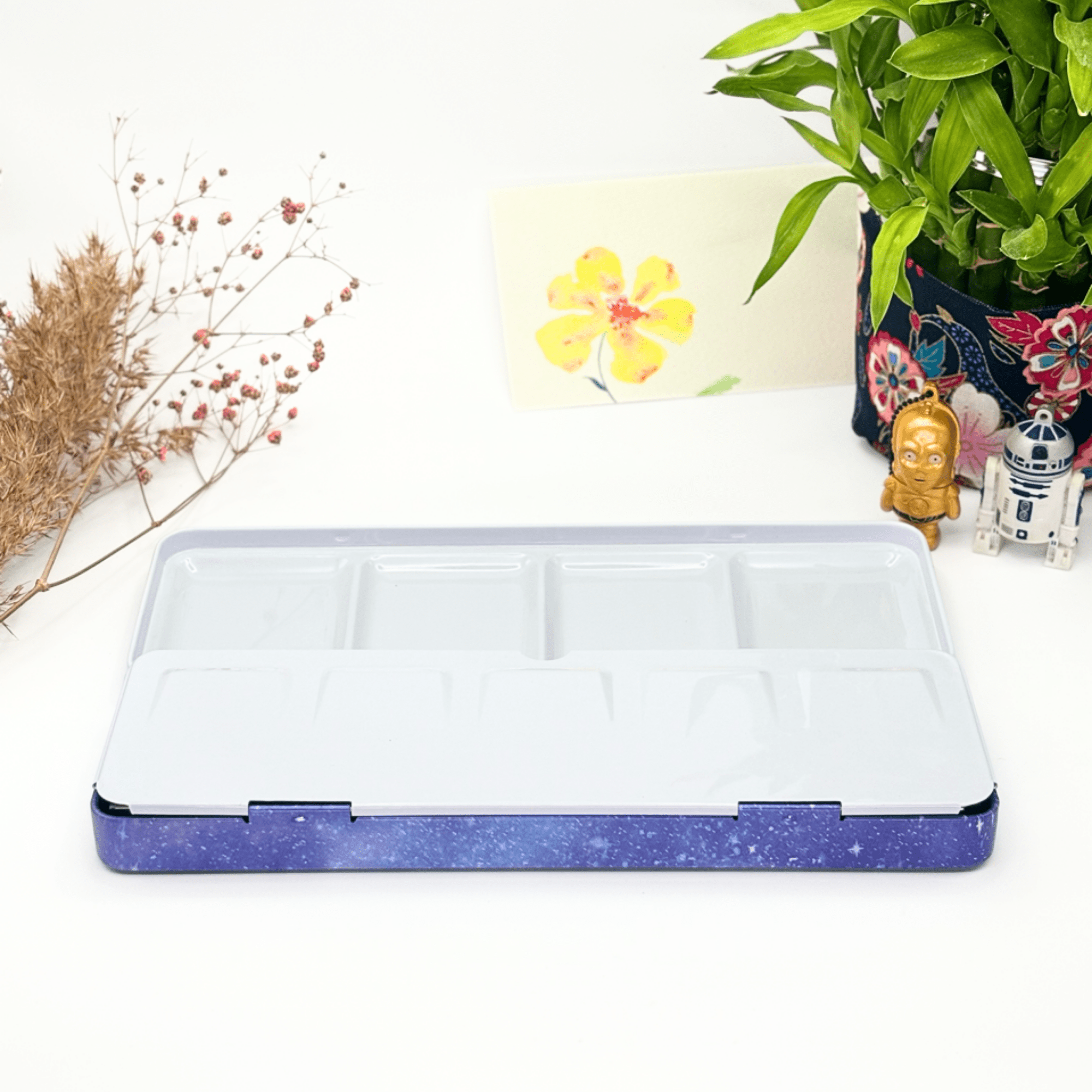 Personnalisez votre palette et rangez vos couleurs avec cette boîte d’aquarelle en métal émaillé.