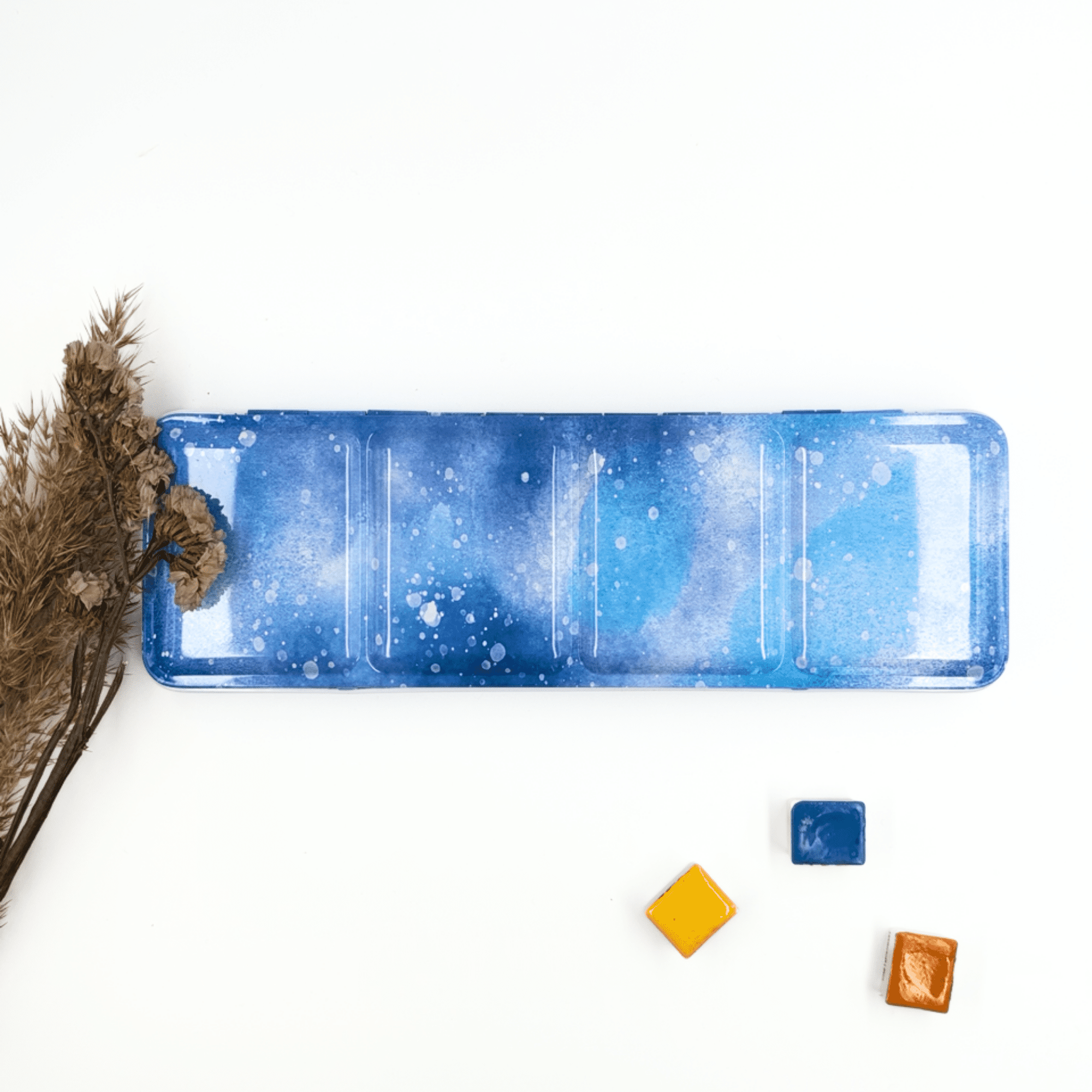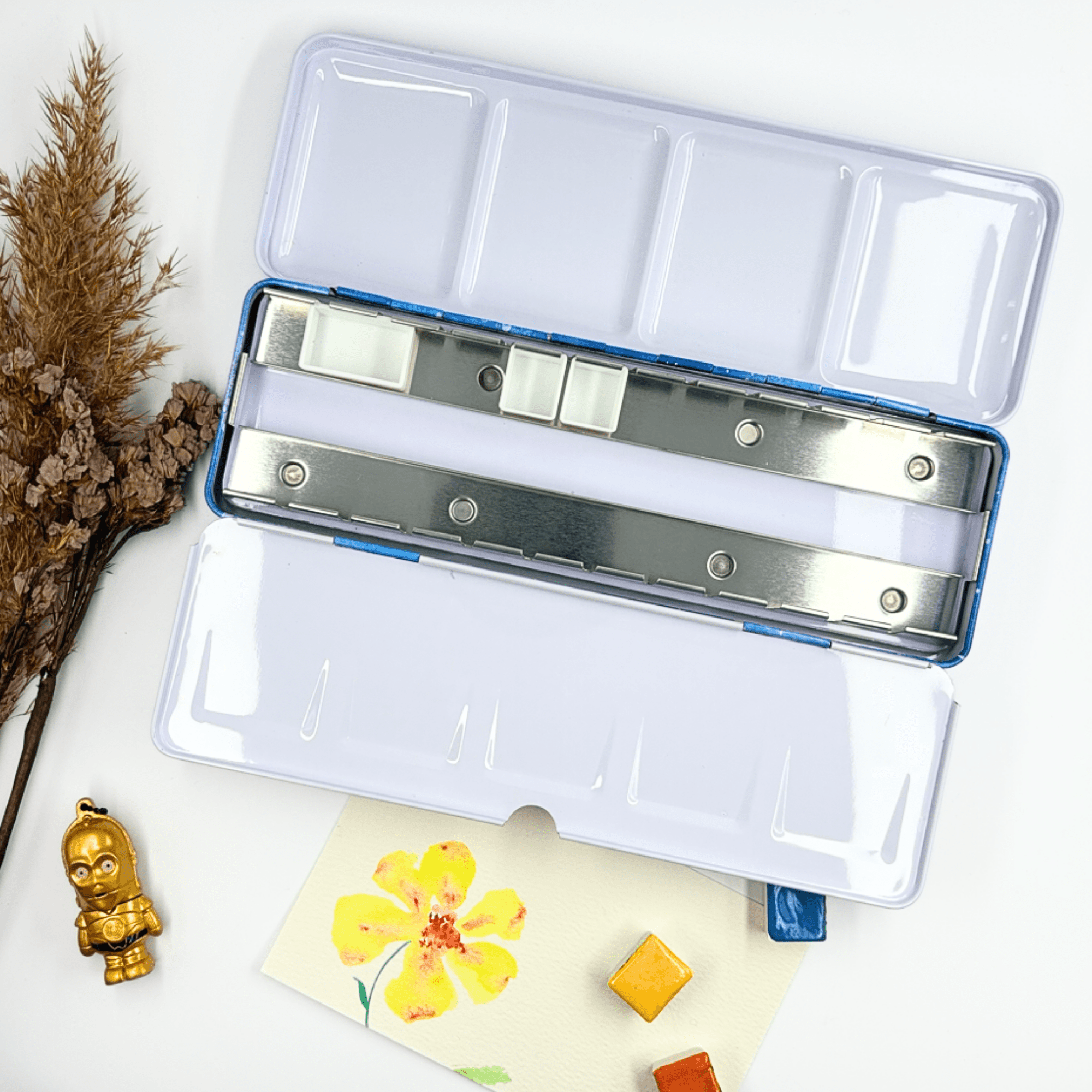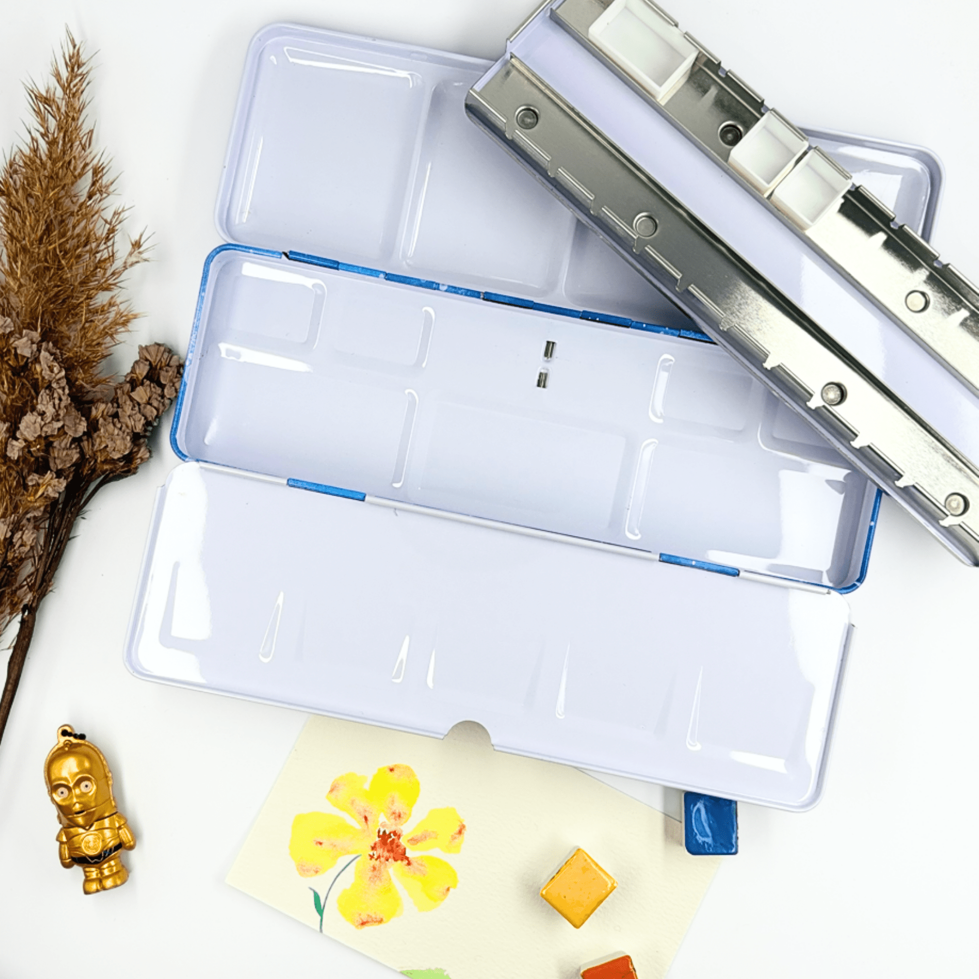 Personnalisez votre palette et rangez vos couleurs avec cette boîte d’aquarelle en métal émaillé.