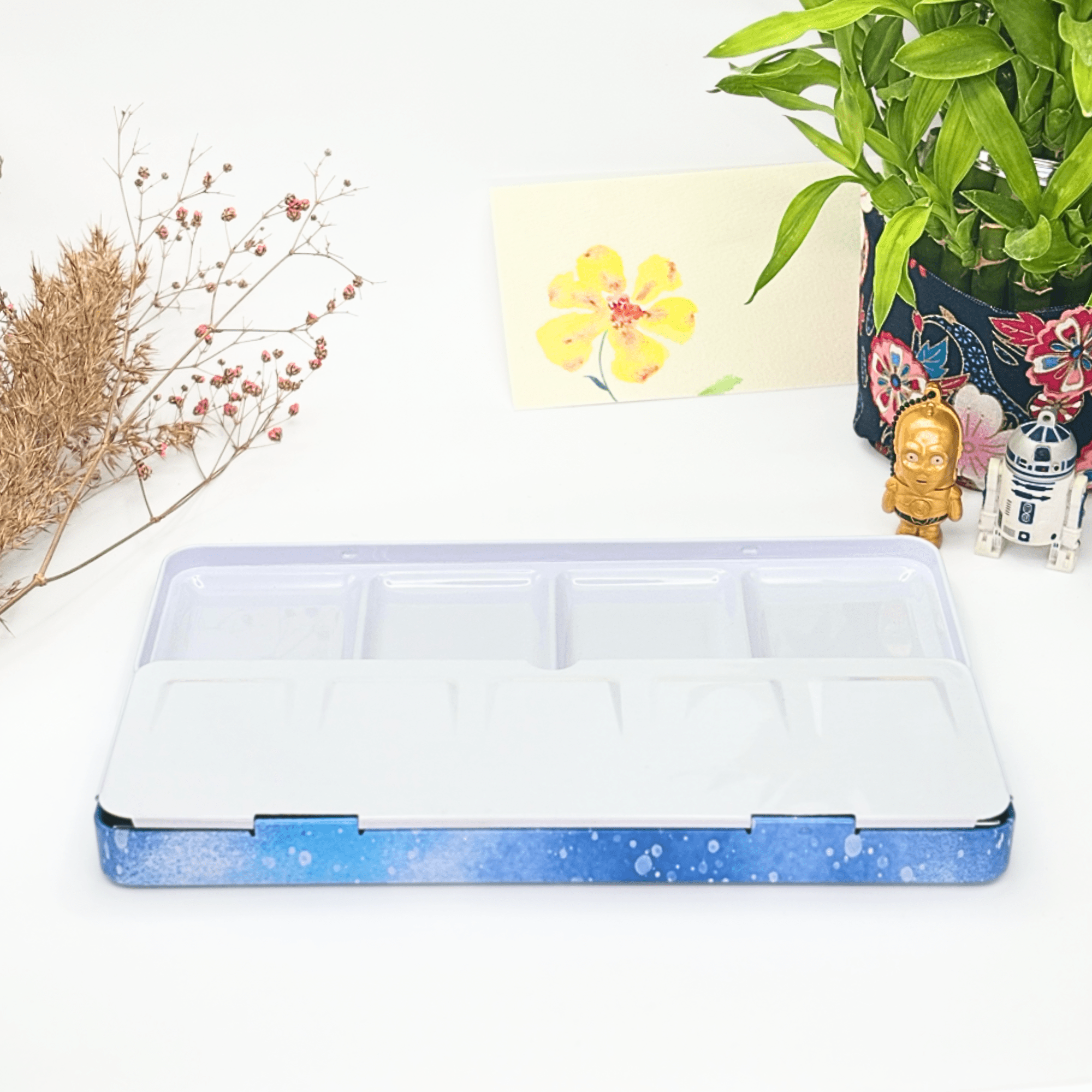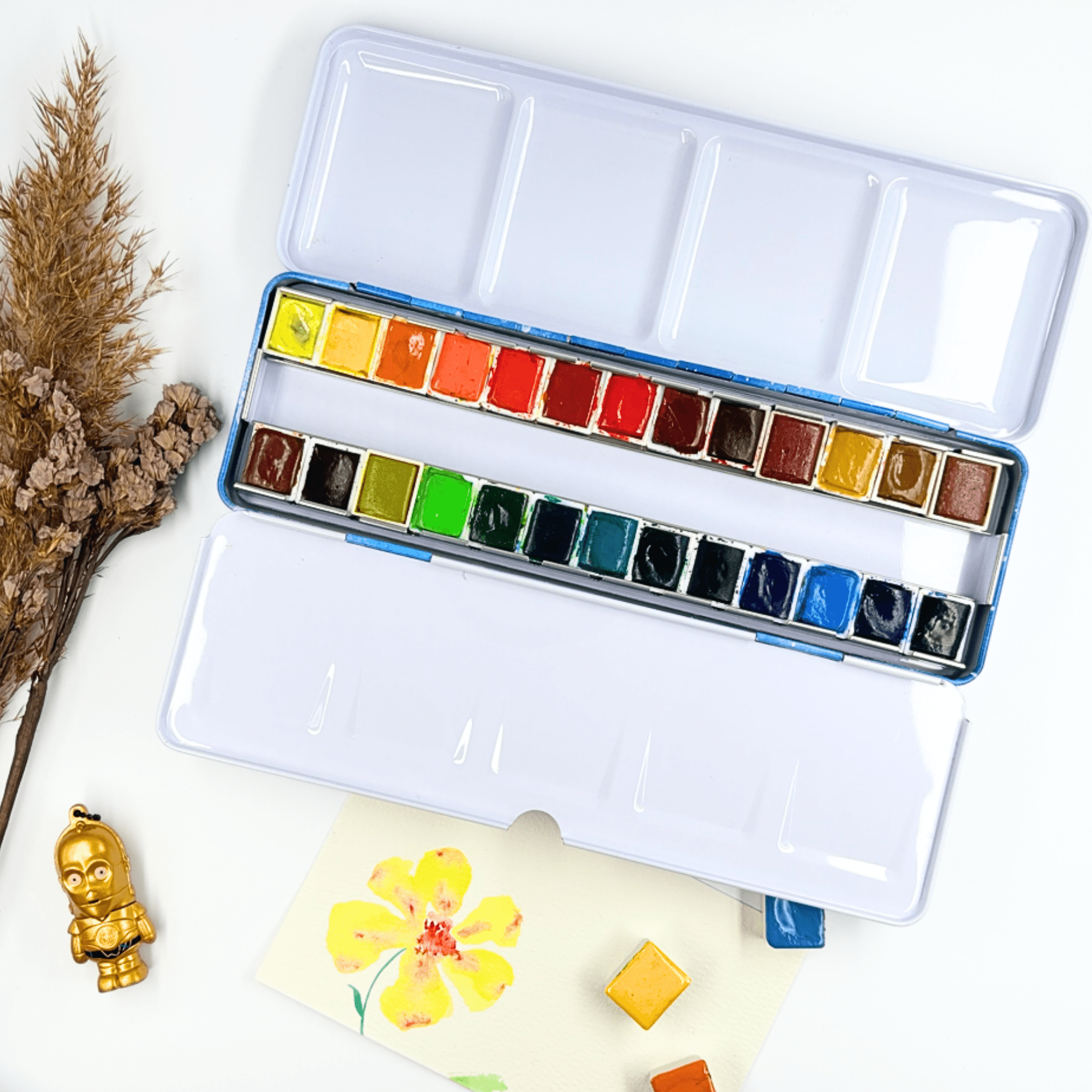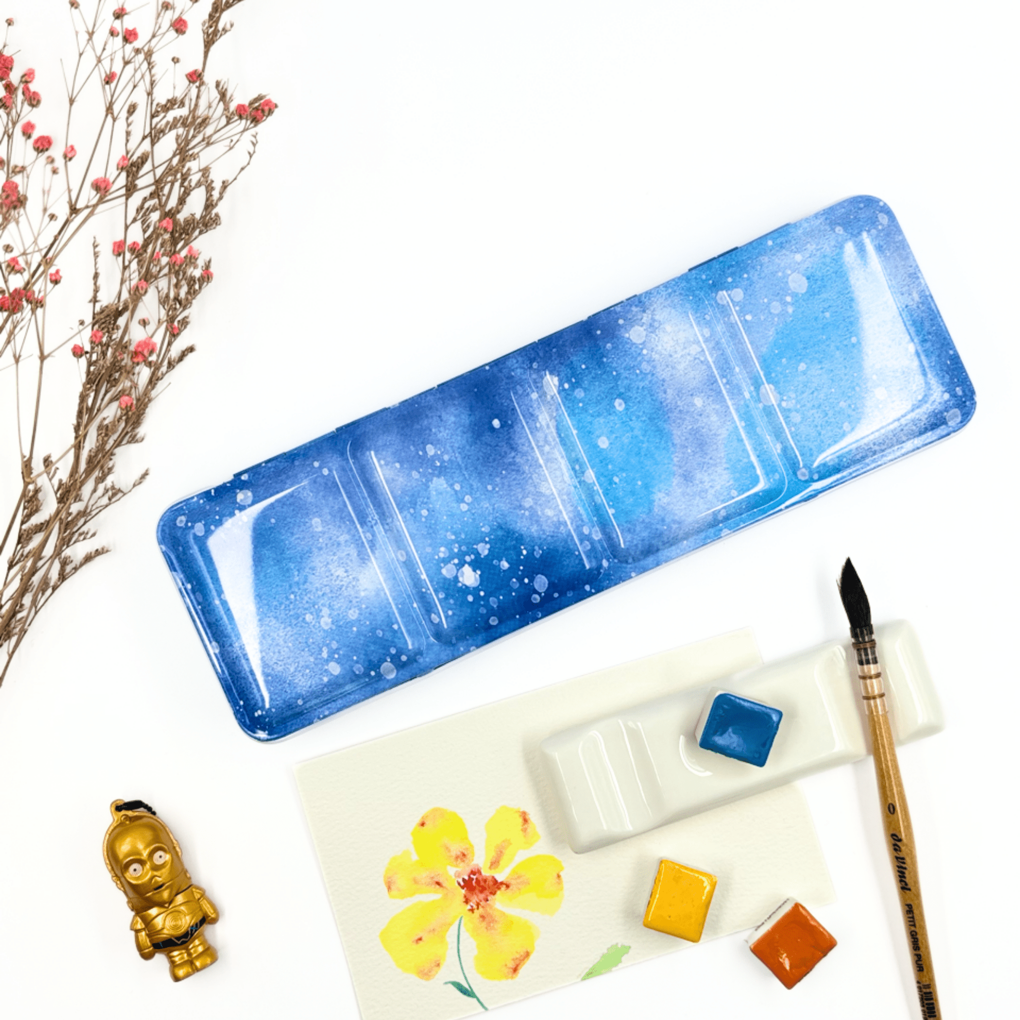 Personnalisez votre palette et rangez vos couleurs avec cette boîte d’aquarelle en métal émaillé.