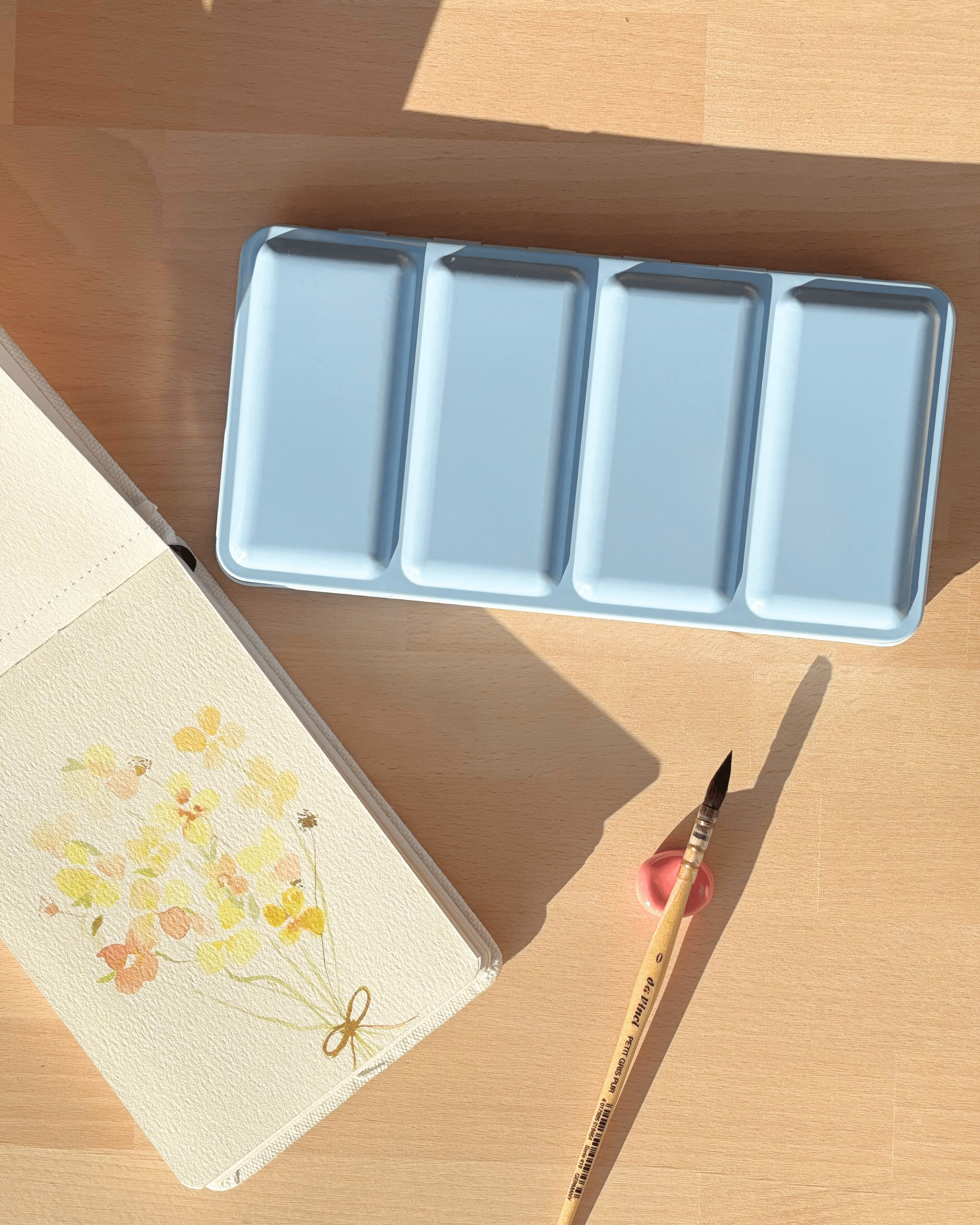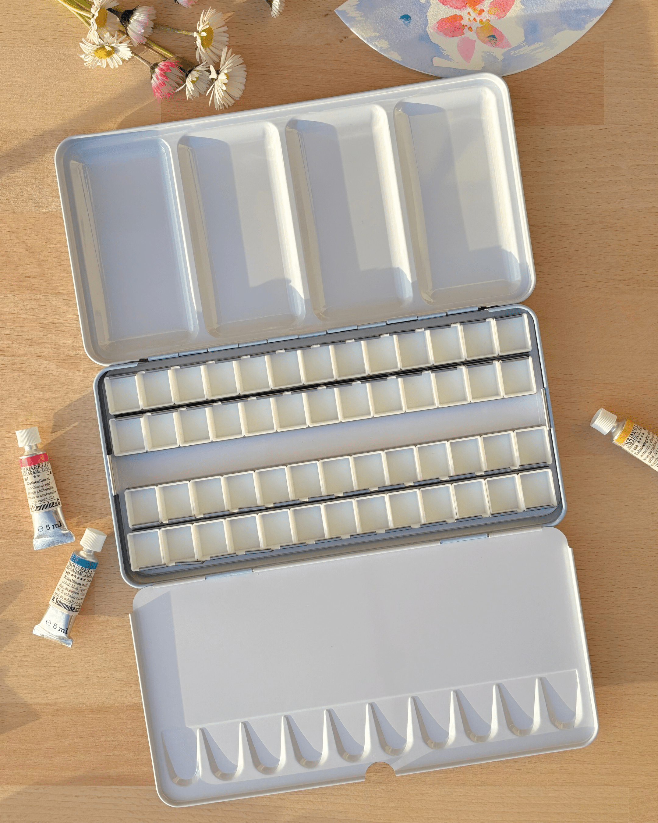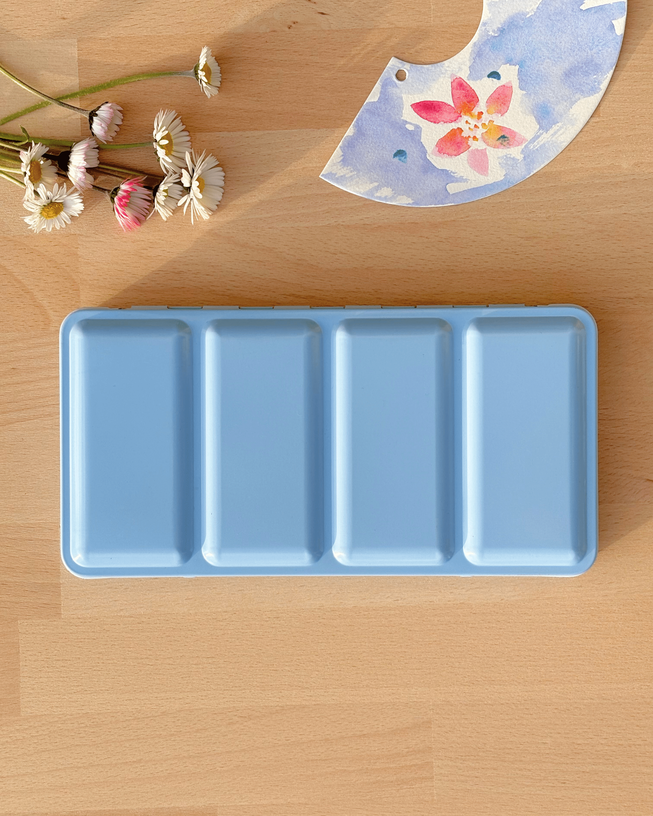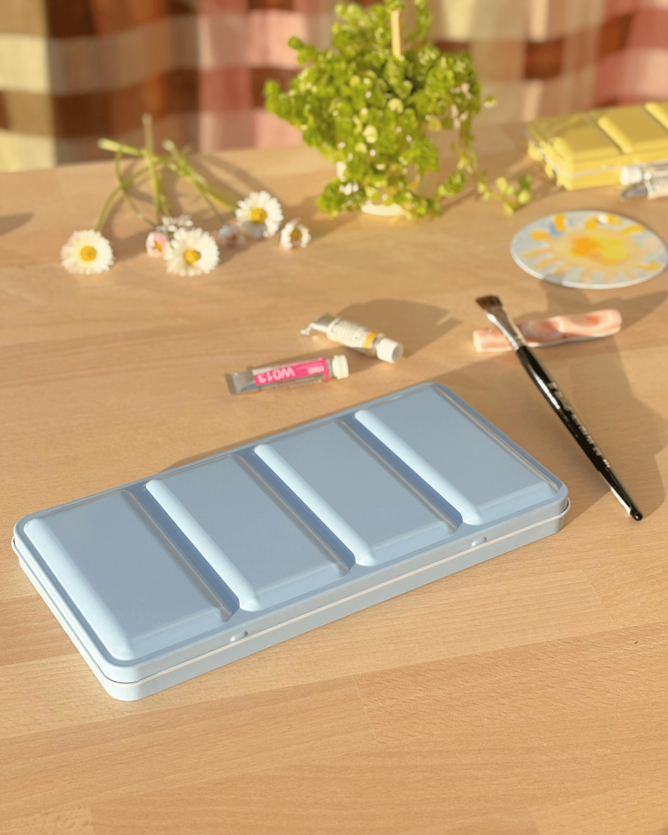 Personnalisez votre palette et rangez vos couleurs avec cette boîte d’aquarelle en métal émaillé.
