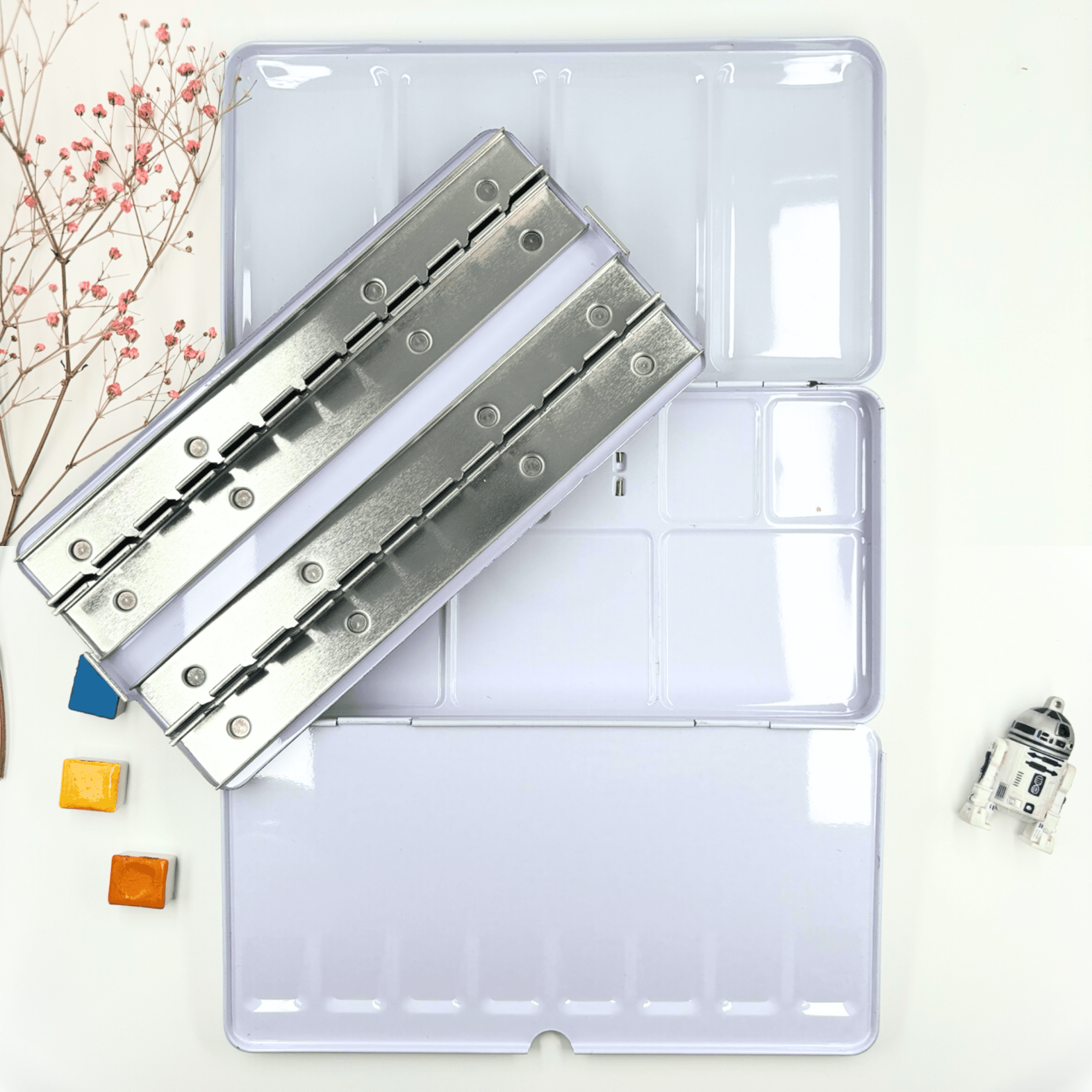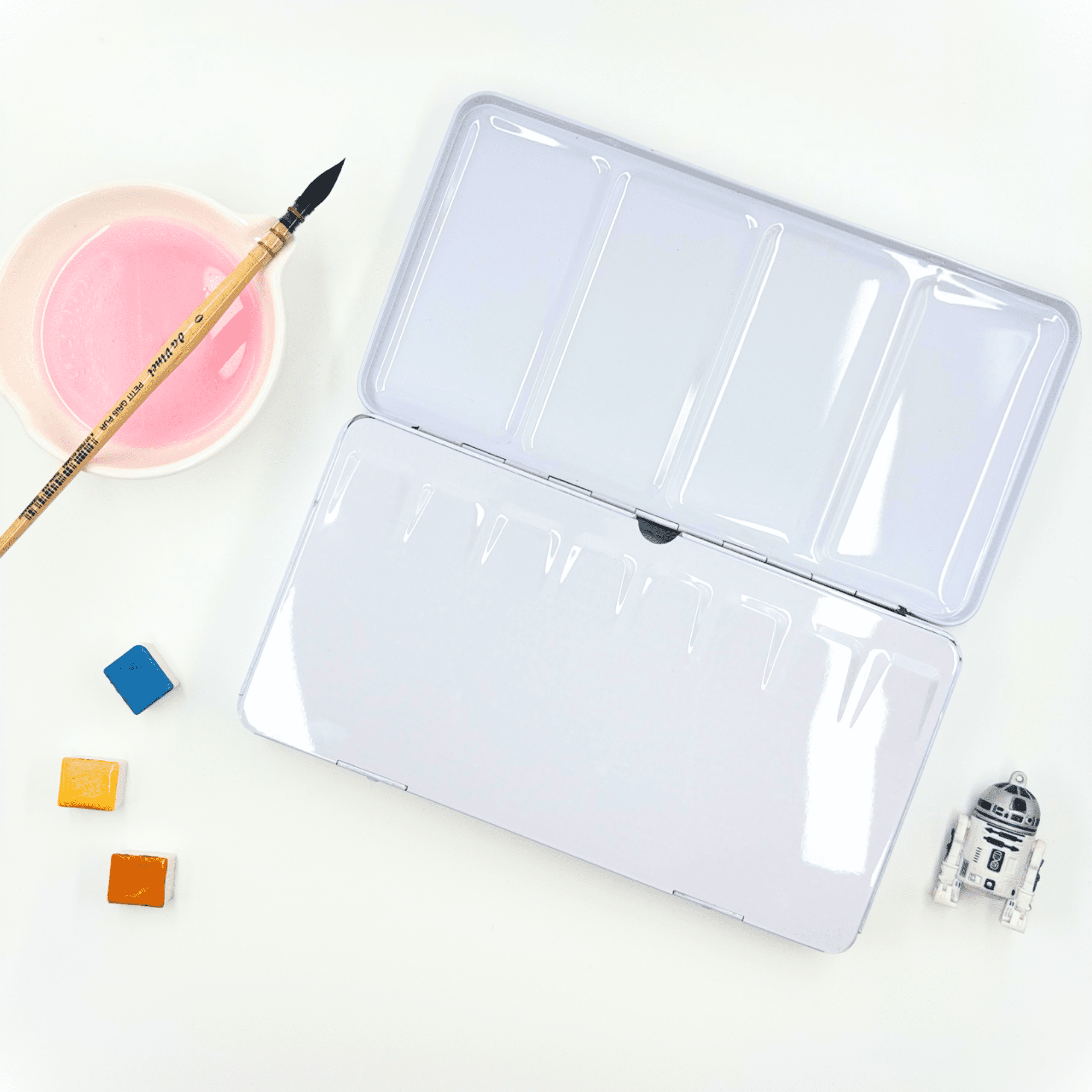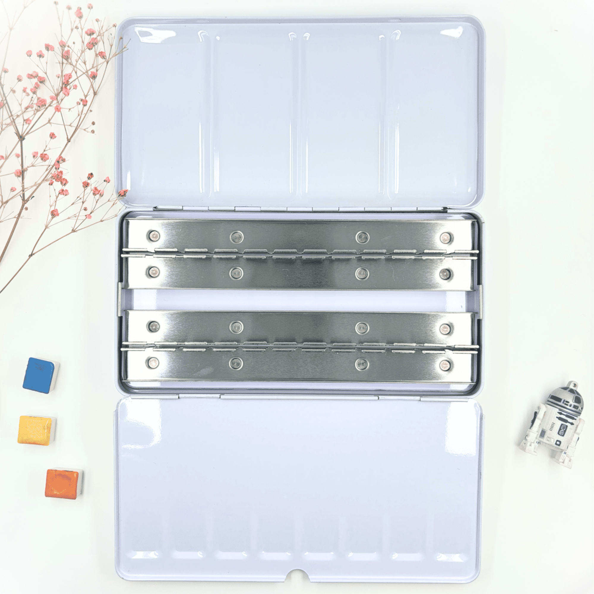 Personnalisez votre palette et rangez vos couleurs avec cette boîte d’aquarelle en métal émaillé.