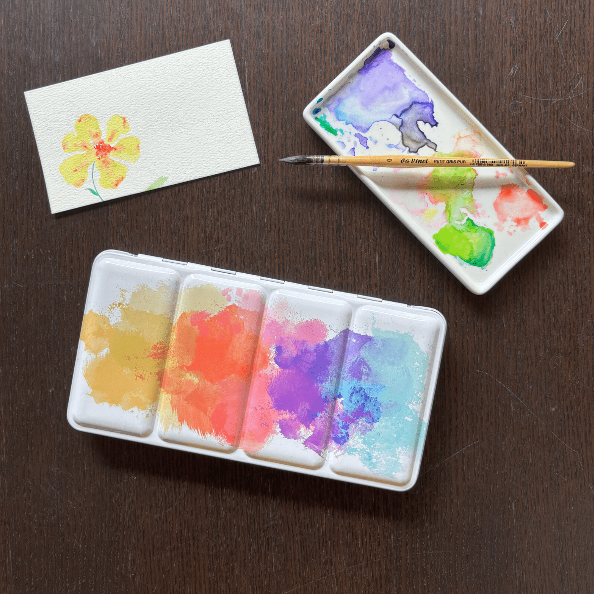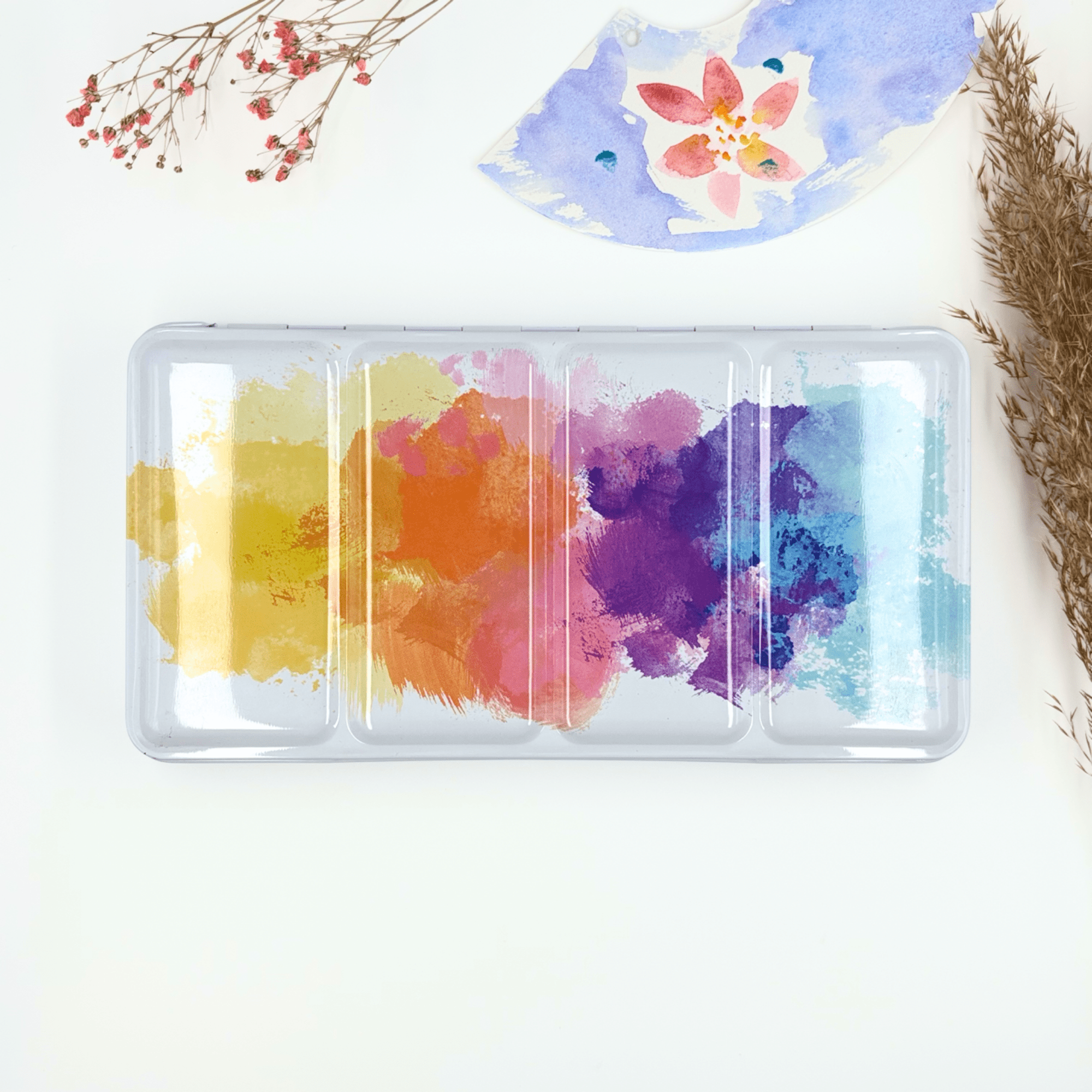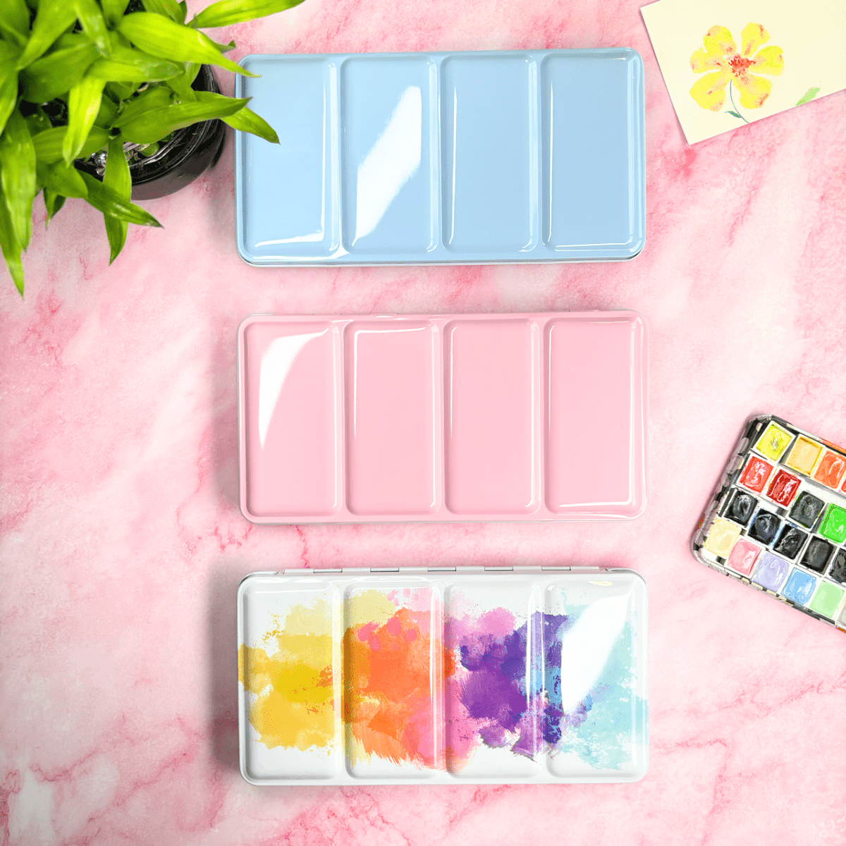 Personnalisez votre palette et rangez vos couleurs avec cette boîte d’aquarelle en métal émaillé.