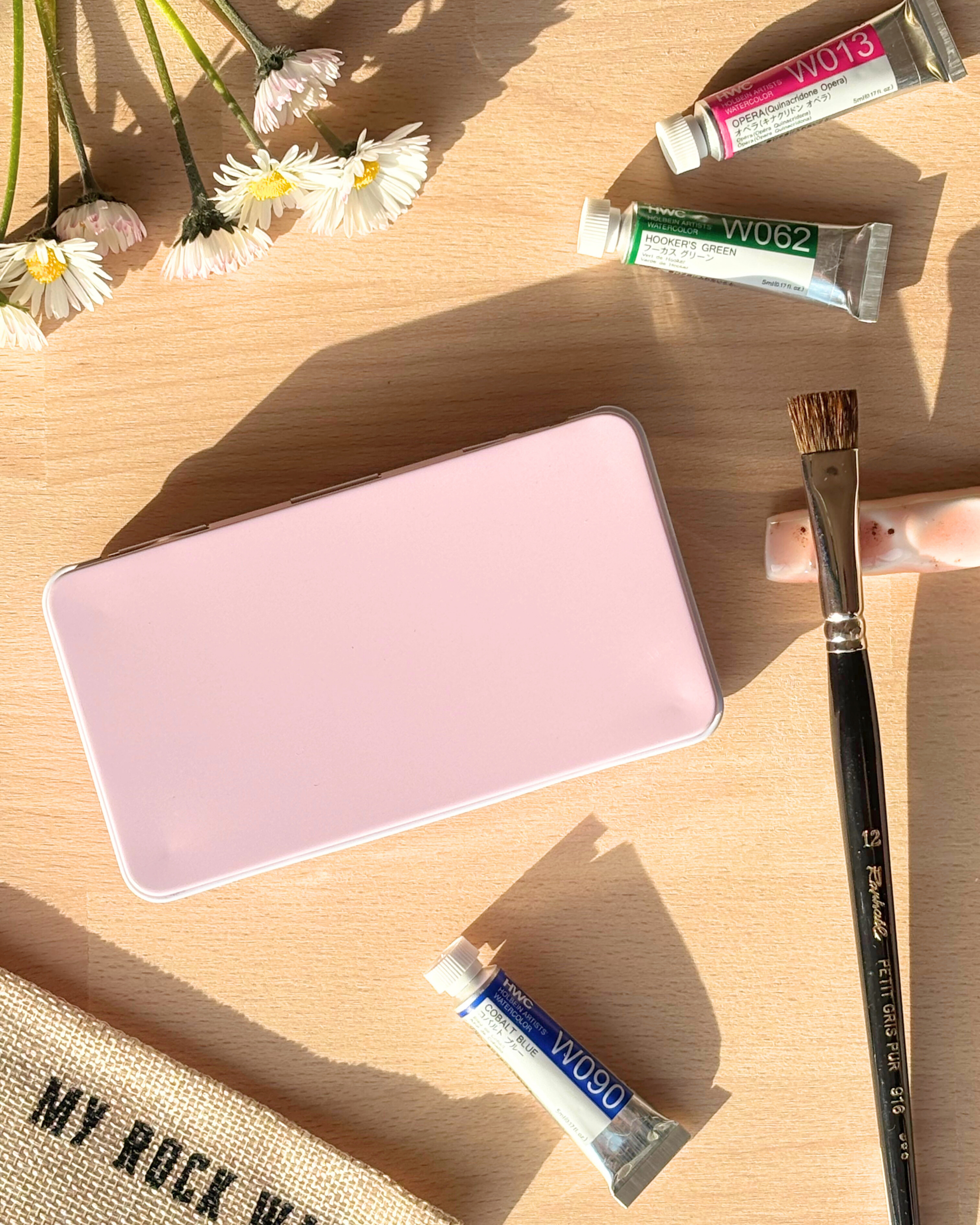 ✮ Boîte d’aquarelle Premium en métal pour 12 couleurs « Pink Love » ✮