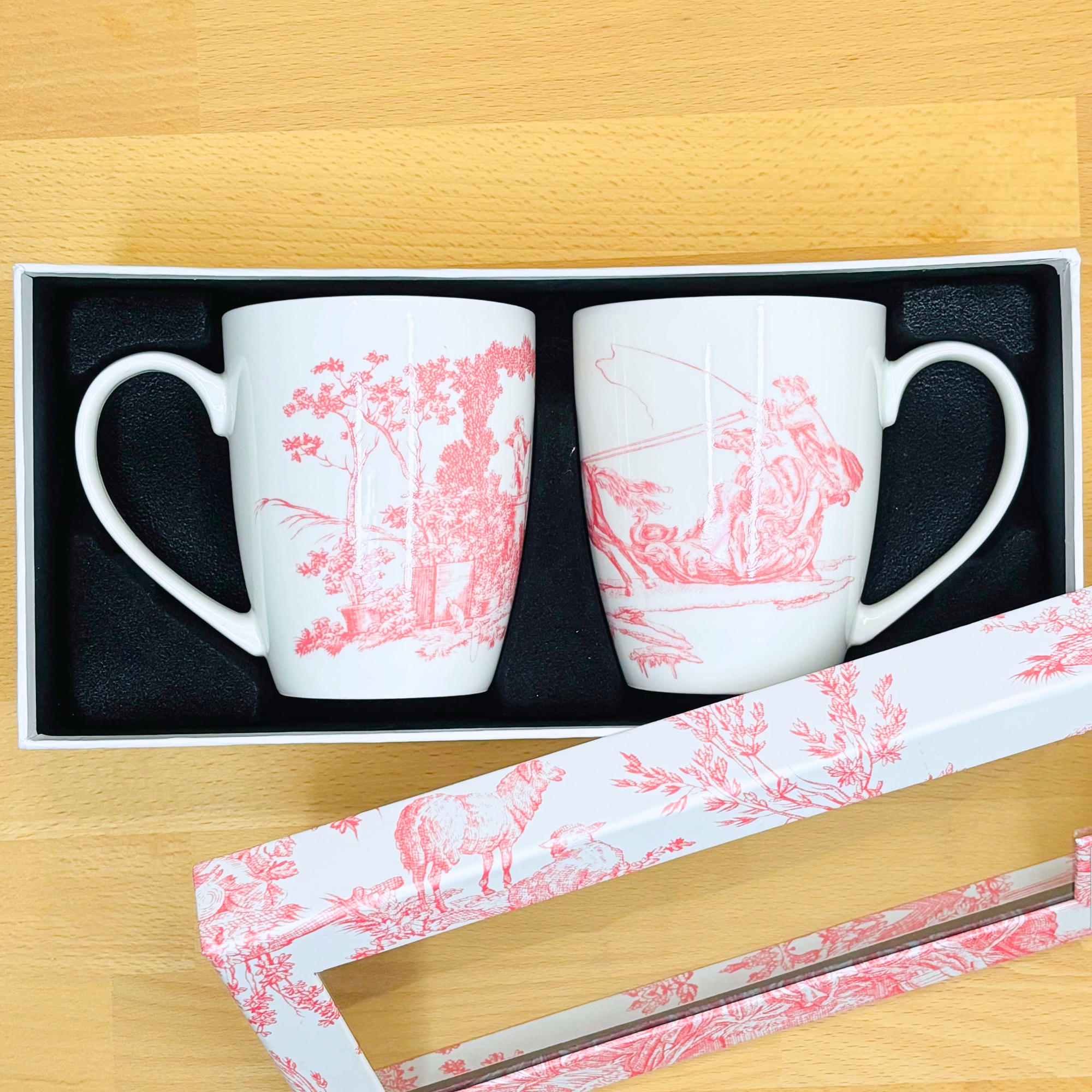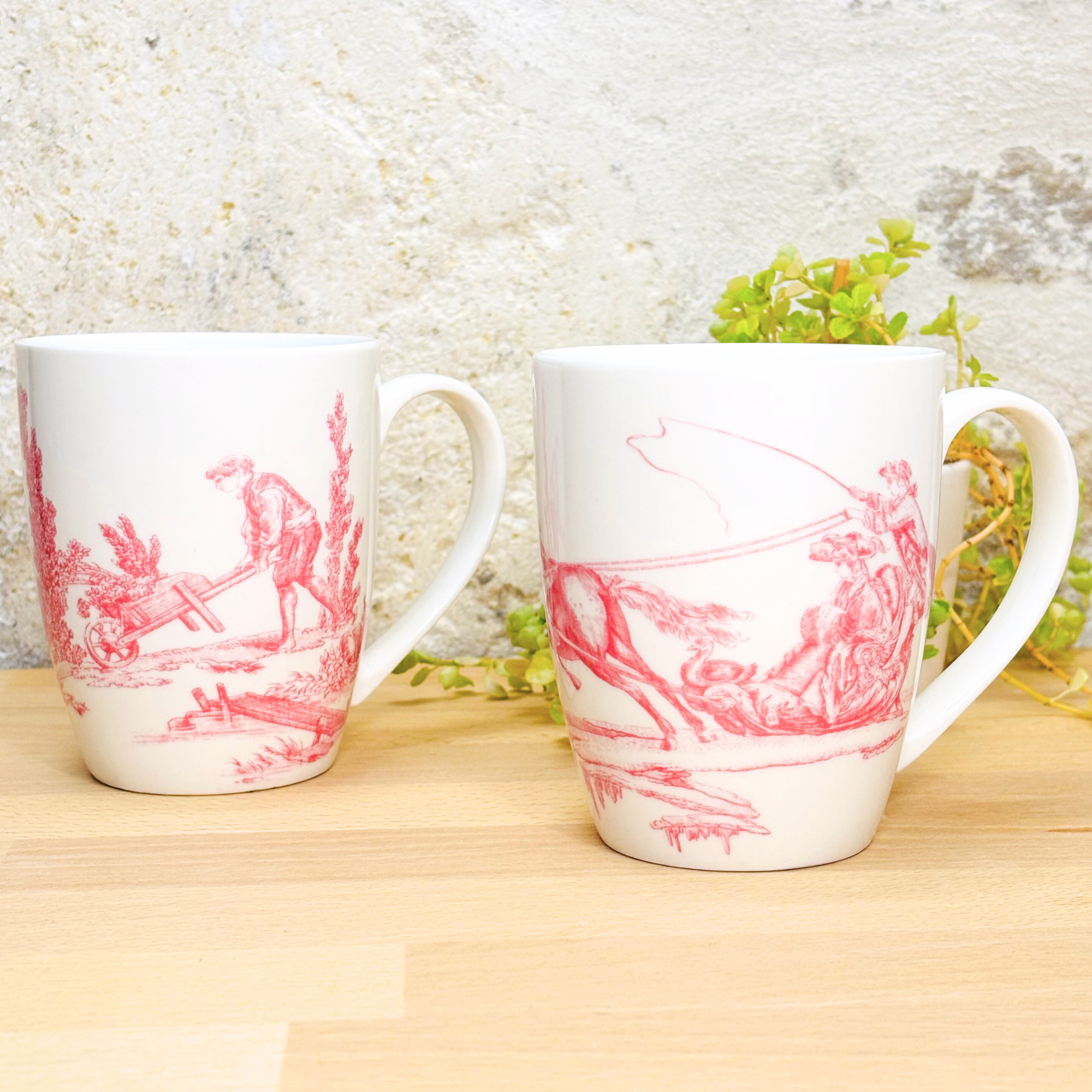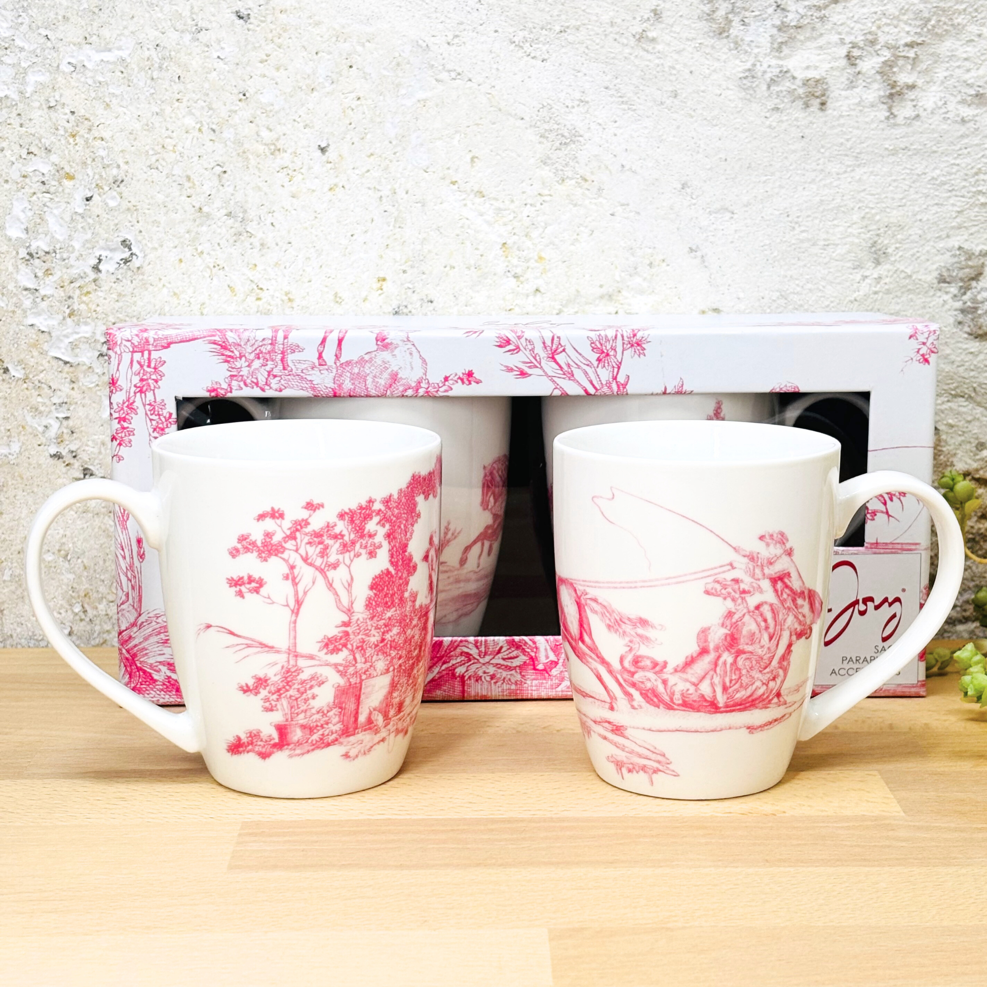 – un coffret de deux mugs en porcelaine