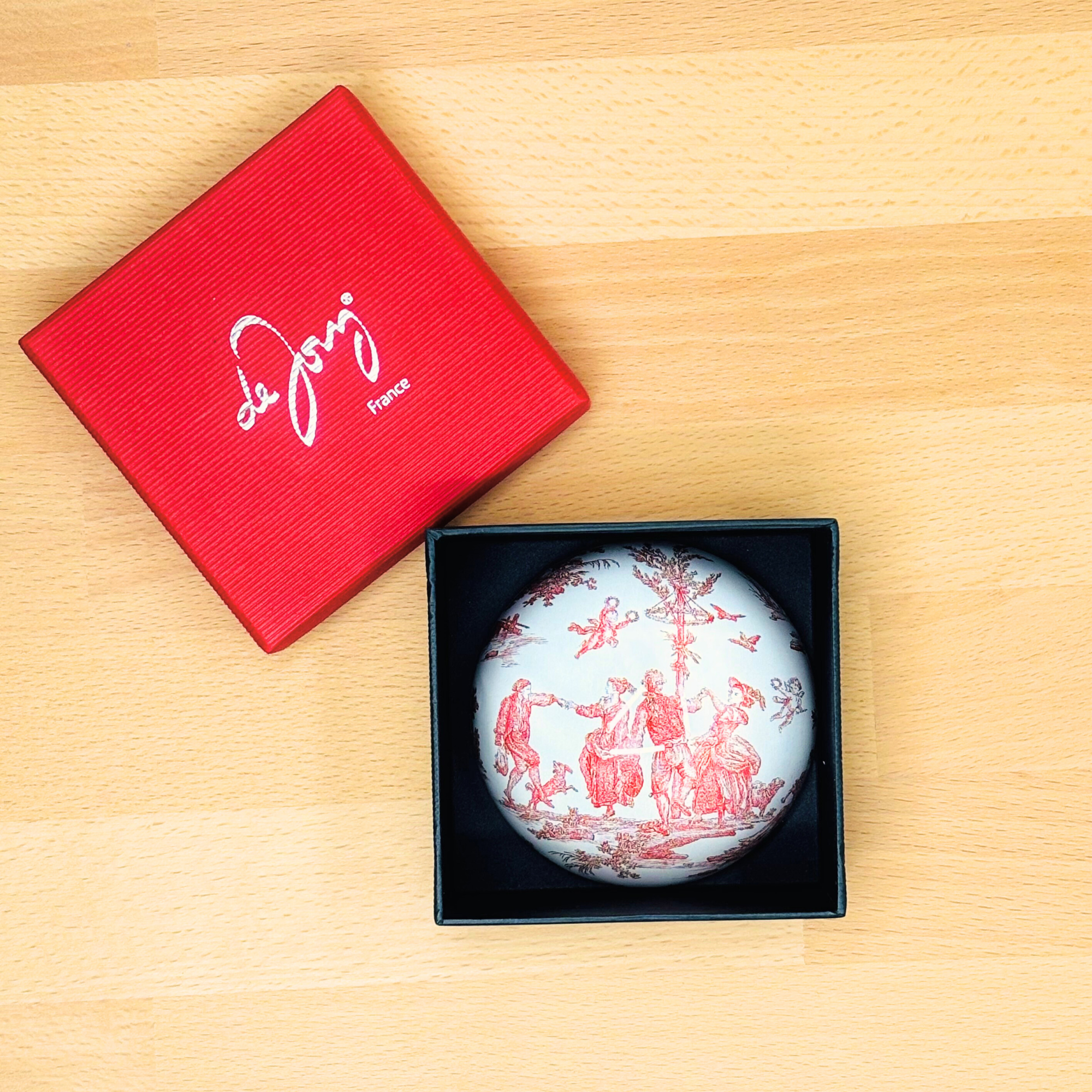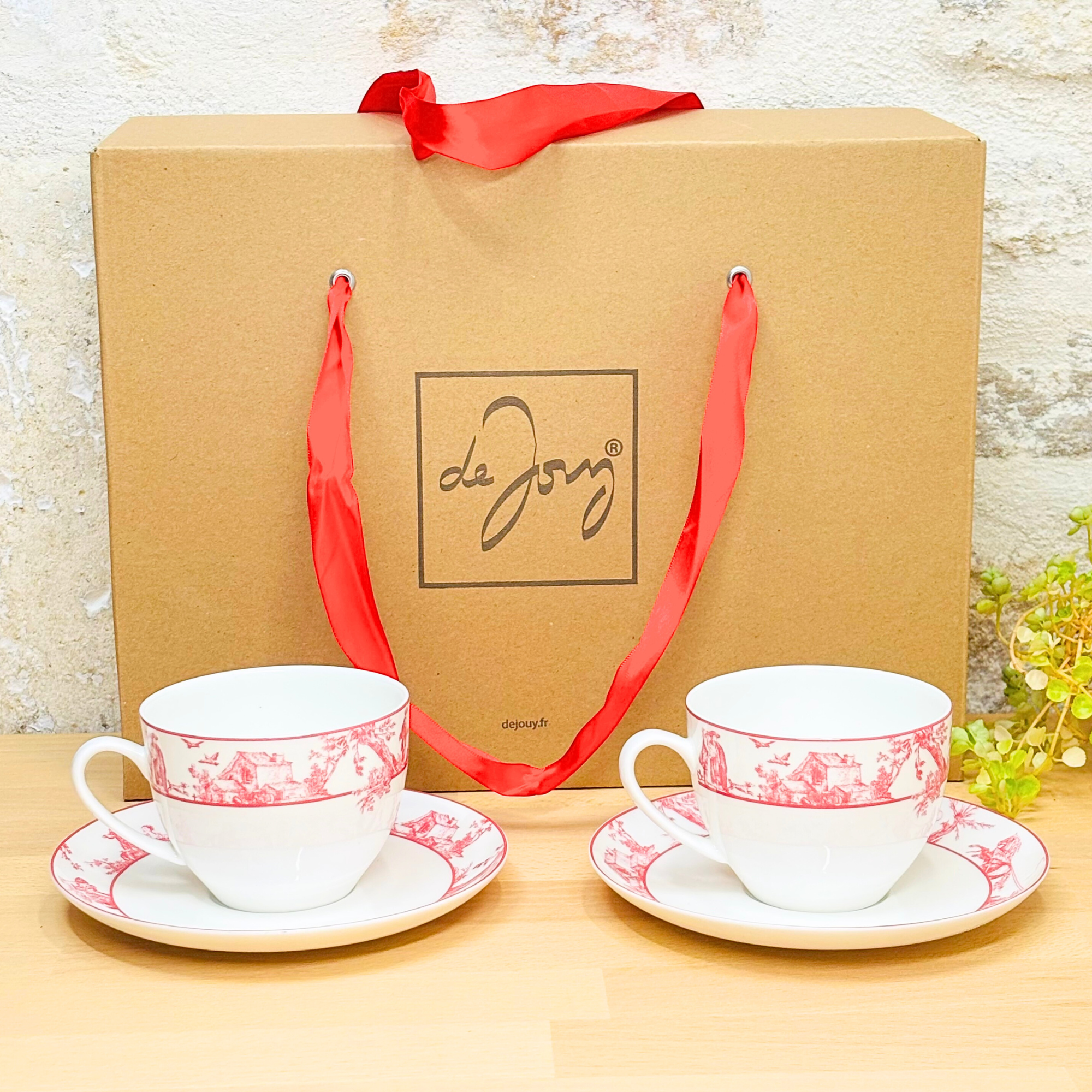 Créer il y a quelques années par mon père Etienne et mon oncle Pascal, la marque deJouy est inspirée de la toile de Jouy inventée par Christophe -Philippe Oberkampf à Jouy-en-Josas en 1760 et des dessins du peintre du roi Jean-Baptiste Huet (1745 – 1811), très répandue dans la culture française, notamment pour les papier peints, les tissus, les porcelaines, même depuis quelques années, un motif qui est rentré dans le code iconique de la Maison Christian Dior.