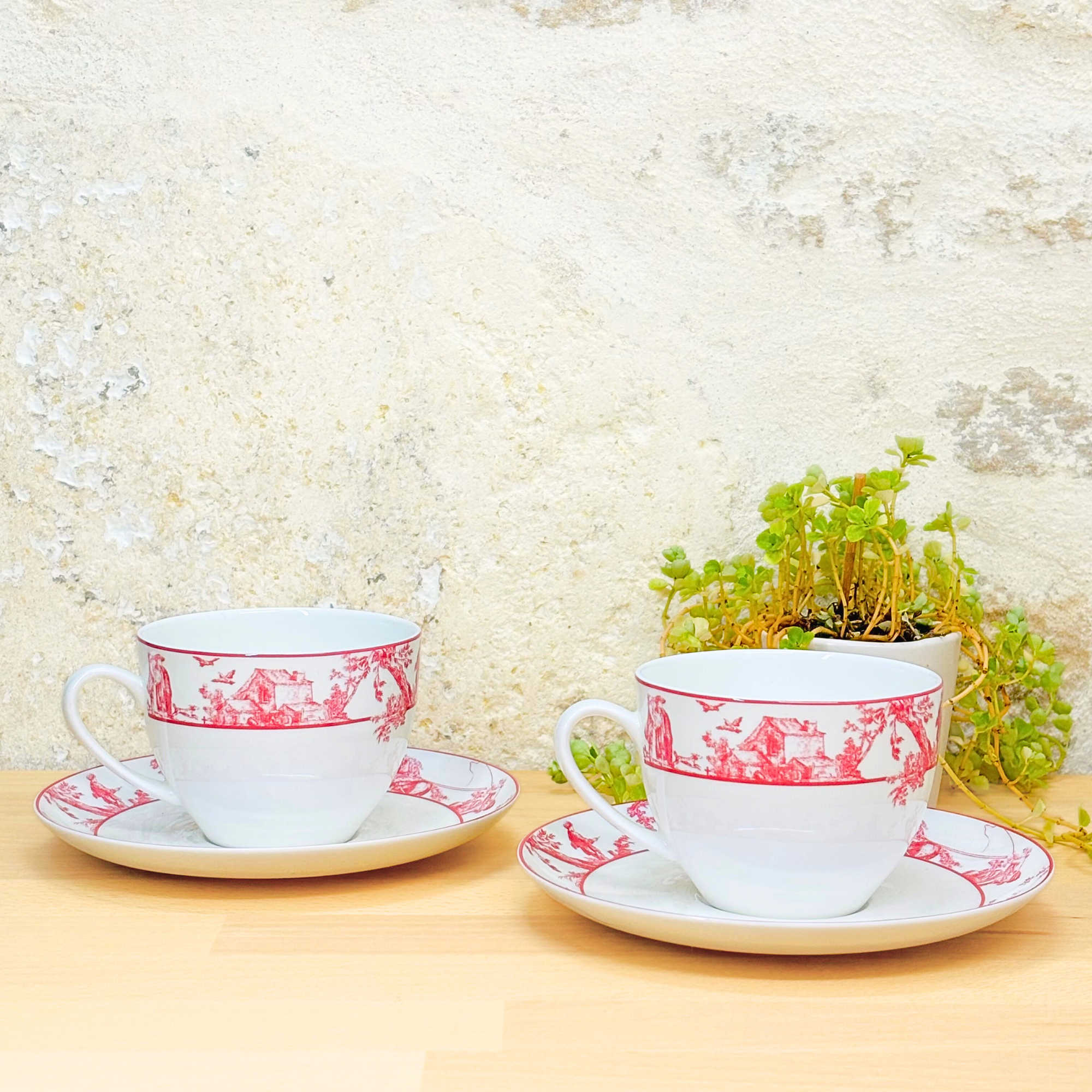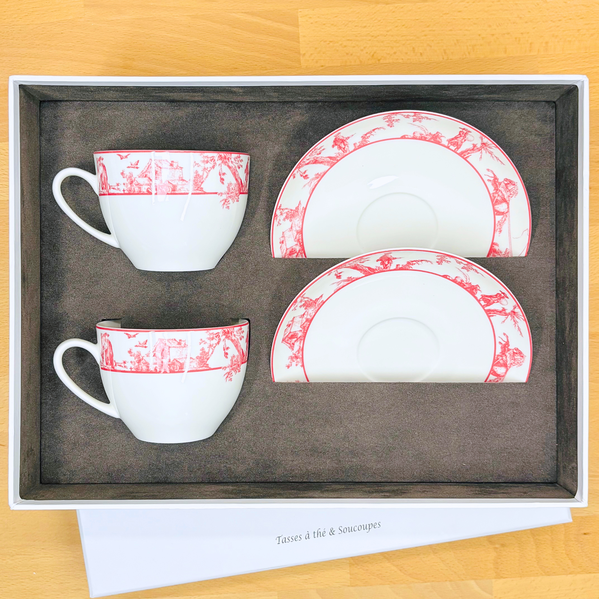 – un coffret de deux tasses et soucoupes en porcelaine fine