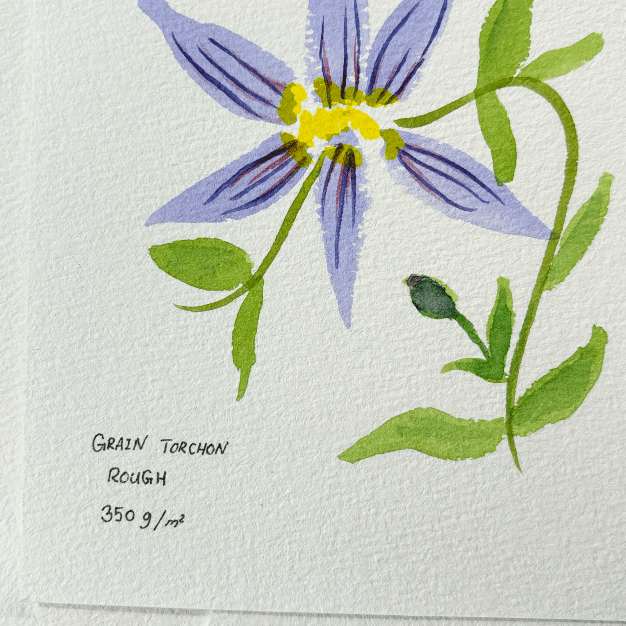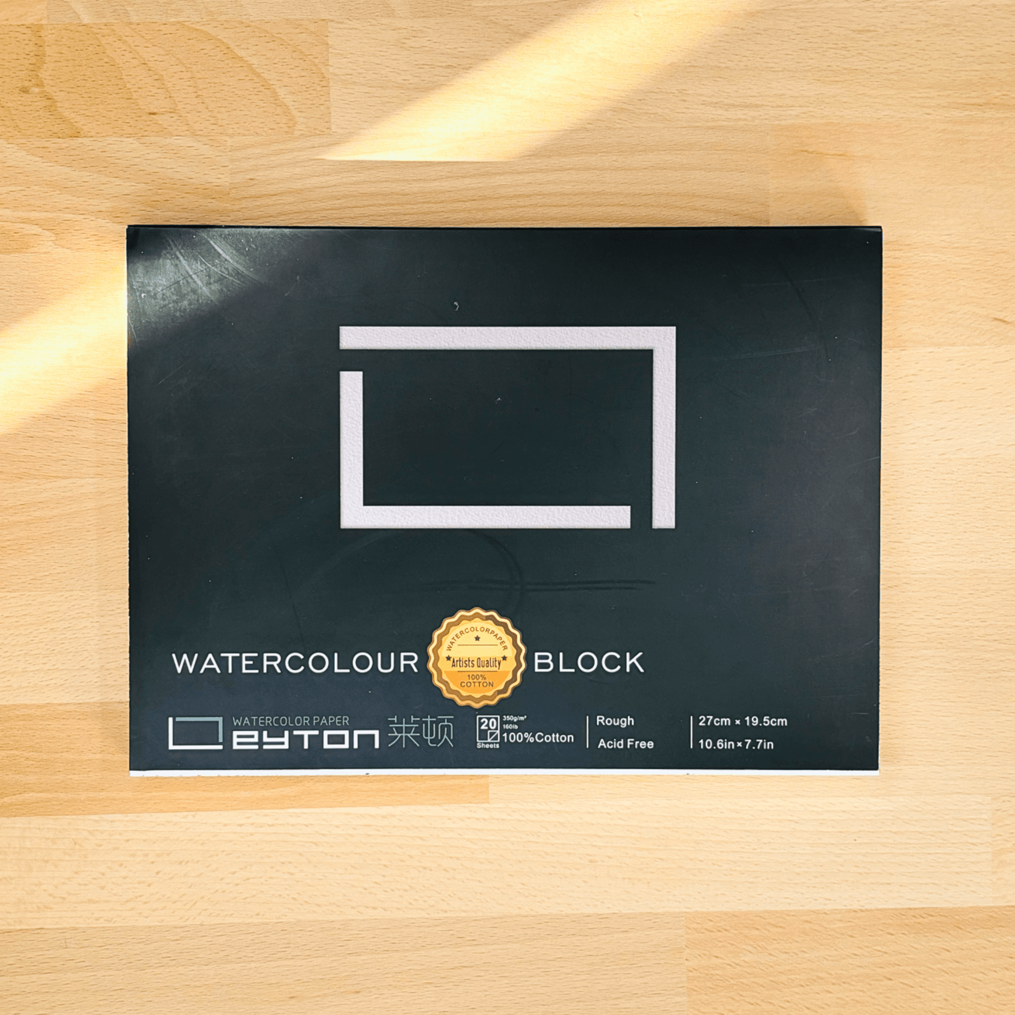 Bloc de papier d’aquarelle Leyton qualité artiste 100 % coton , 350g/m² (160lb) , grain torchon, pressé à froid, 20 feuilles par bloc, collé 4 côtés, non blanchi et sans acide, qualité artiste