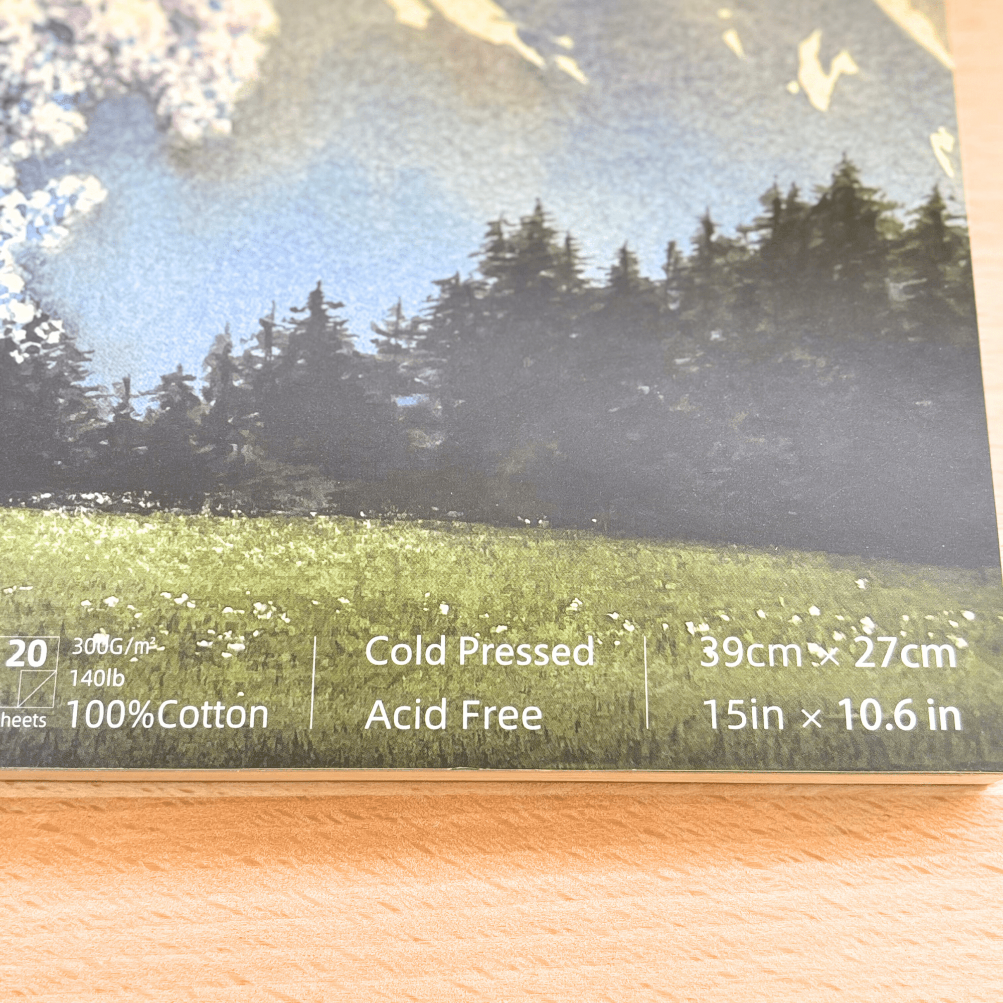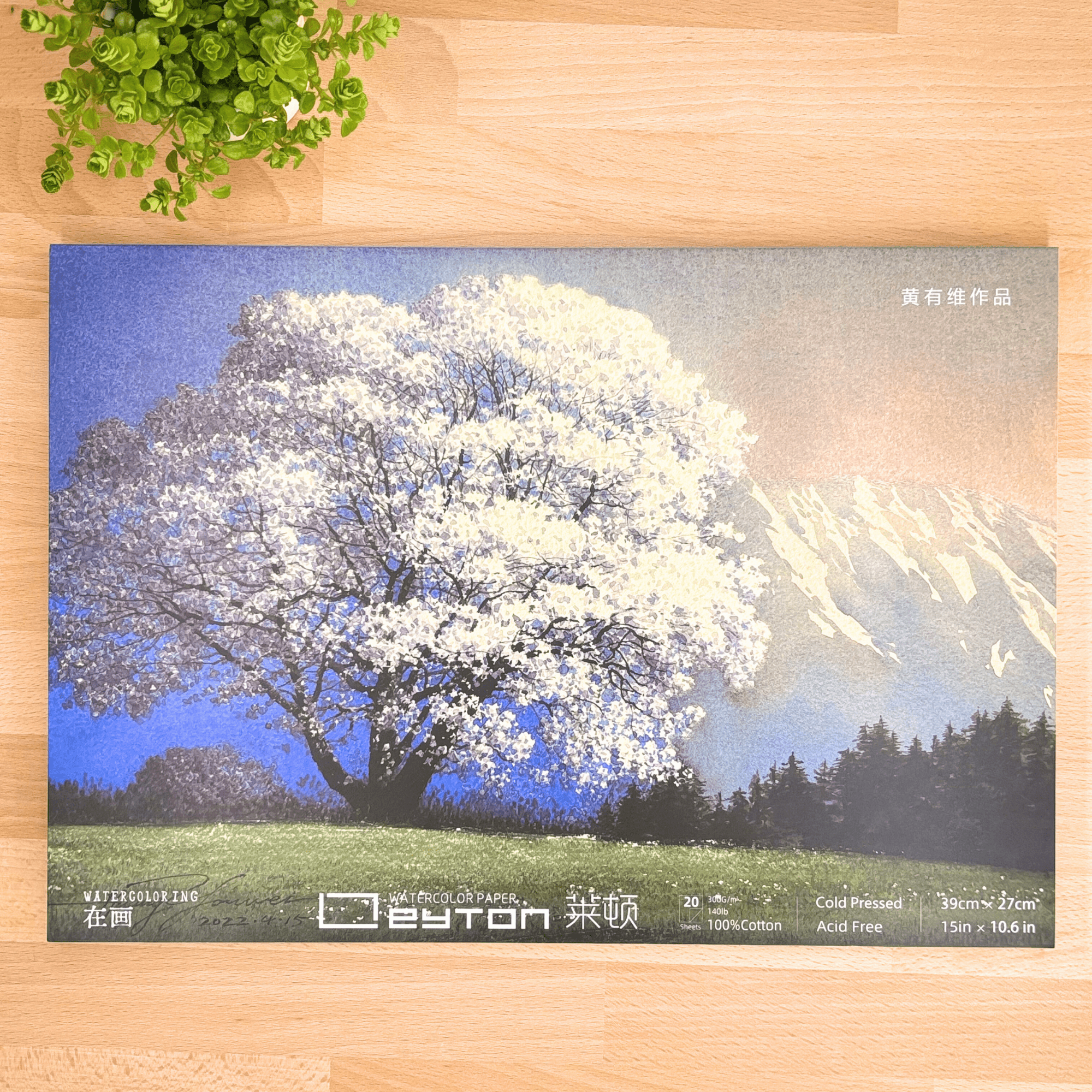 Bloc de papier d’aquarelle Leyton Grand Format 8K 100 % coton , 300g/m² (140lb) , grain fin, pressé à froid, 20 feuilles par bloc, non blanchi et sans acide, qualité artiste.