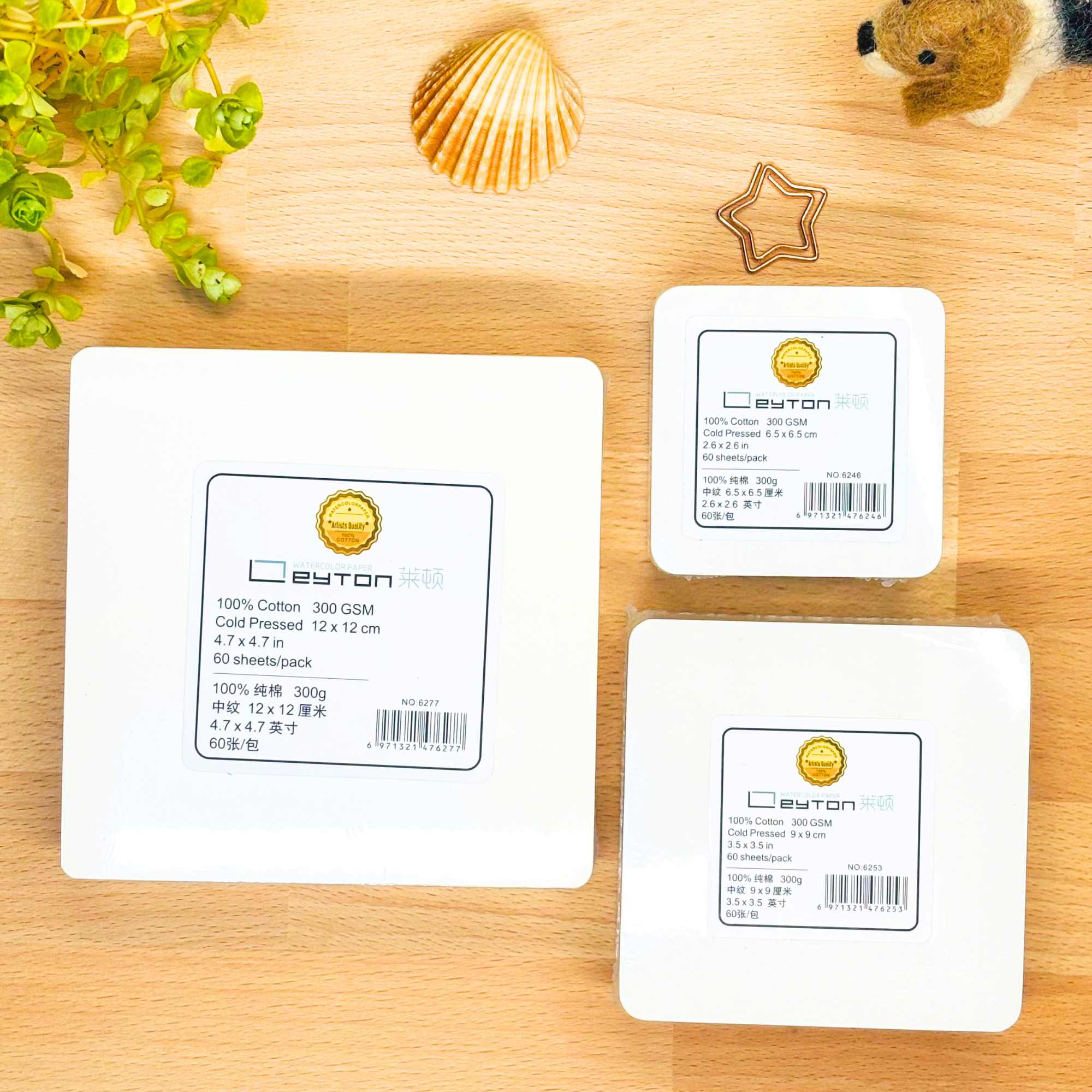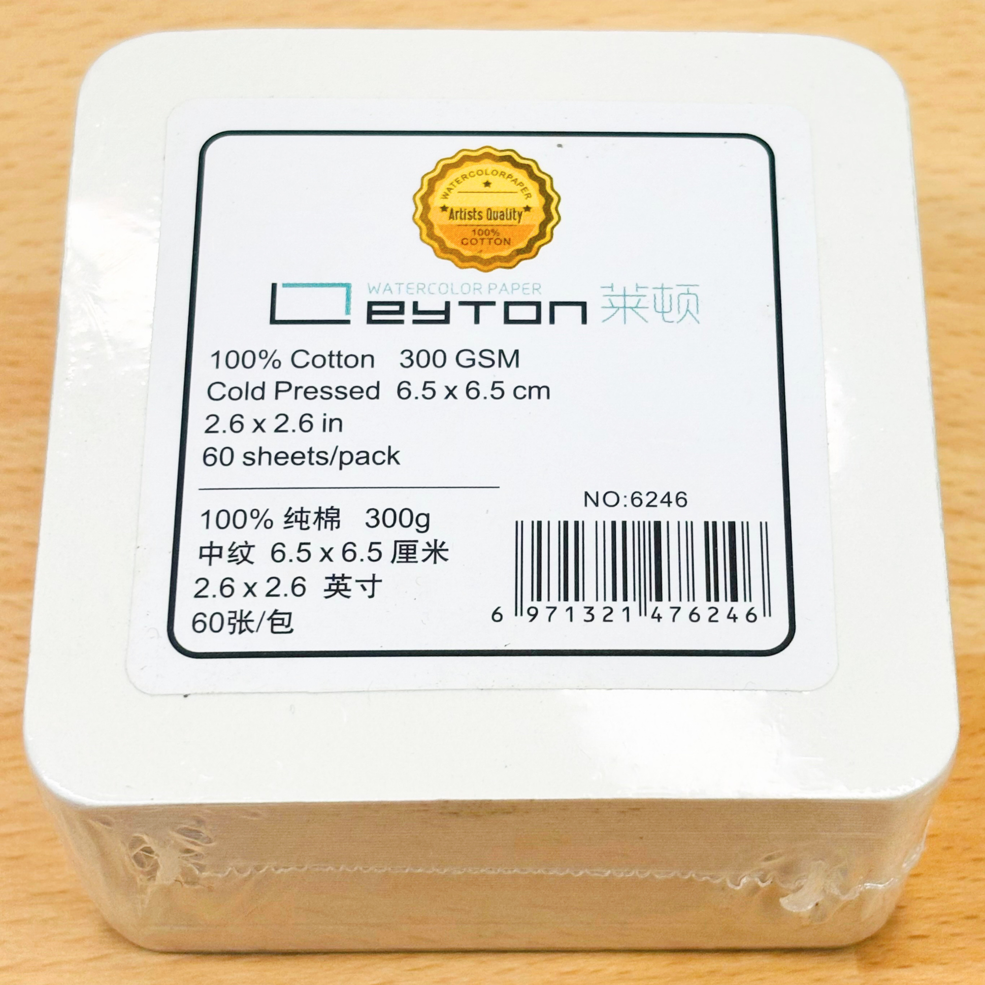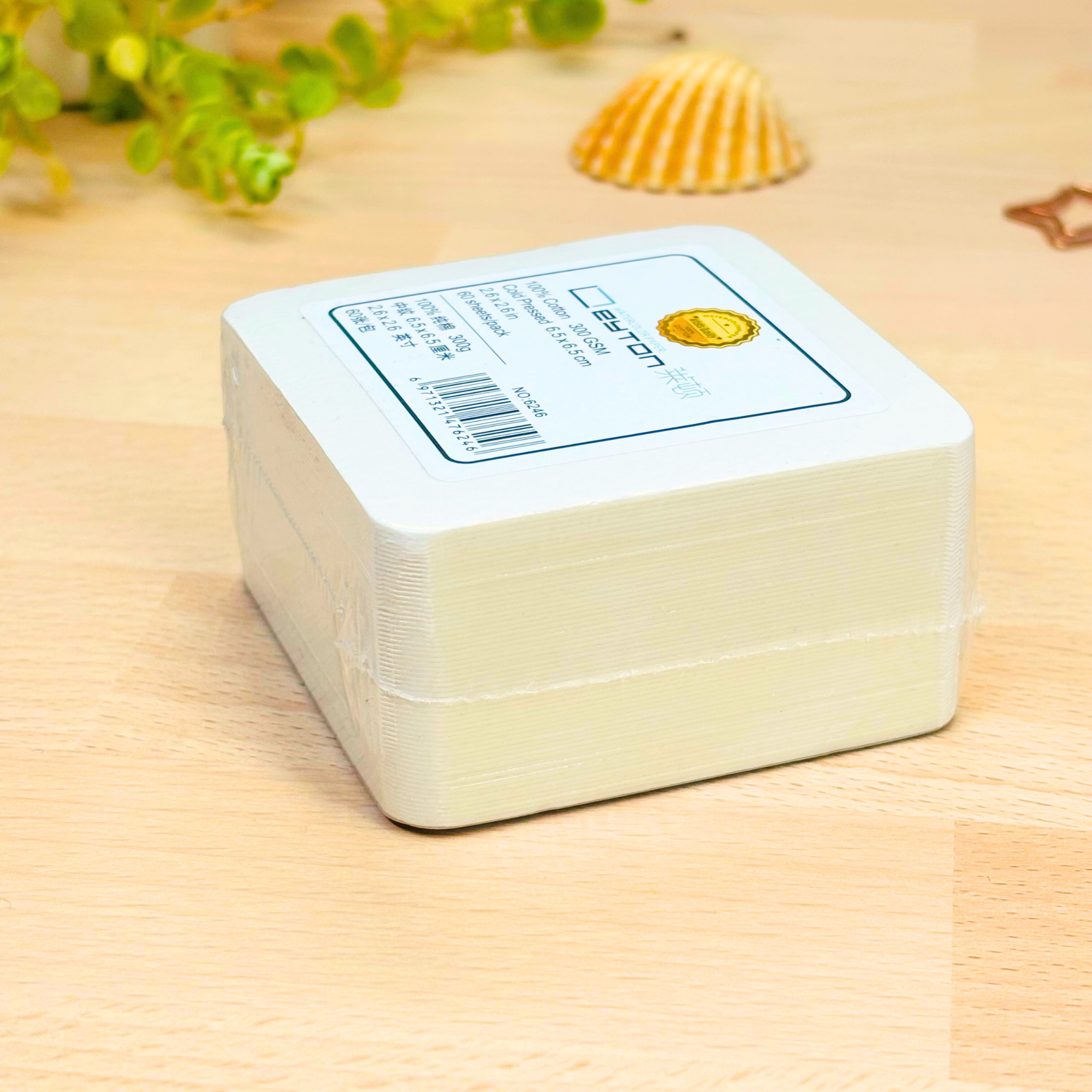 Brique carré pour aquarelle 100% coton, 300g/m² (140lb) , grain fin, pressé à froid, 60 feuilles par paquet, non blanchi et sans acide, qualité artiste, se peint sur les deux faces.