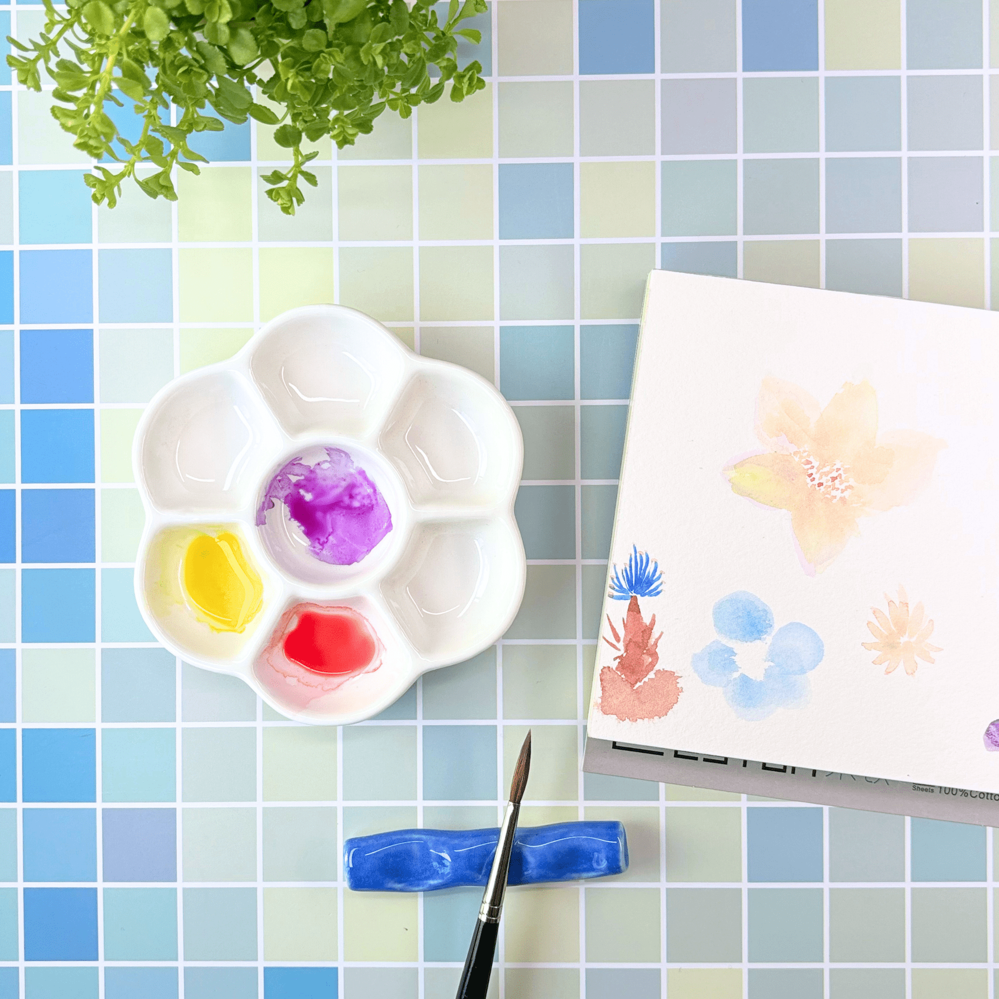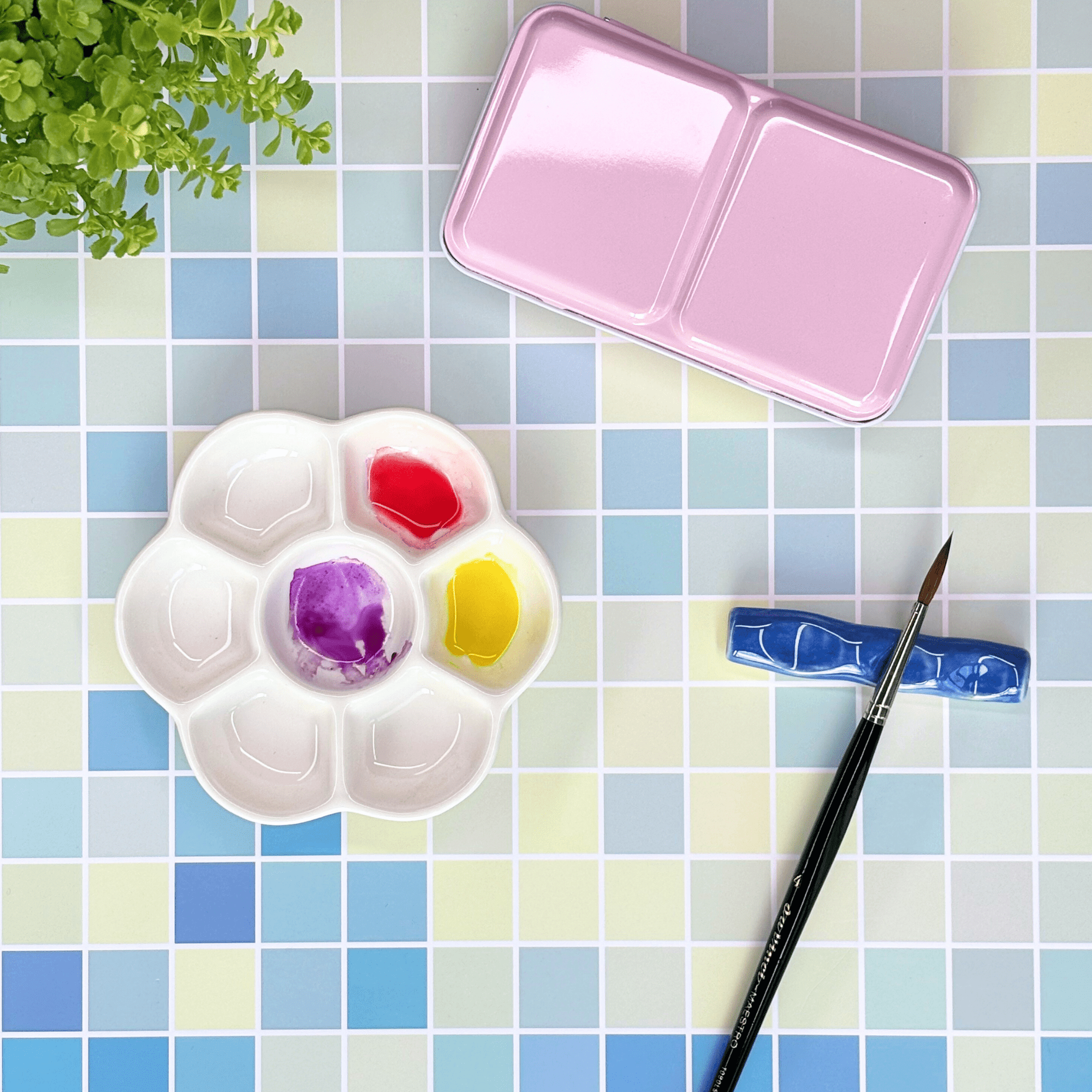 Consultez notre boutique pour d’autres modèles de palettes en porcelaine, du papier d’aquarelle, des repose-pinceaux, des boîtes d’aquarelles pour mettre vos couleurs et plus encore… https://myrockway.com/shop/